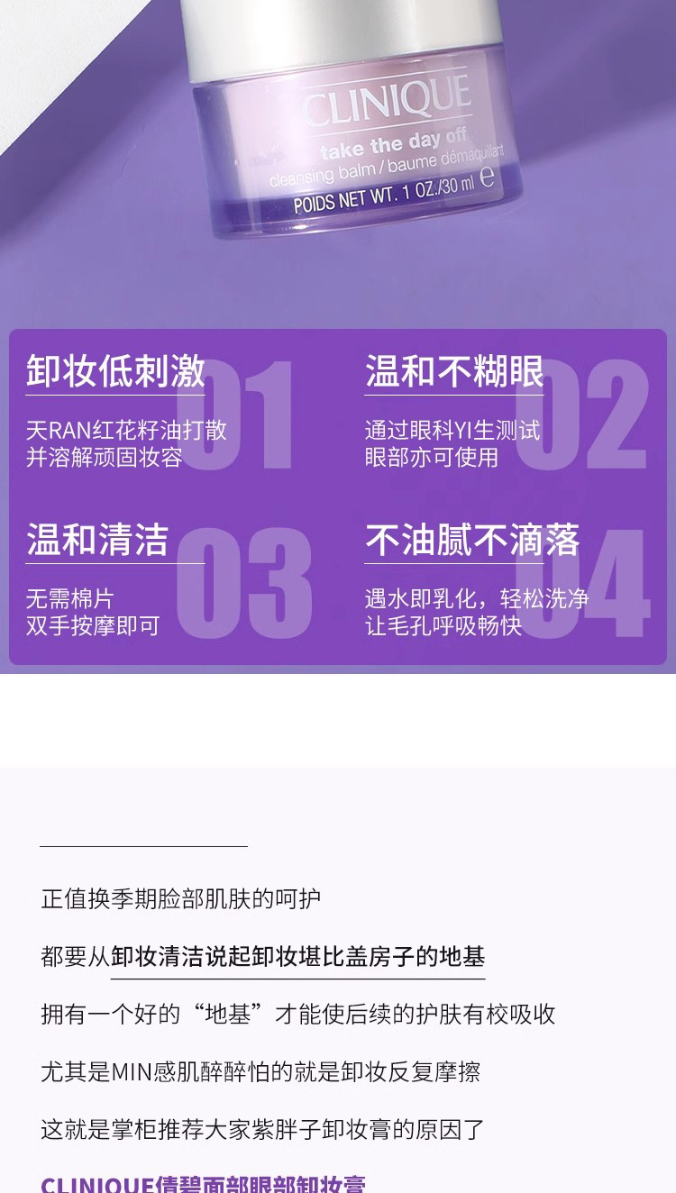 大中样!倩碧紫胖子卸妆膏 脸部眼唇三合一卸妆霜温和清洁30ml中样