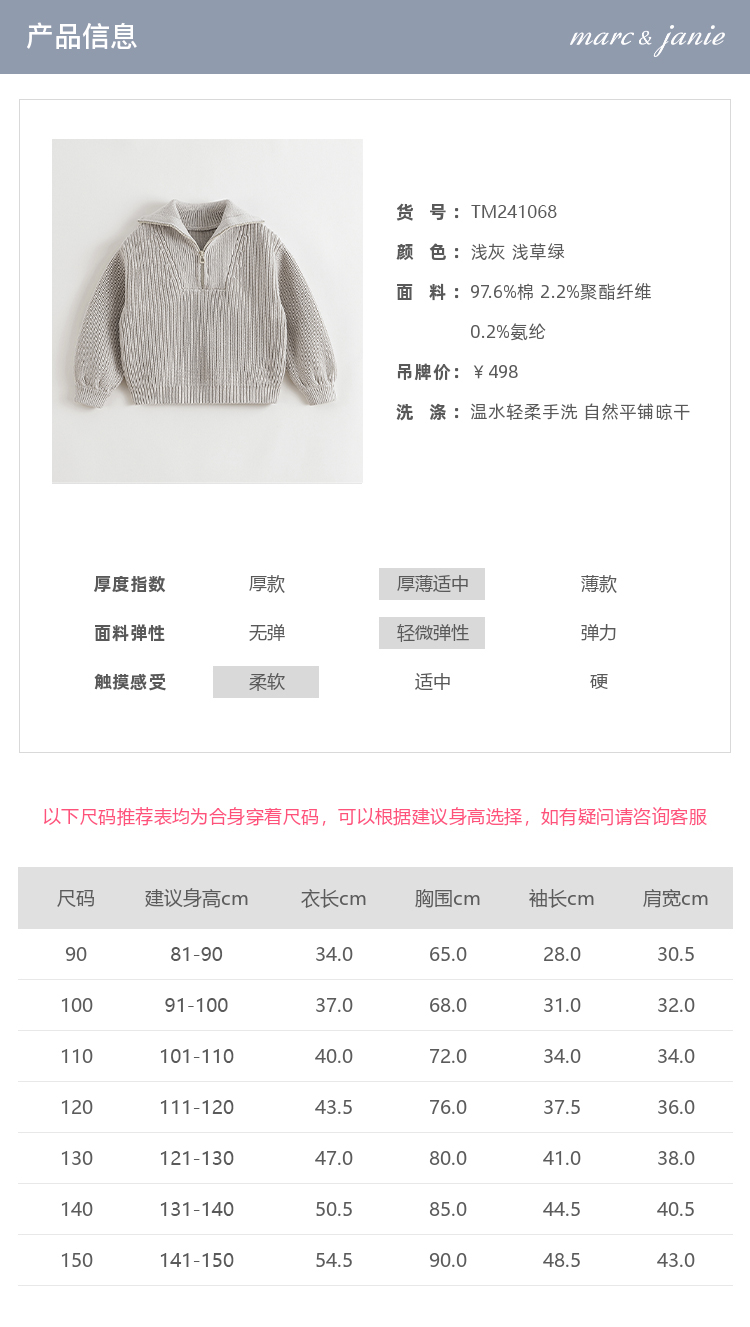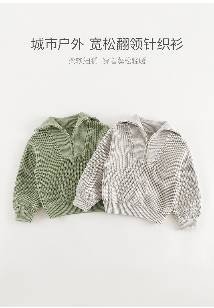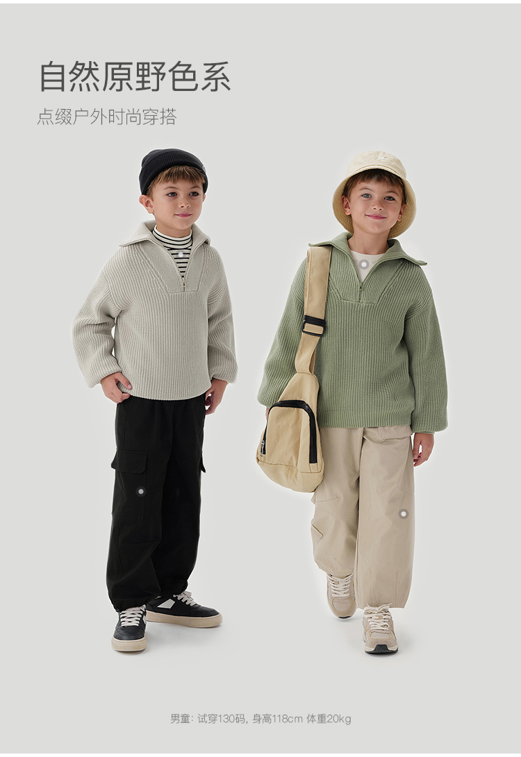 马克珍妮男童城市户外宽松翻领针织衫儿童毛衣2024冬装新款241068