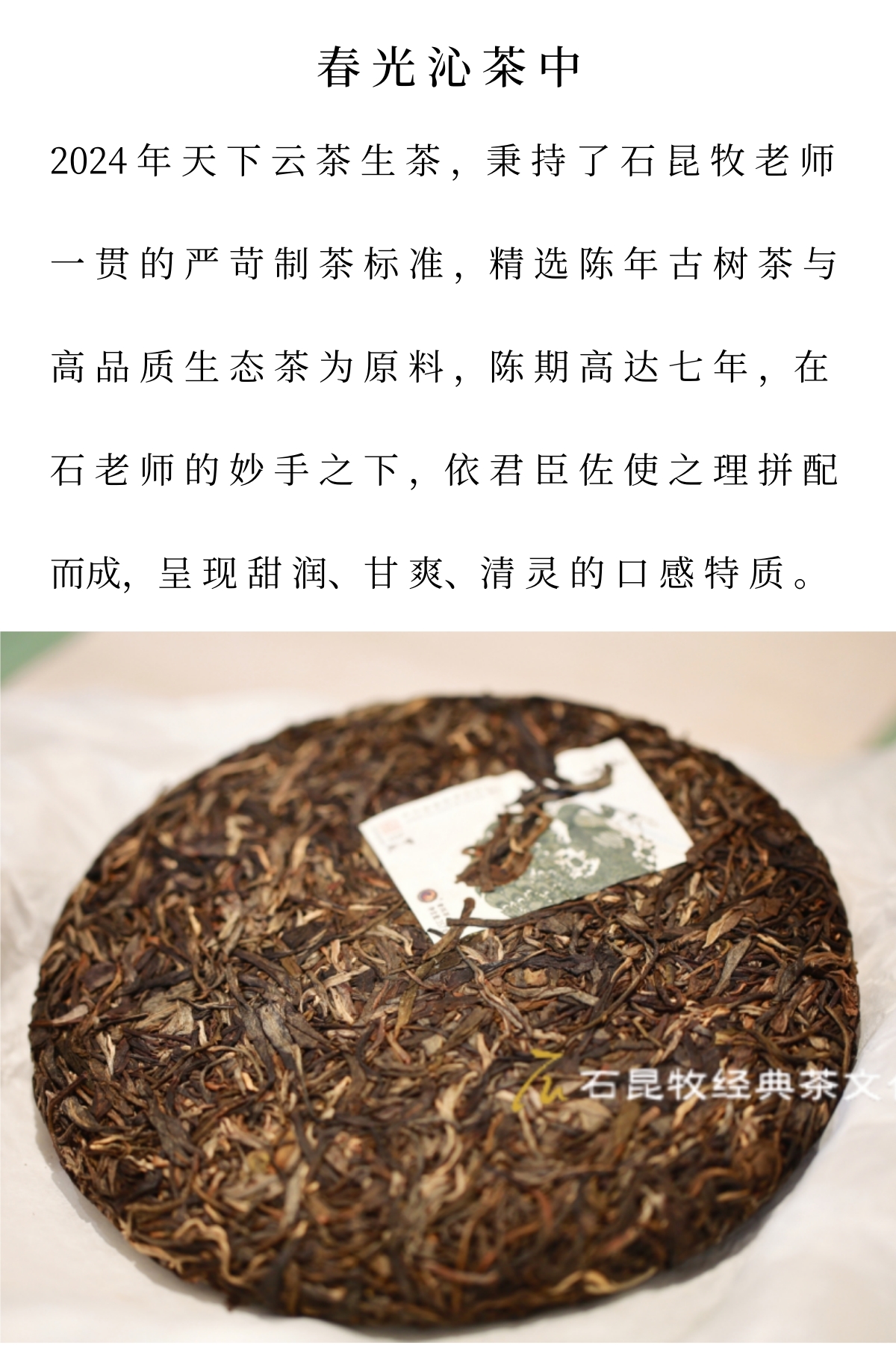 2024天下云茶普洱生茶 春光沁茶中 甜美、甘润、清灵 石昆牧老师定制
