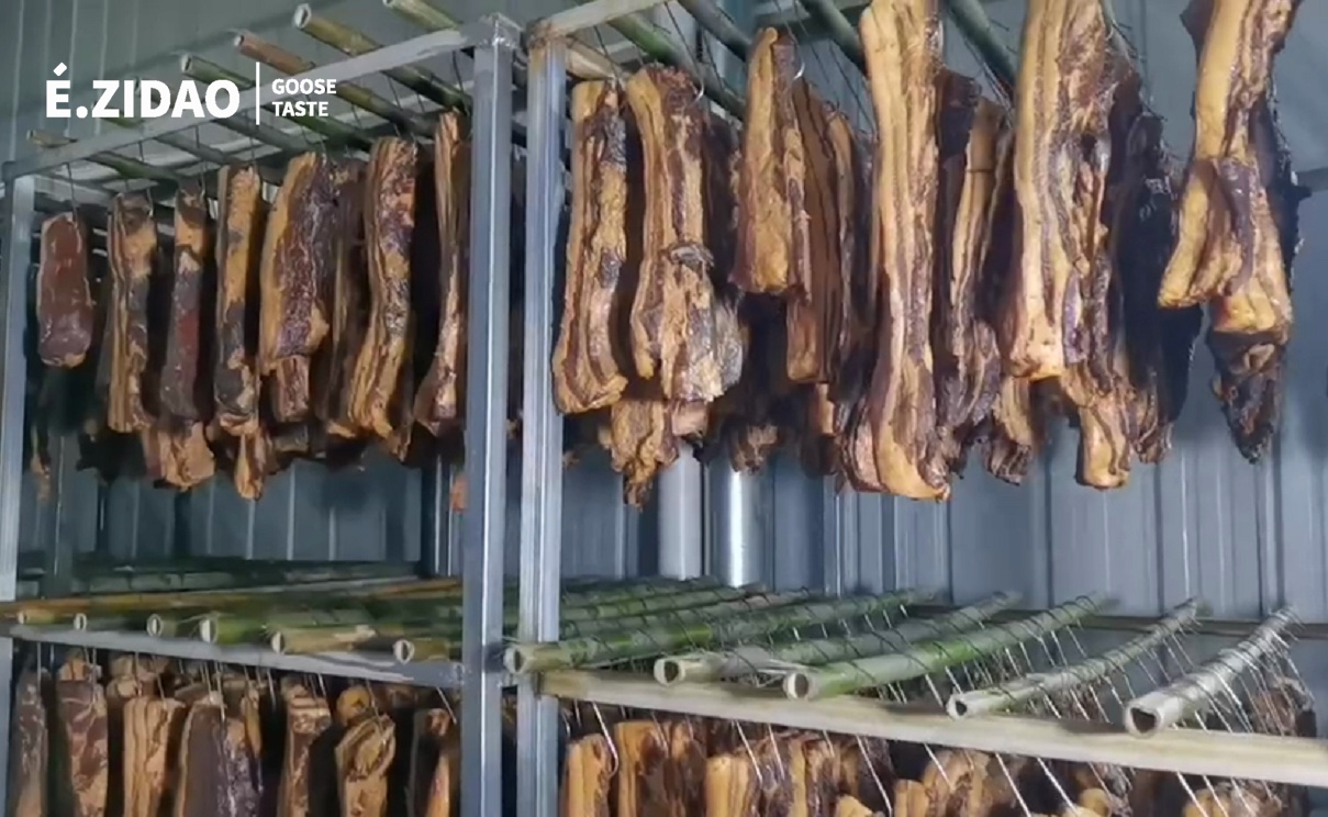 采用传统风干的方法,自然晾干,让酱肉在低温的环境里完成二次蜕变,通过蒸发多余的水分,让肉质和风味变得更加馥郁.