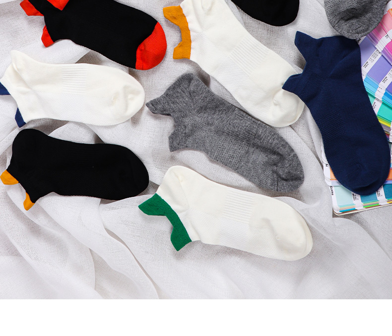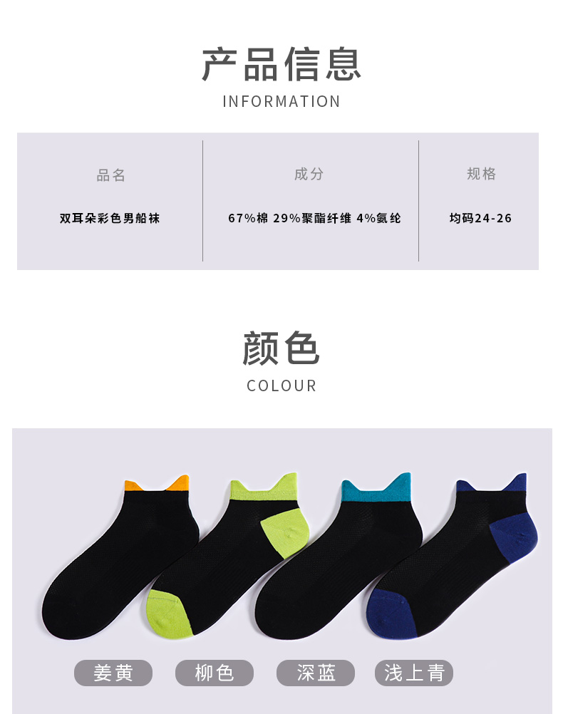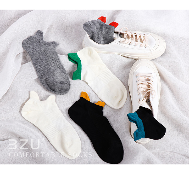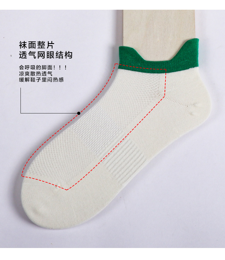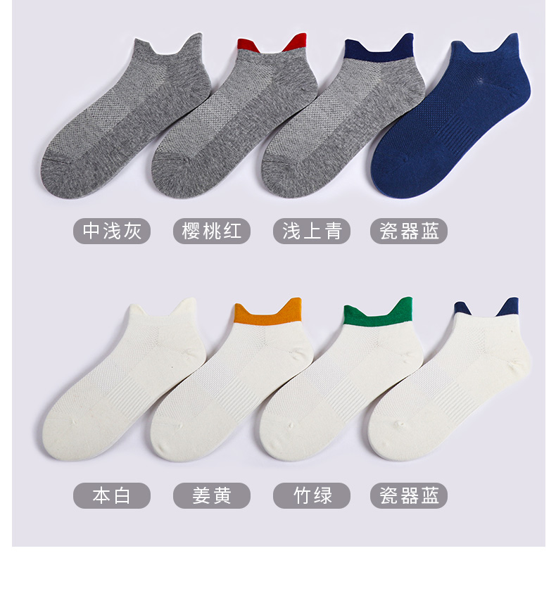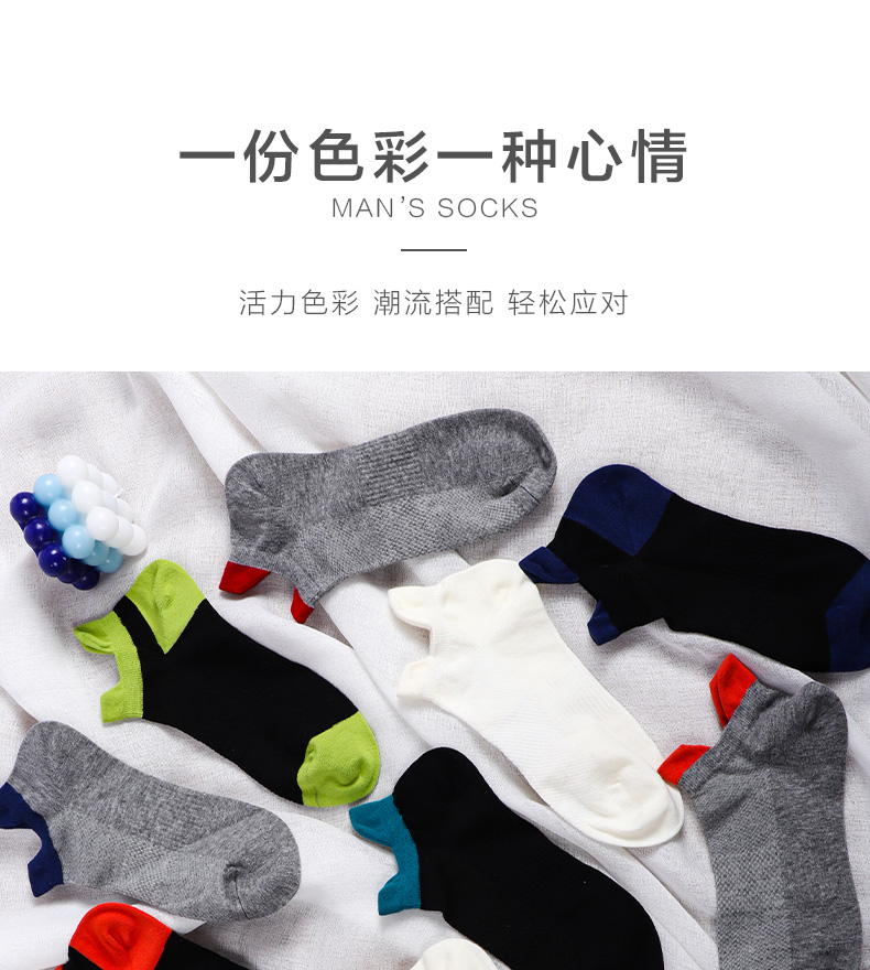 【任选6双79.5】夏季春秋男士网眼短袜运动罗口双耳朵棉袜彩色男船袜