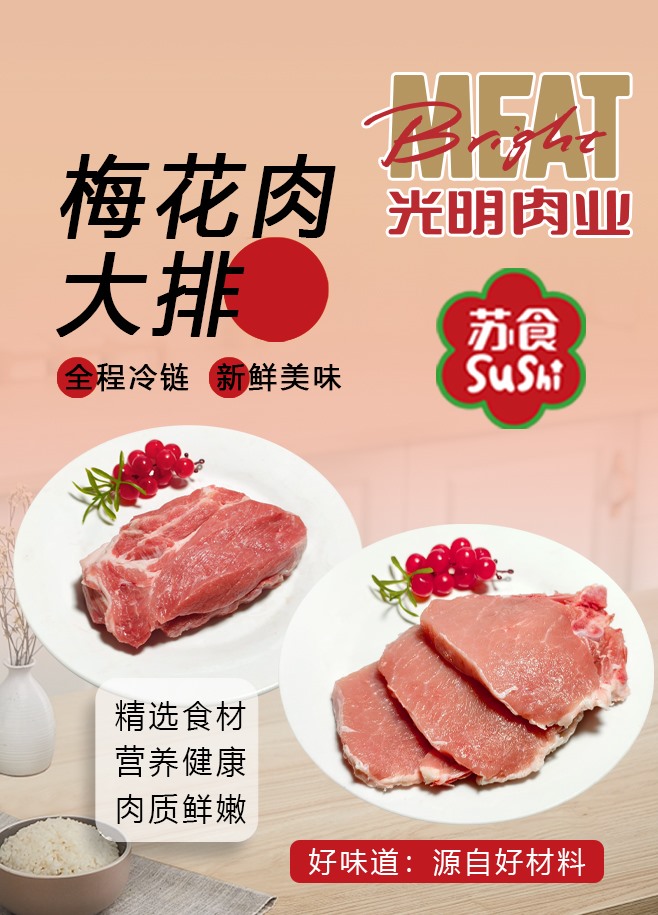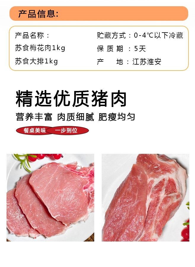 苏食农场猪冰鲜肉组合2(苏食梅花肉1kg+苏食大排1kg)