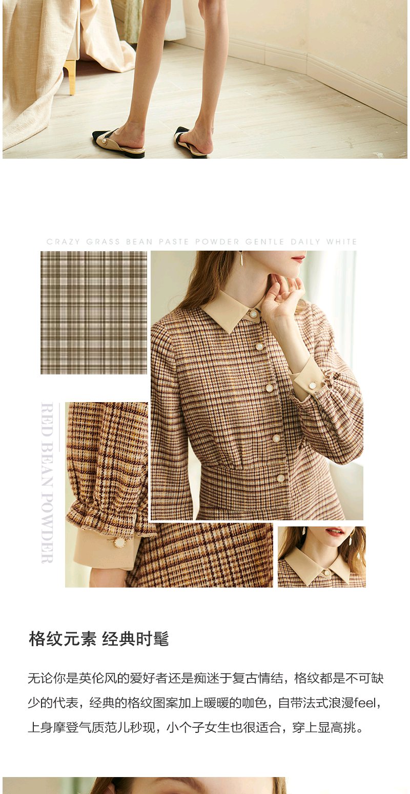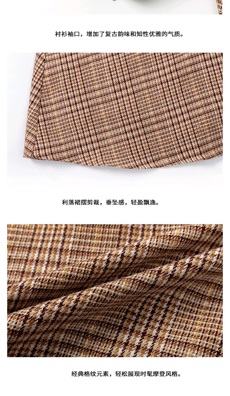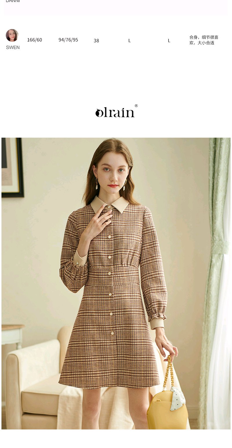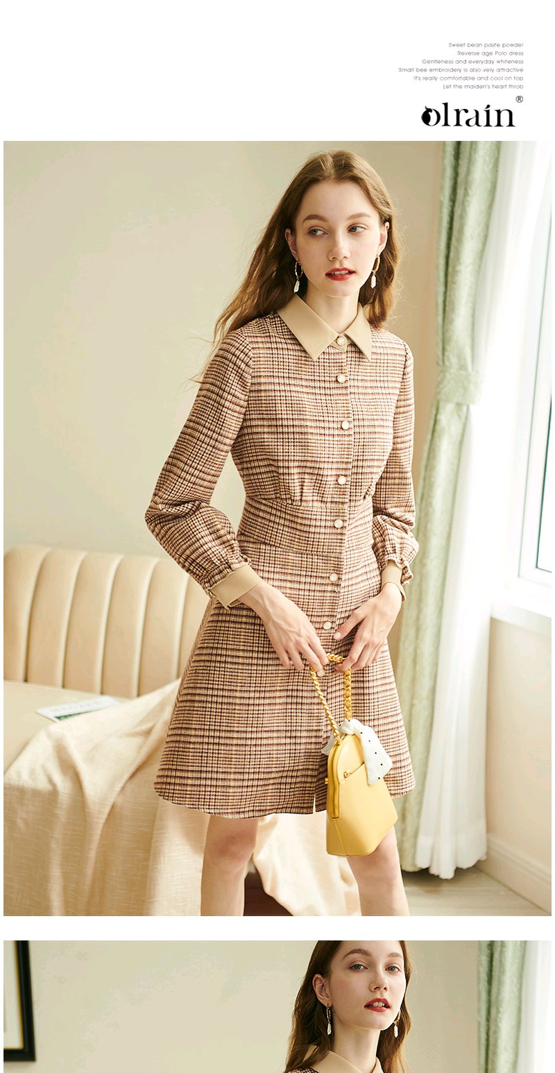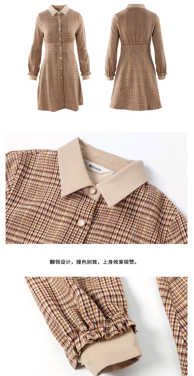 欧芮儿2020春装新款长袖英伦风格子连衣裙女中长款气质收腰显瘦