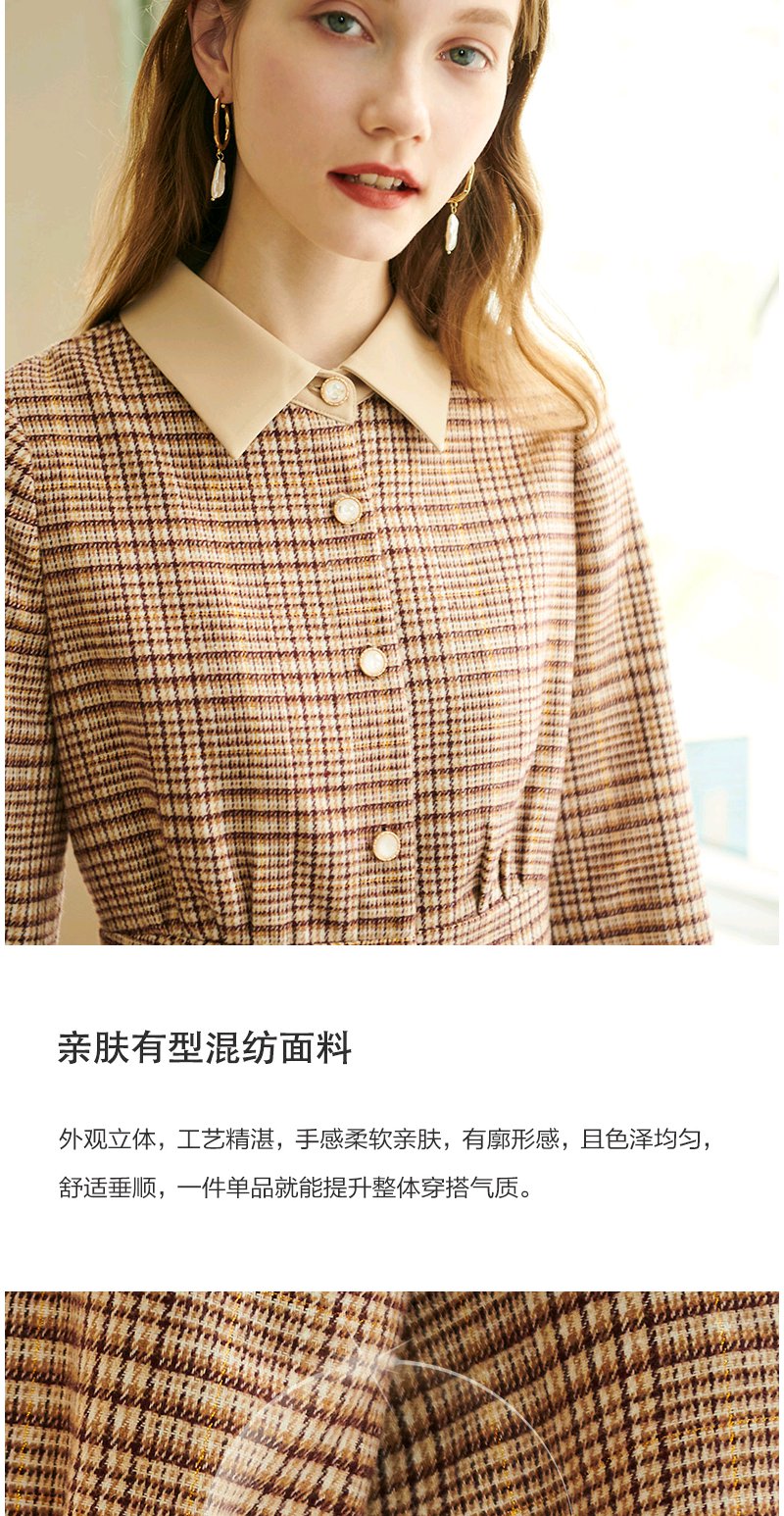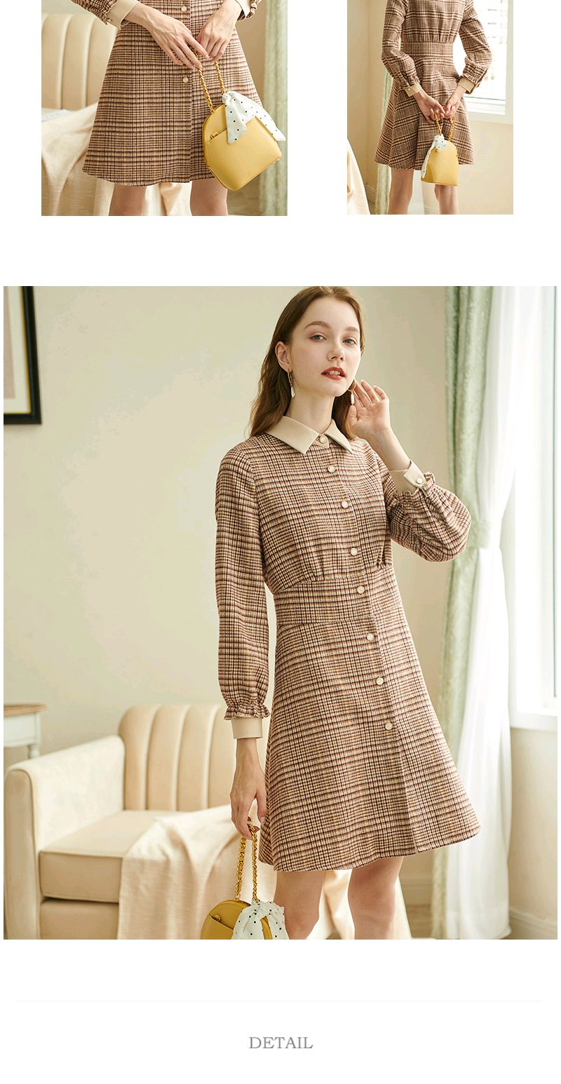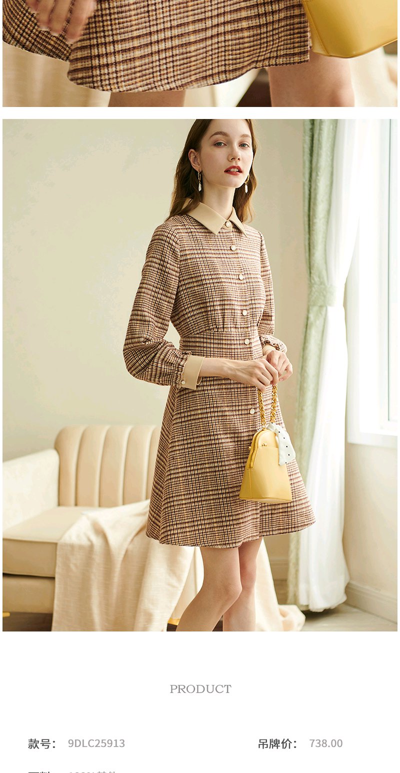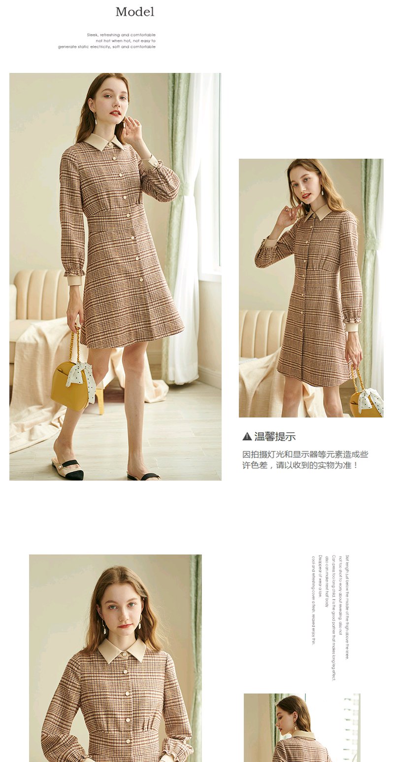 欧芮儿2020春装新款长袖英伦风格子连衣裙女中长款气质收腰显瘦