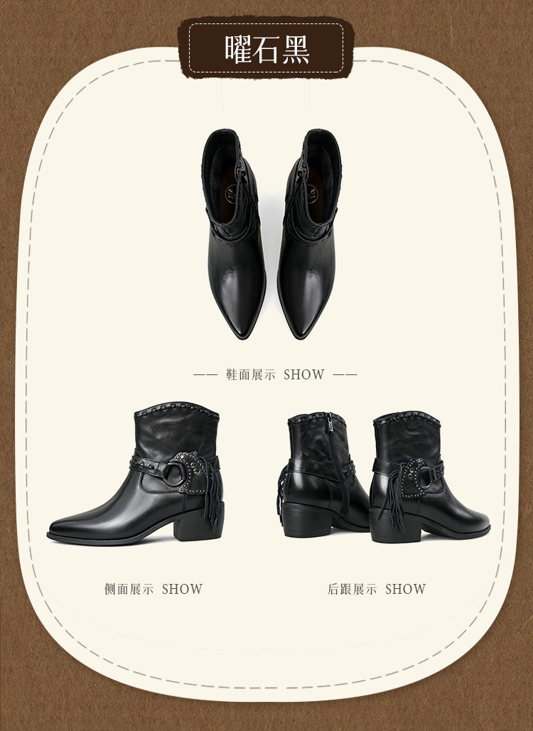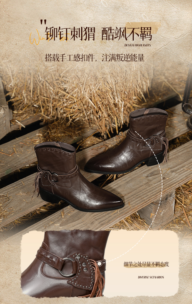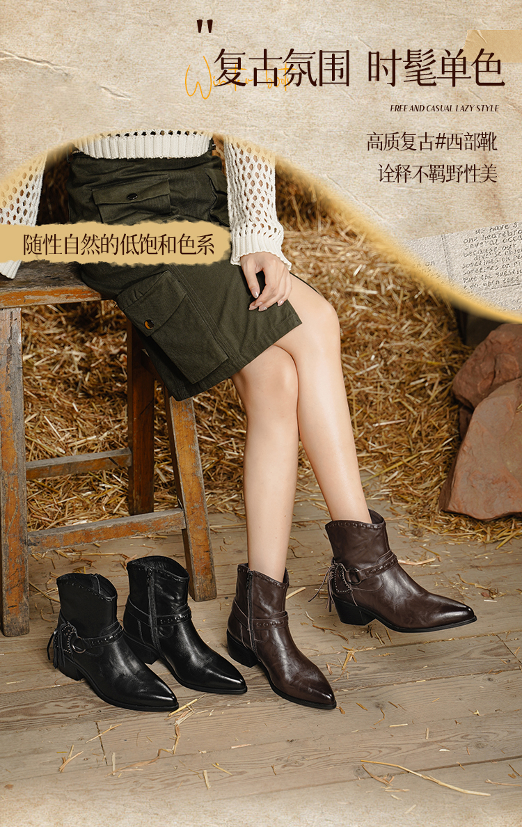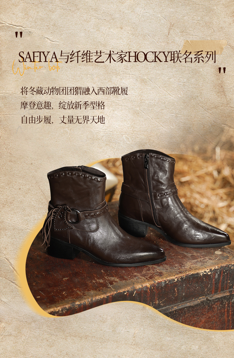 Safiya/索菲娅2025艺术家联名铆钉刺猬真皮尖头复古粗跟西部靴SFD4116358
