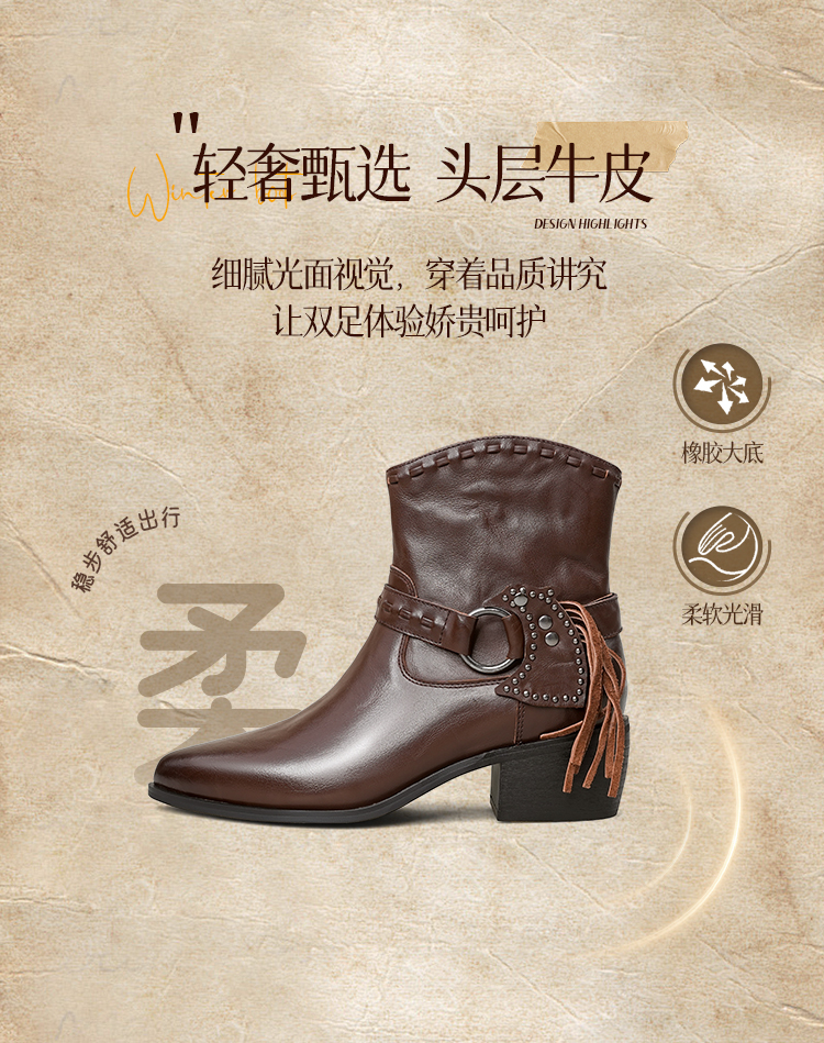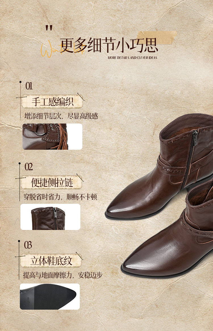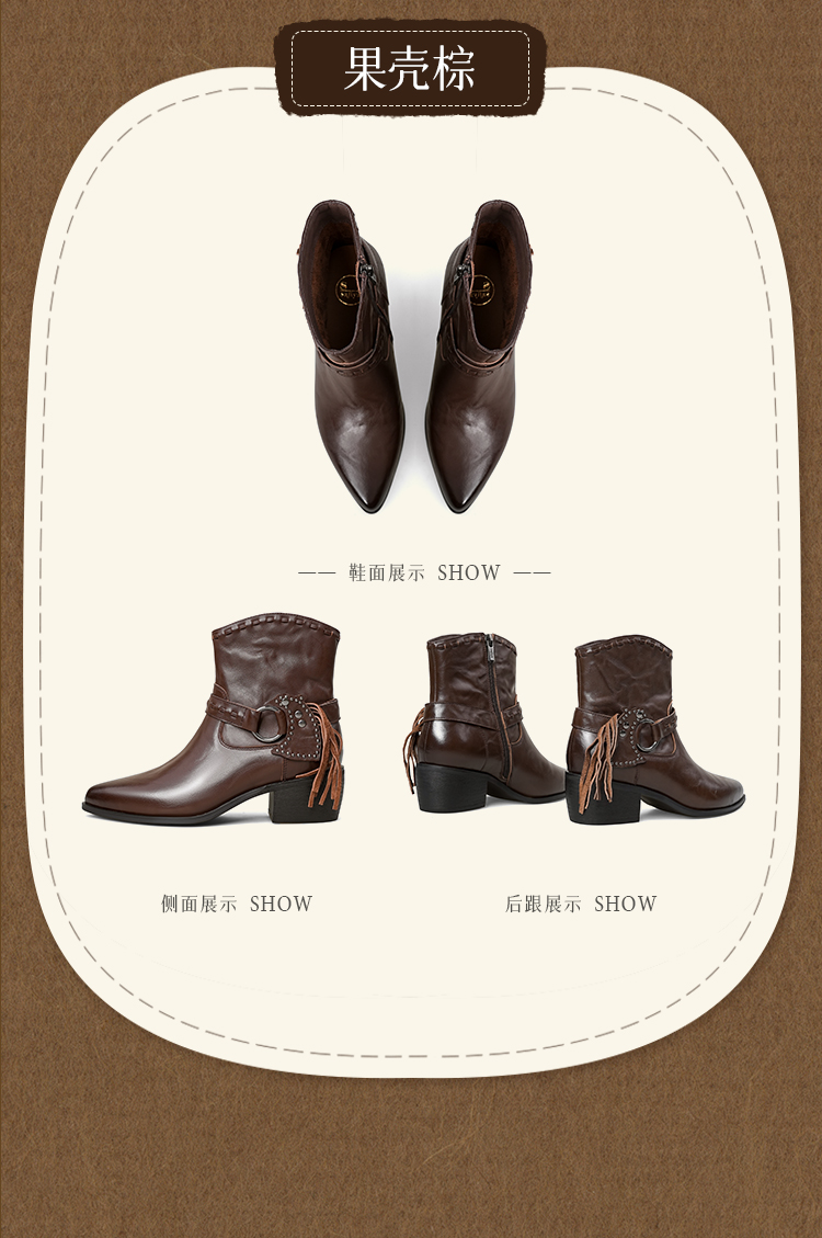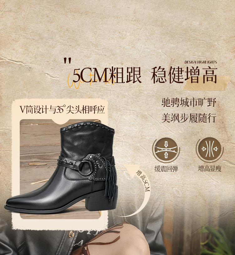 Safiya/索菲娅2025艺术家联名铆钉刺猬真皮尖头复古粗跟西部靴SFD4116358