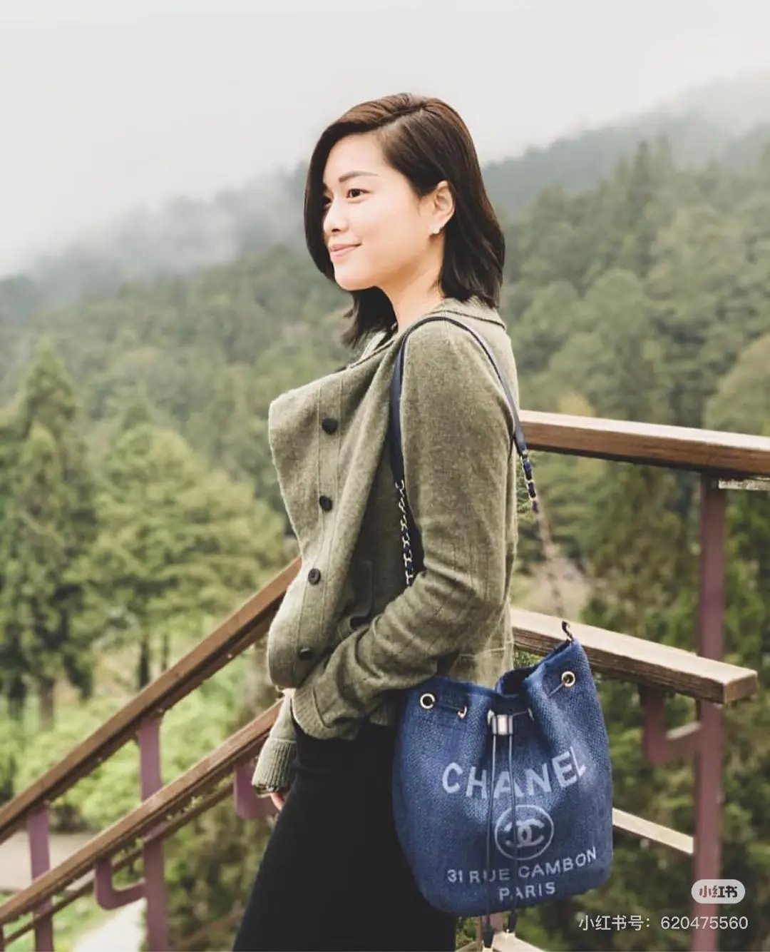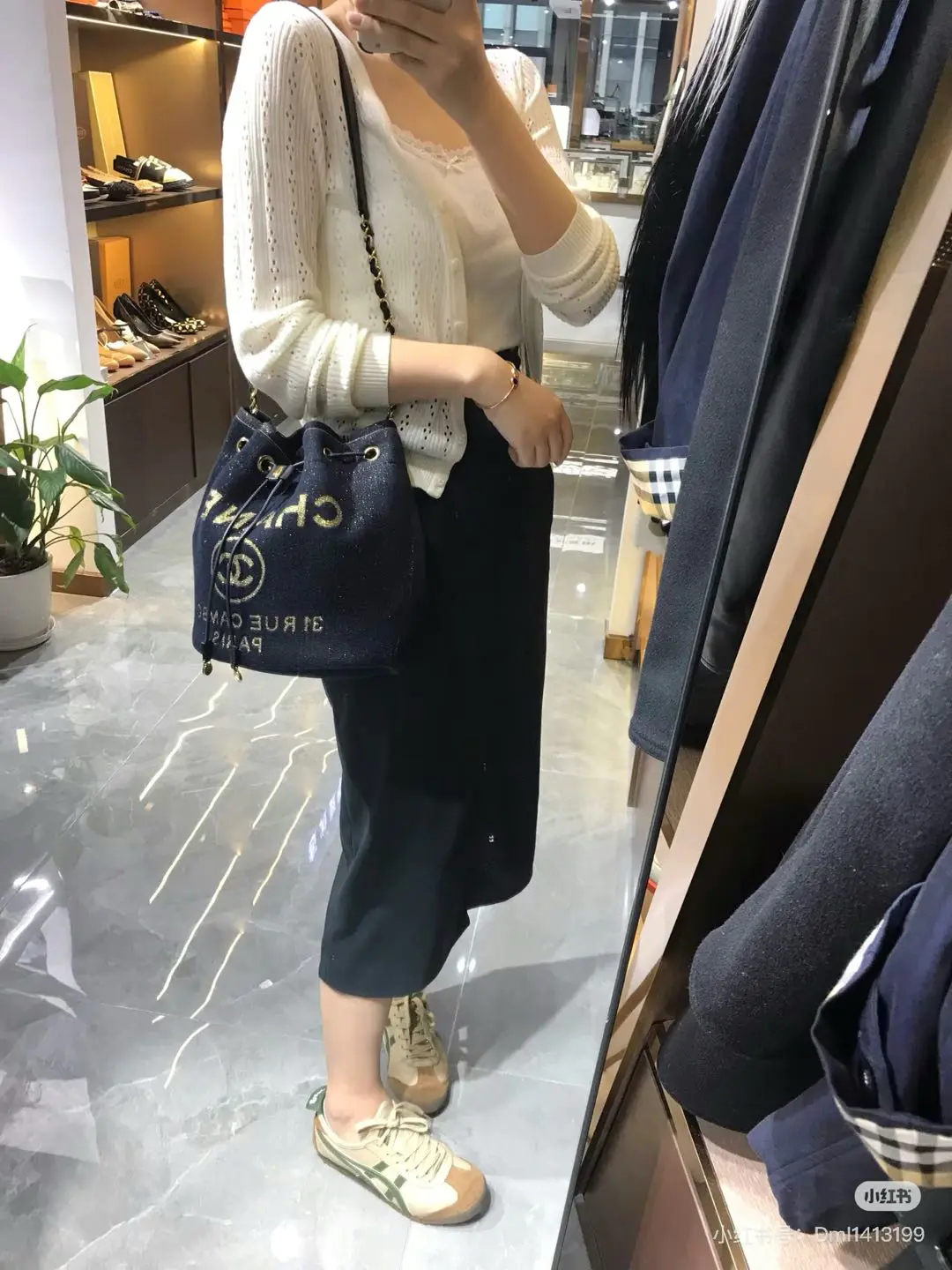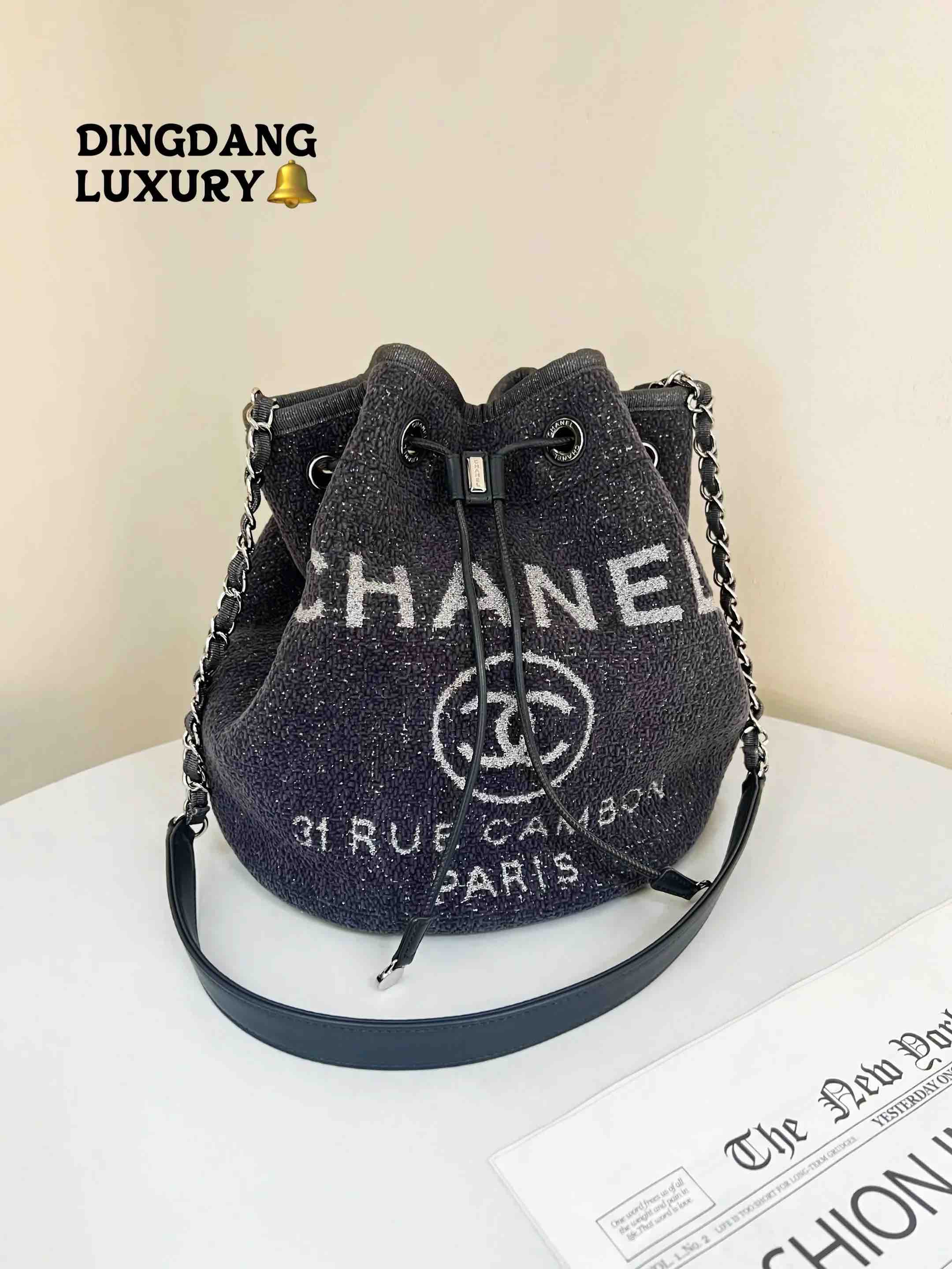 【商品详情】正品二手Chanel 31 RUE CAMBON 编织 帆布 深蓝 水桶包 🫣95新 23*24 镭射28开 配件:镭射卡。包面两处使用脏。日常出行超实用
