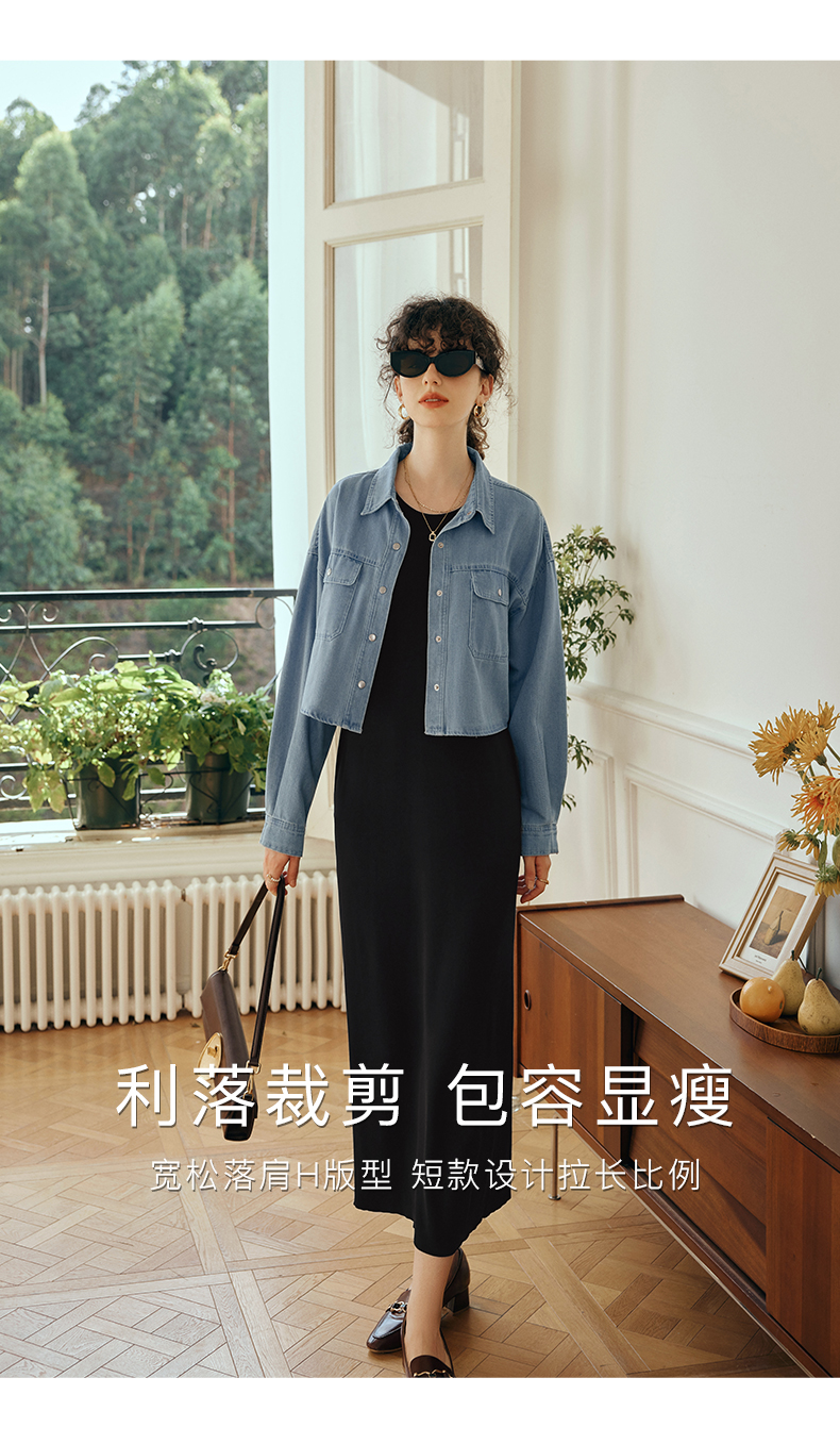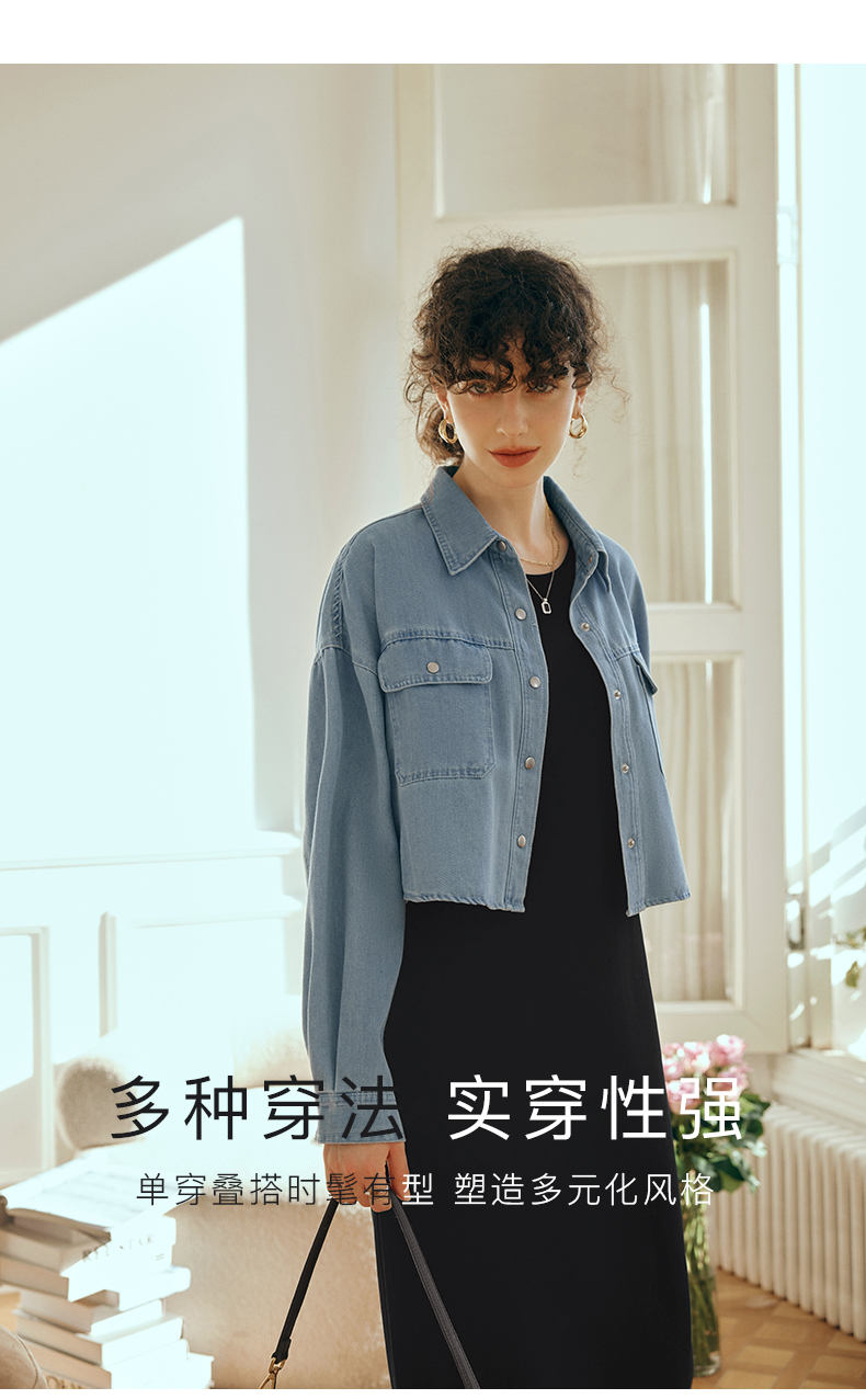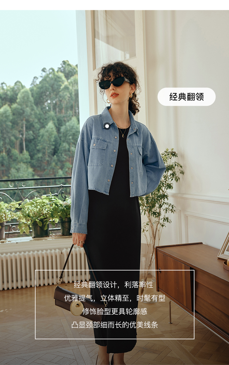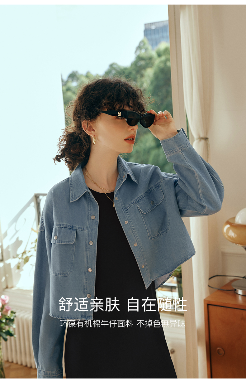 OLrain欧芮儿牛仔短外套女初秋2023新款气质宽松别致vintage上衣