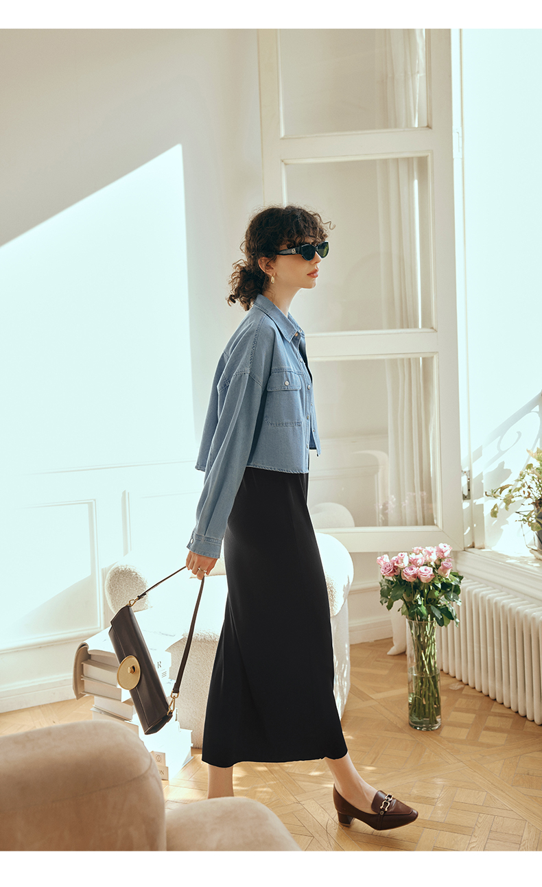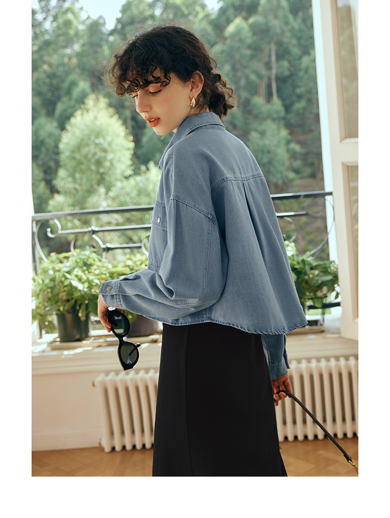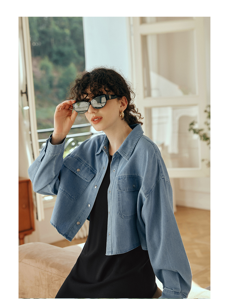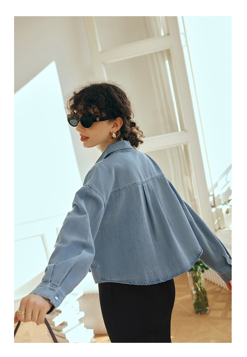 OLrain欧芮儿牛仔短外套女初秋2023新款气质宽松别致vintage上衣