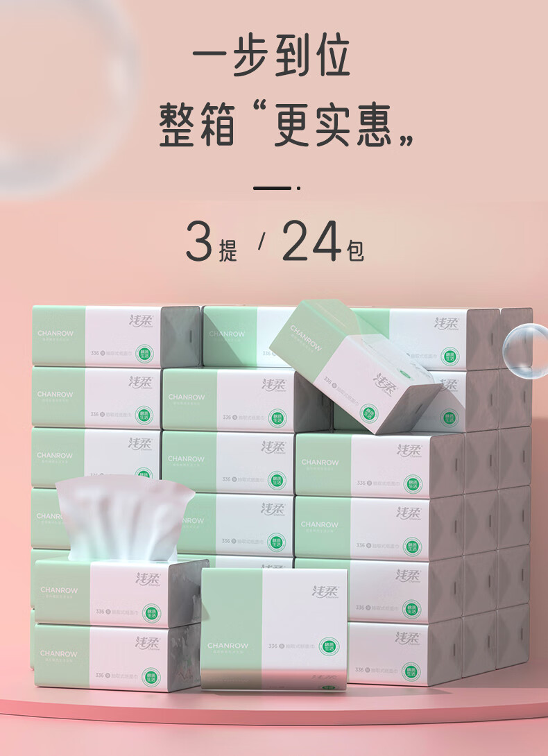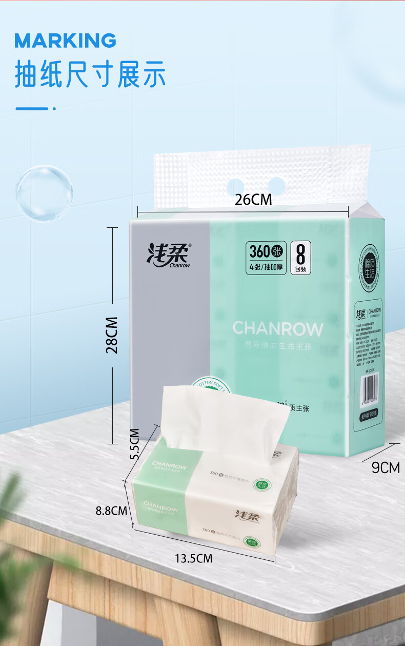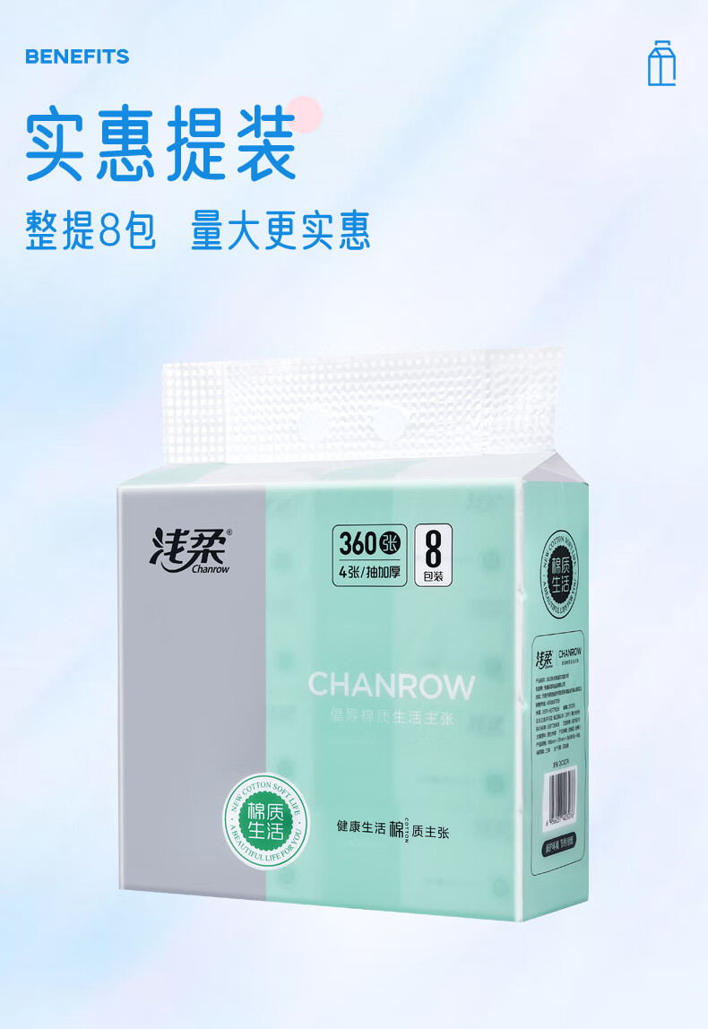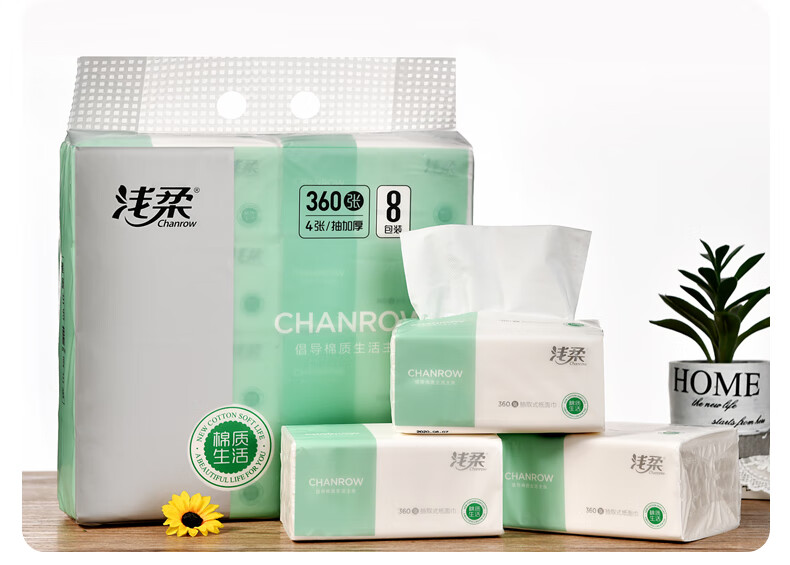 【分仓直发包邮】浅柔抽取式面巾纸90抽*8包(4层)360张/包QC3076
