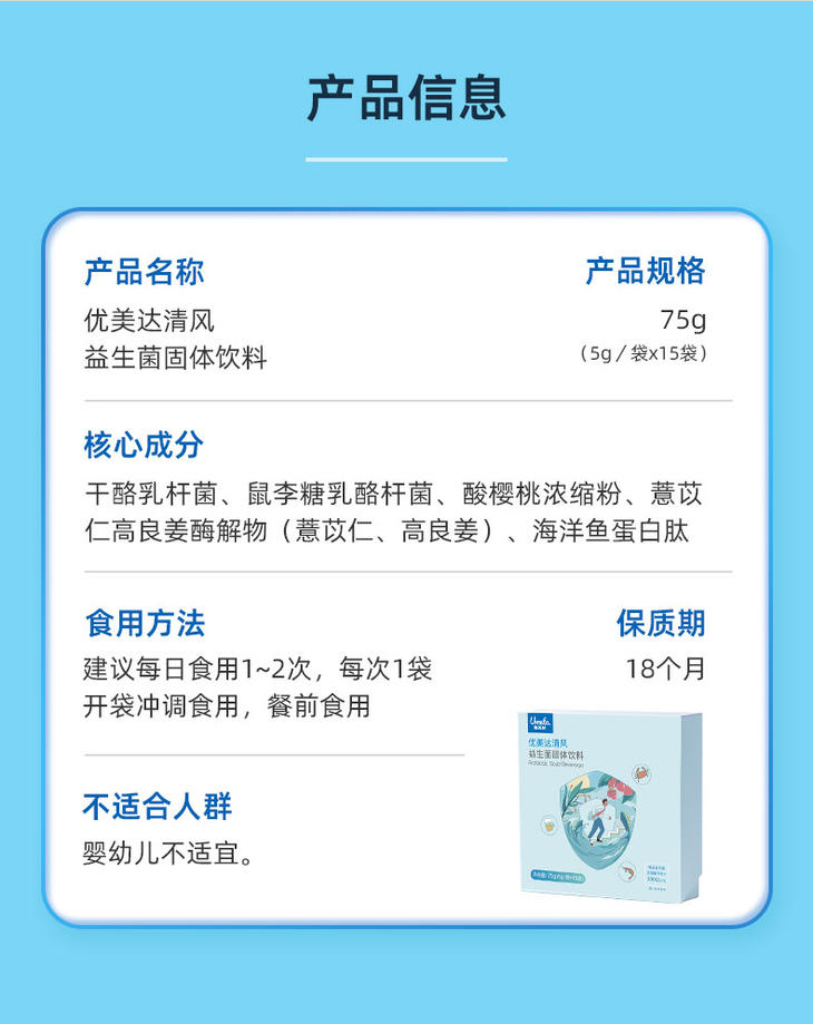 【酸值管理】优美达清风益生菌 革新配方 嘌呤无忧 行走健如清风 15袋/盒