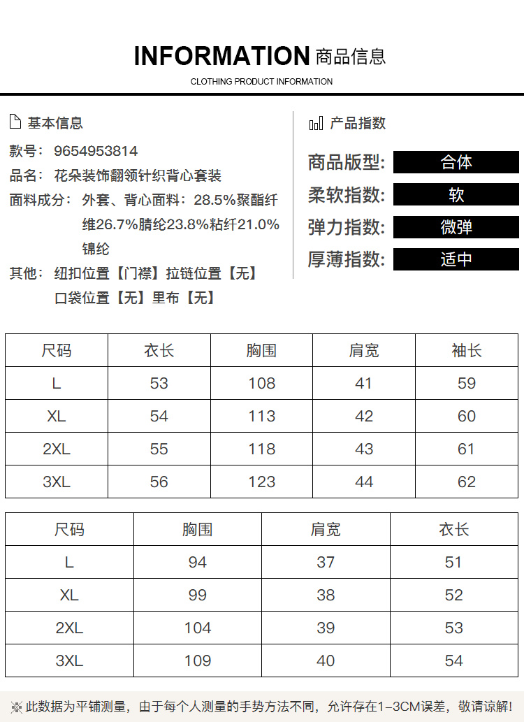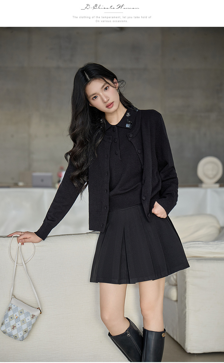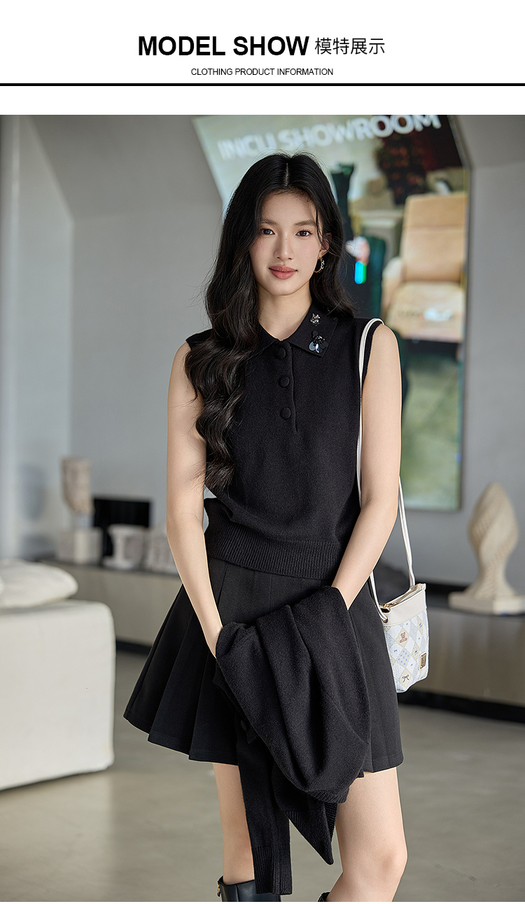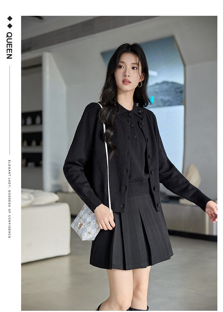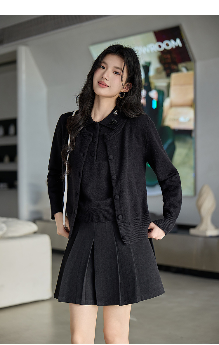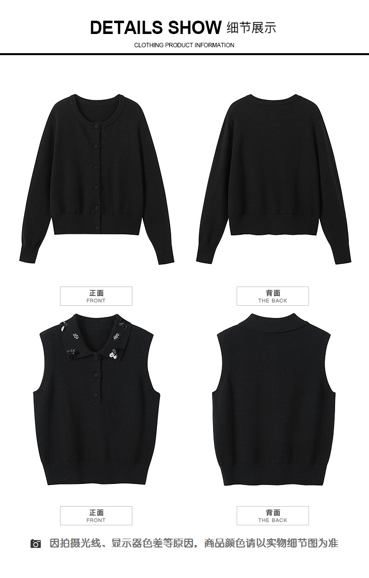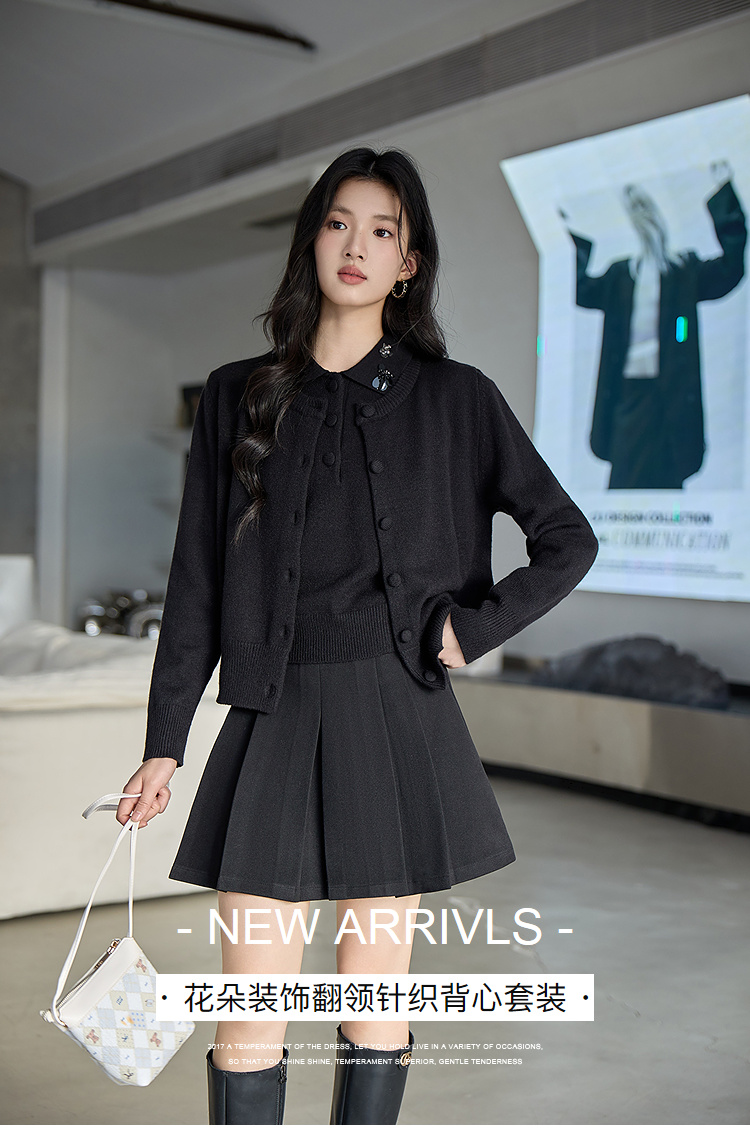 奢姿大码女装2025冬季新款花朵装饰翻领针织开衫胖妹妹背心套装9654953814