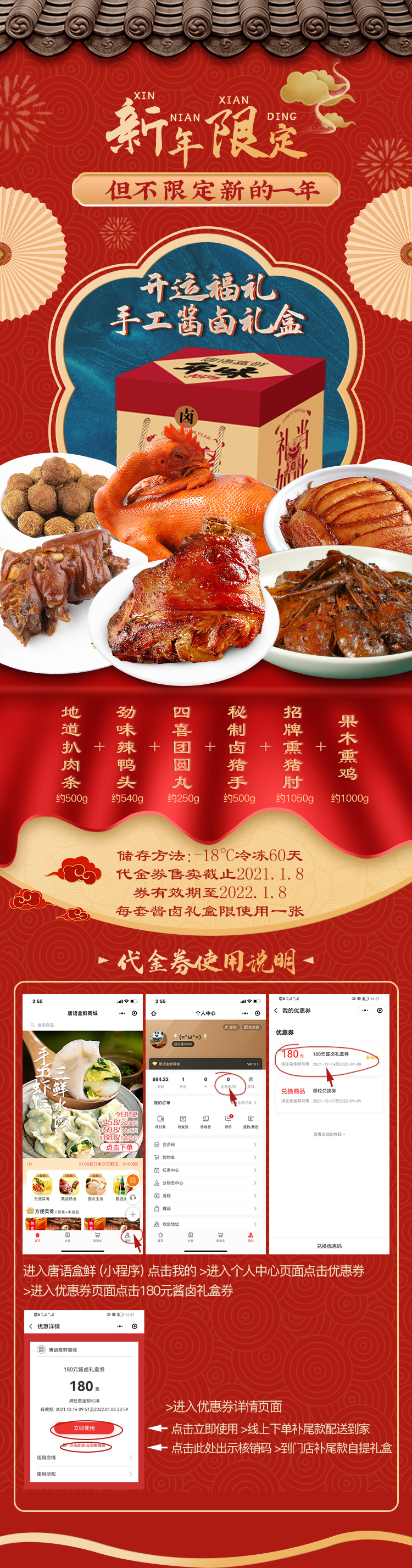 该商品为抵用券,购买完抵用券可至唐语盒鲜商城(详情页最下方关联商品酱卤礼盒)付尾款