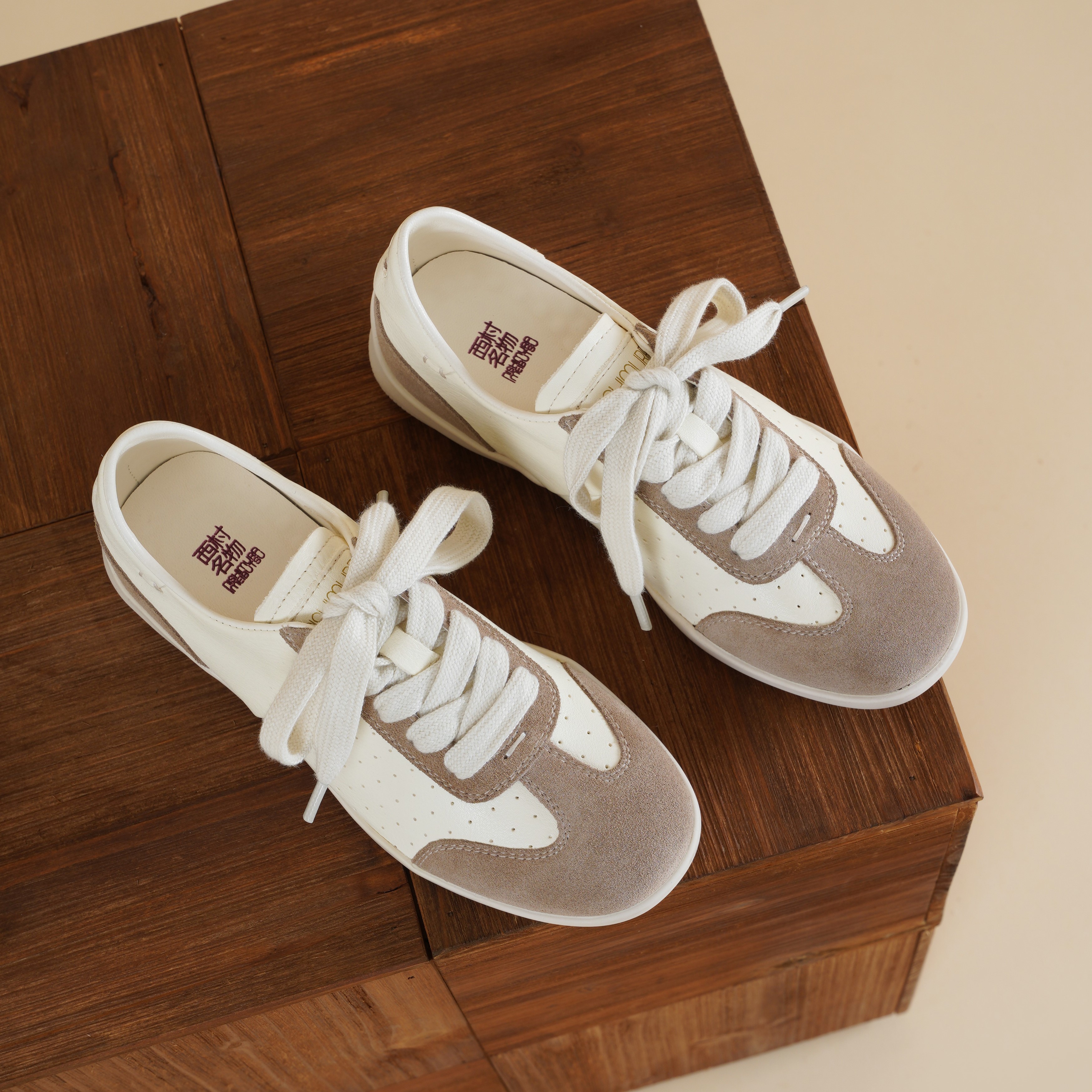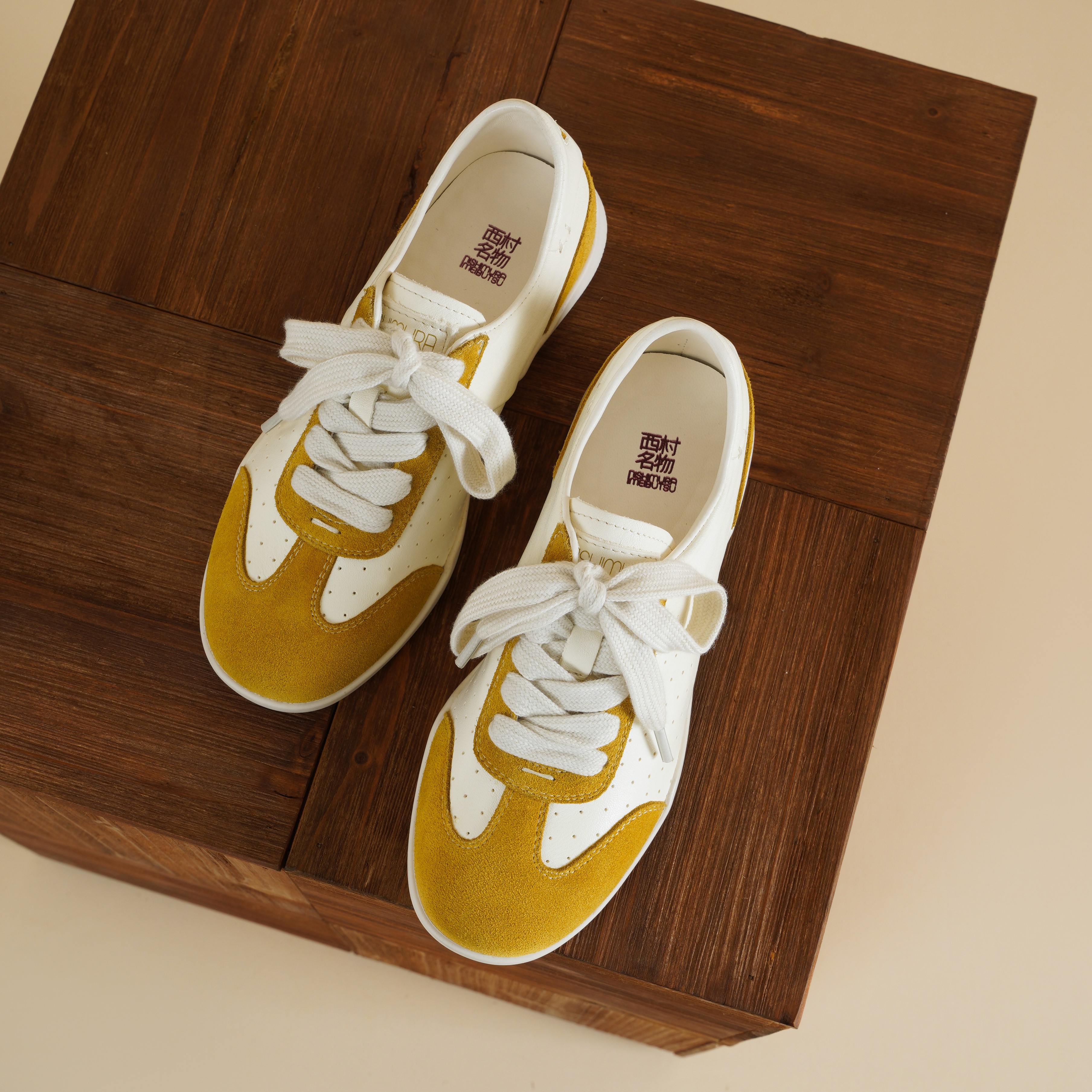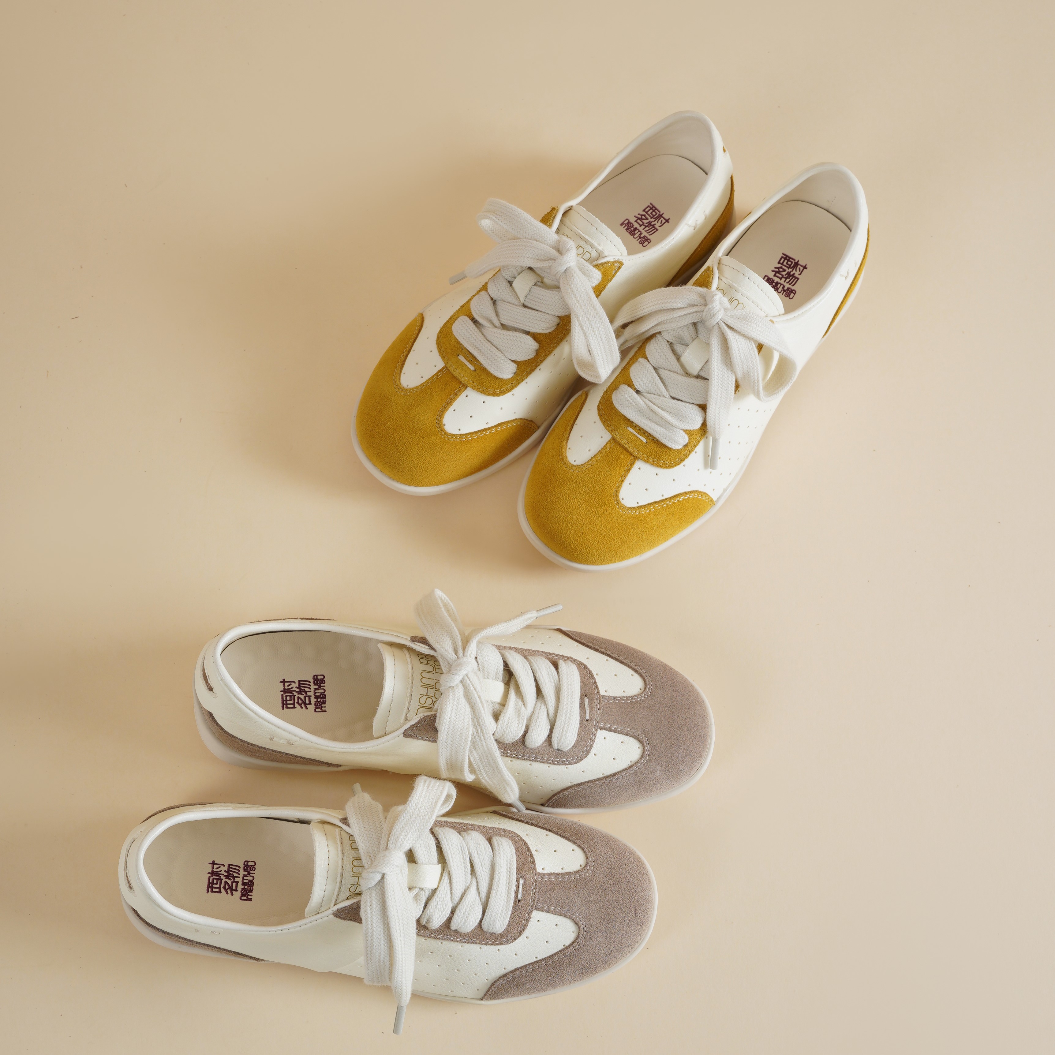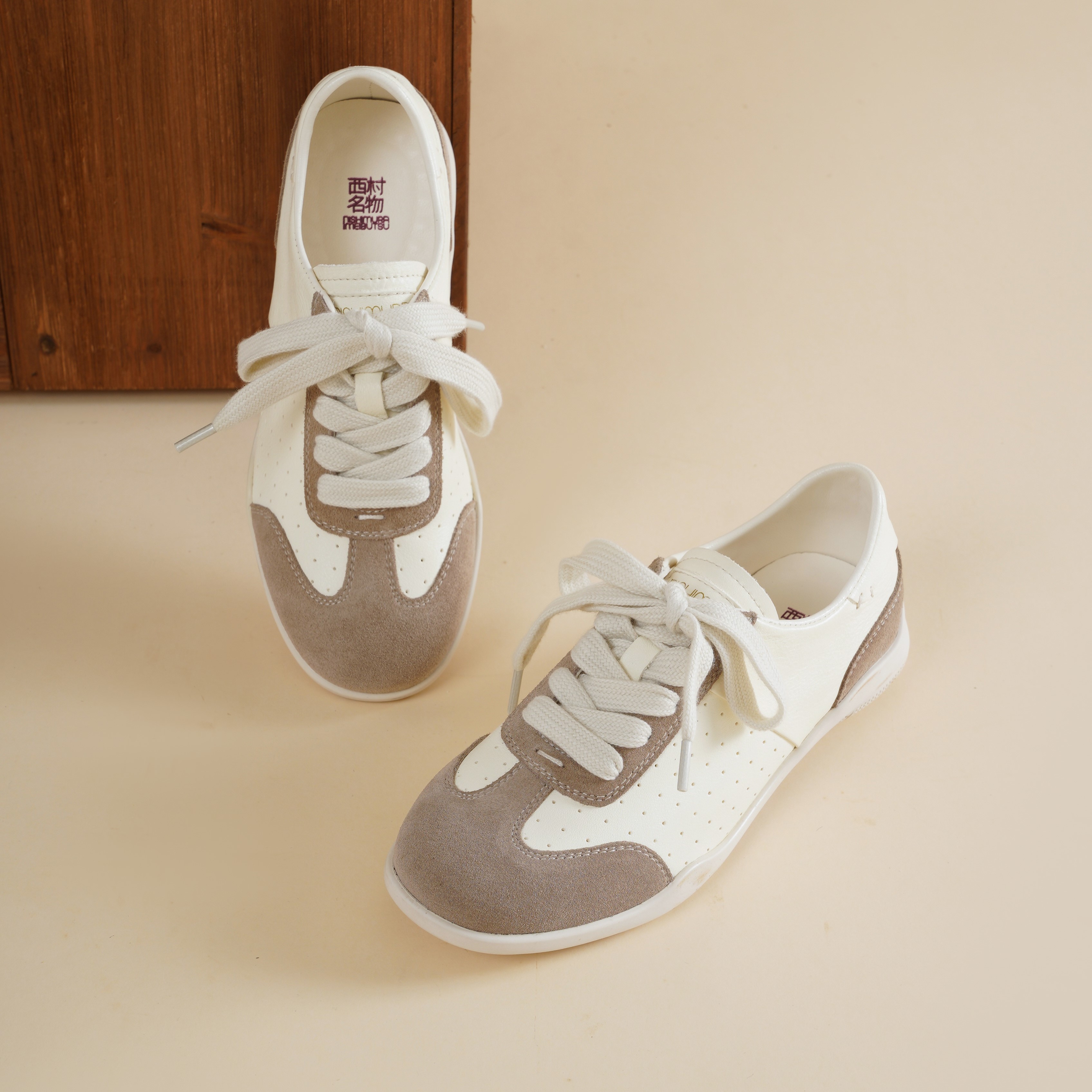 【牛皮革】西村名物2026年春季新款舒适透气厚底防滑超轻系带拼色德训鞋X26AM17281