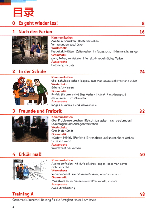根据中国德语青少年学习者的特点和需求,我社决定引进此套教程,并特别感谢上海甘泉外国语中学张敏、唐婕老师为本书制作了配套的数字教学辅助资源。希望能对广大的学习者有所帮助,使学习者通过使用本教程提高德语水平、了解德语国家文化,达到跨文化交流的目的。
