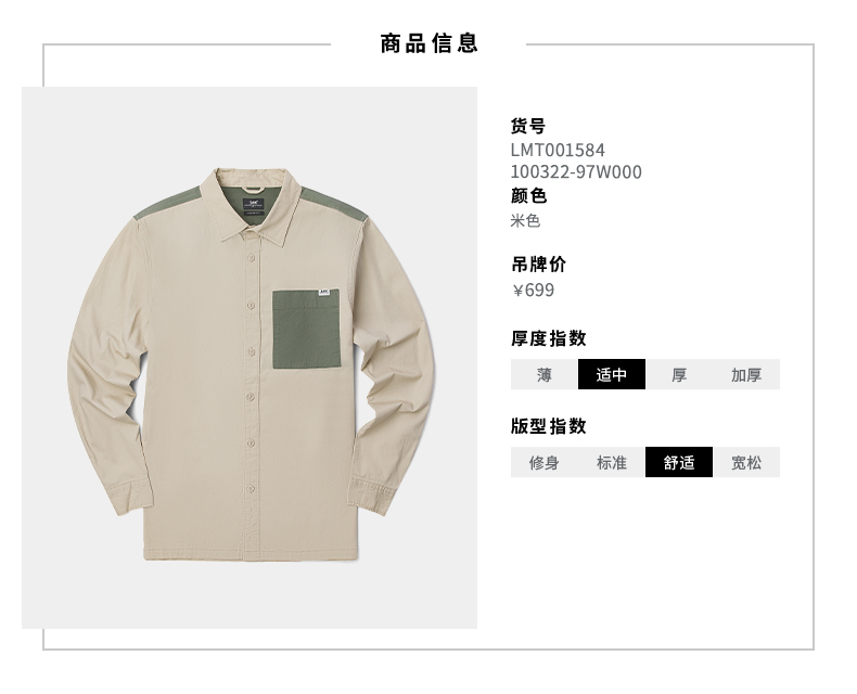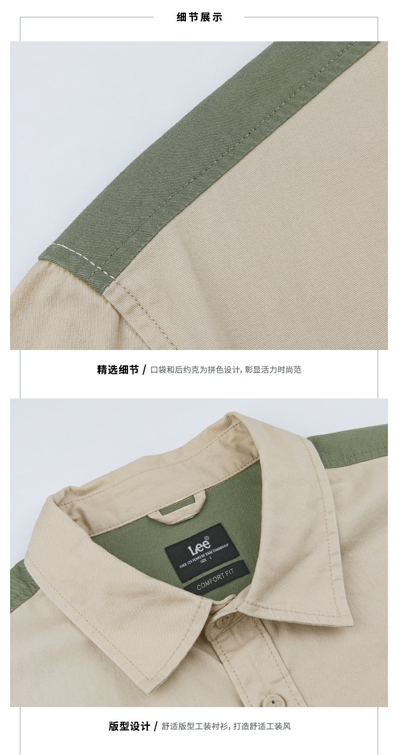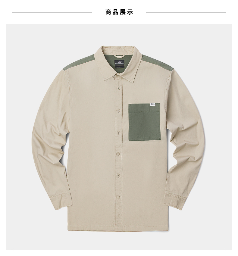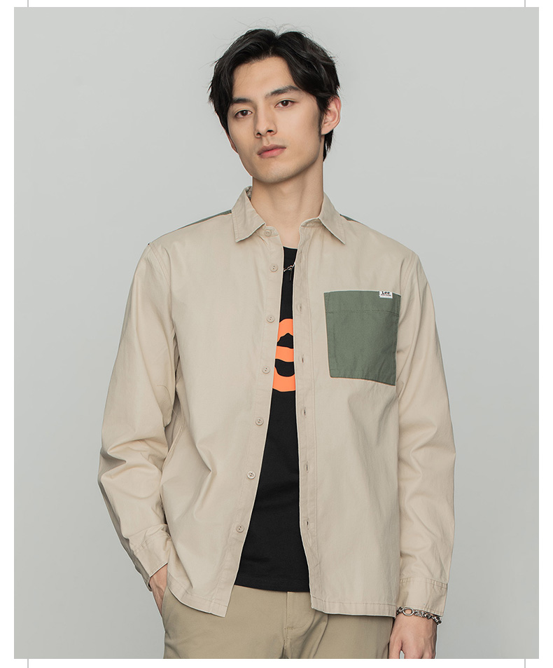 Lee商场同款22春新品舒适版米色工装男长袖衬衫LMT001584100-97W