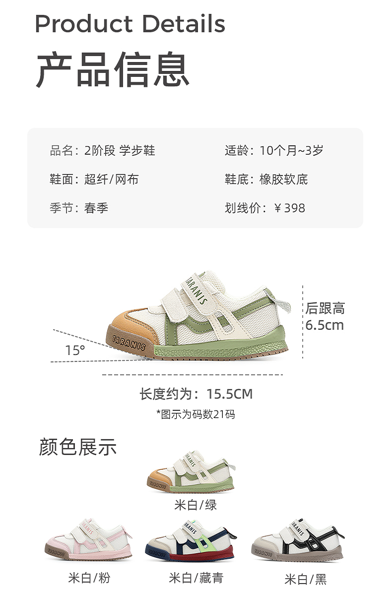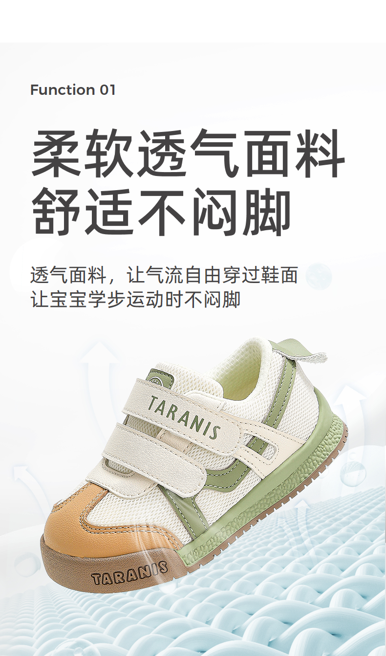 泰兰尼斯学步鞋男宝宝网布透气面包鞋春季新款机能鞋女童软底鞋子 T01T5A6311