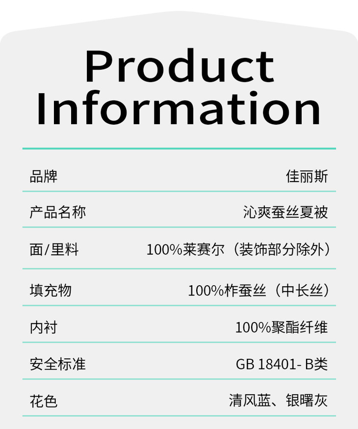 【预售-4月17日配送】佳丽斯沁爽蚕丝夏被(清风蓝)/1件(150*230cm,总重约1.3kg)