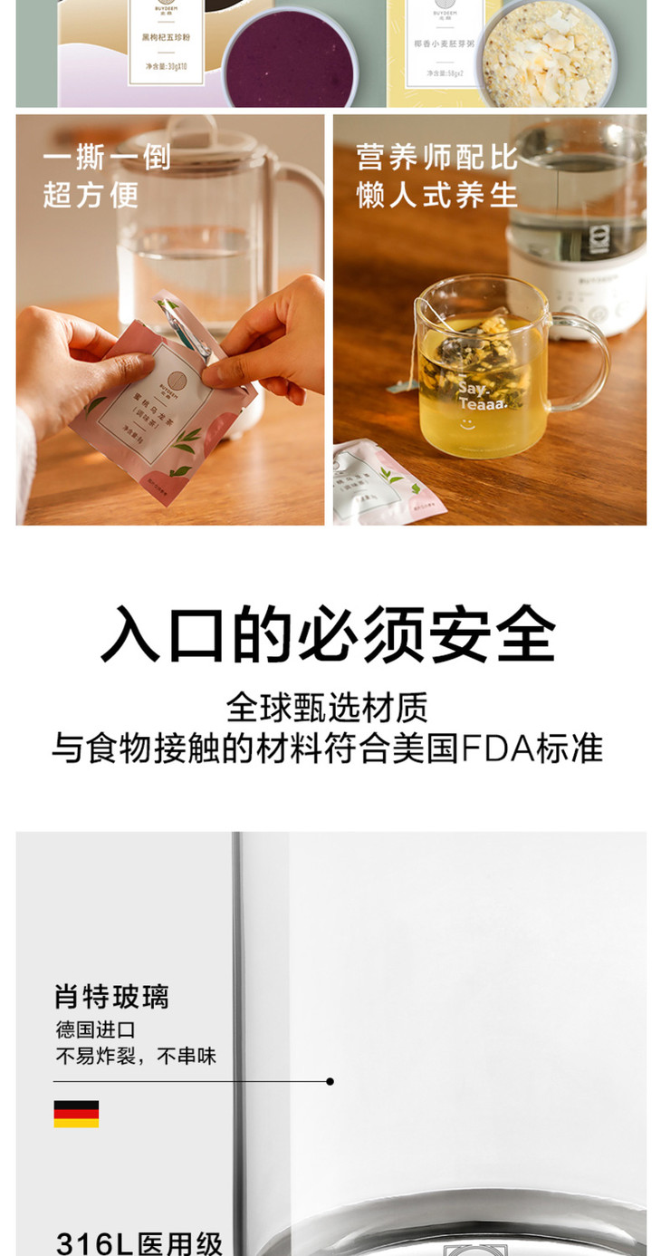 【北鼎】北鼎养生壶K31办公室minik小型家用多功能玻璃一体煮茶器旅行便携