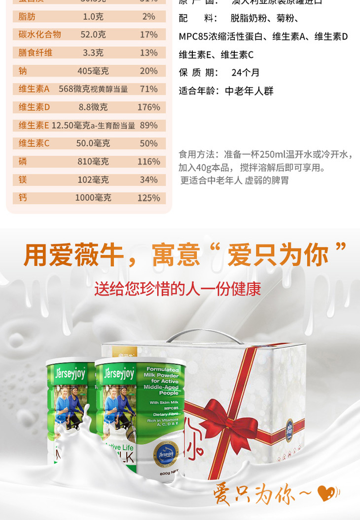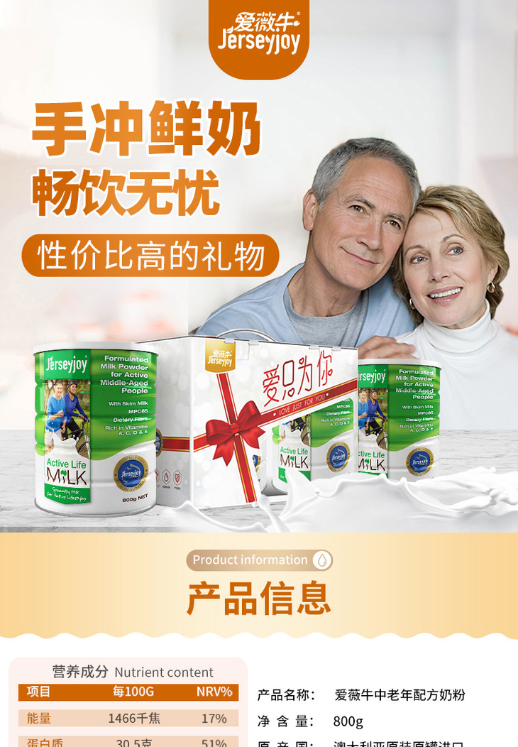 澳洲爱薇牛 逸沛中老年人配方奶粉 罐装800g/800*2礼盒装
