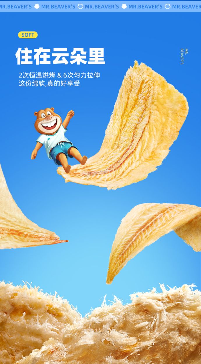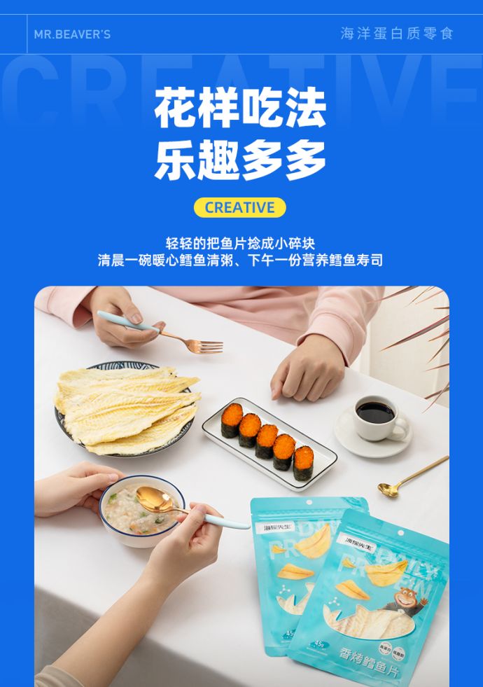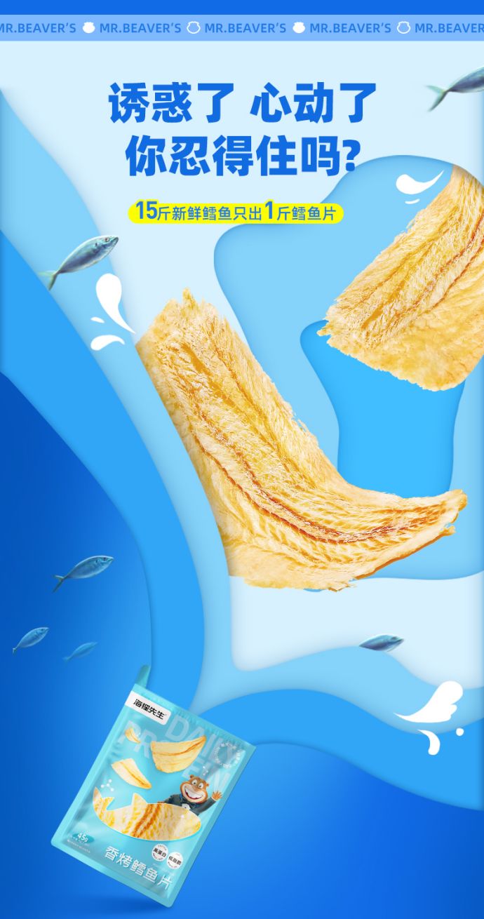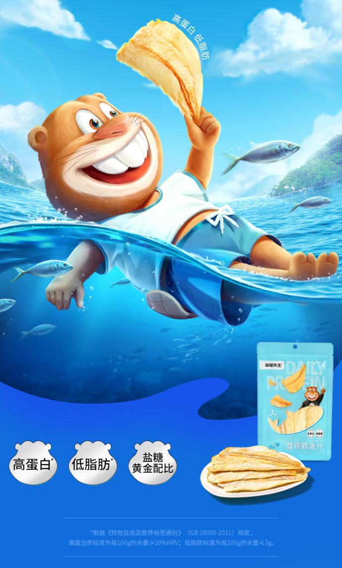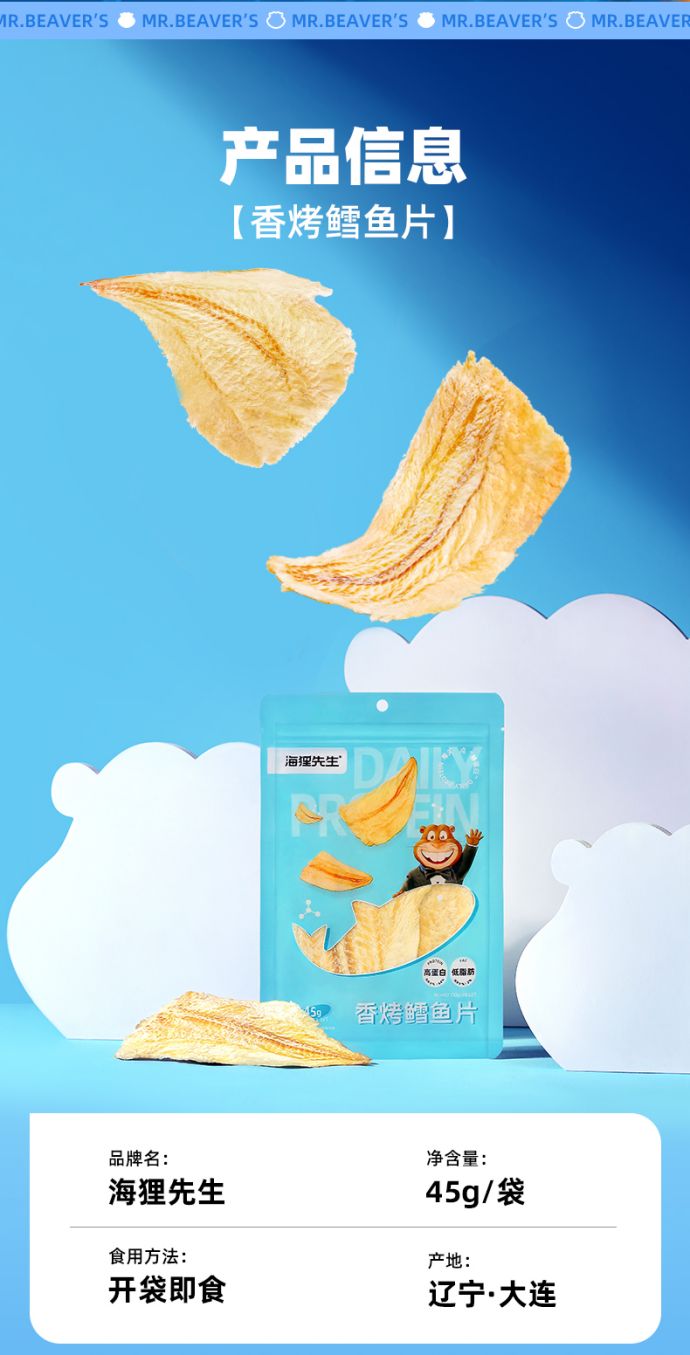 心选丨海狸先生香烤鳕鱼片45g/袋即食低脂零食小吃