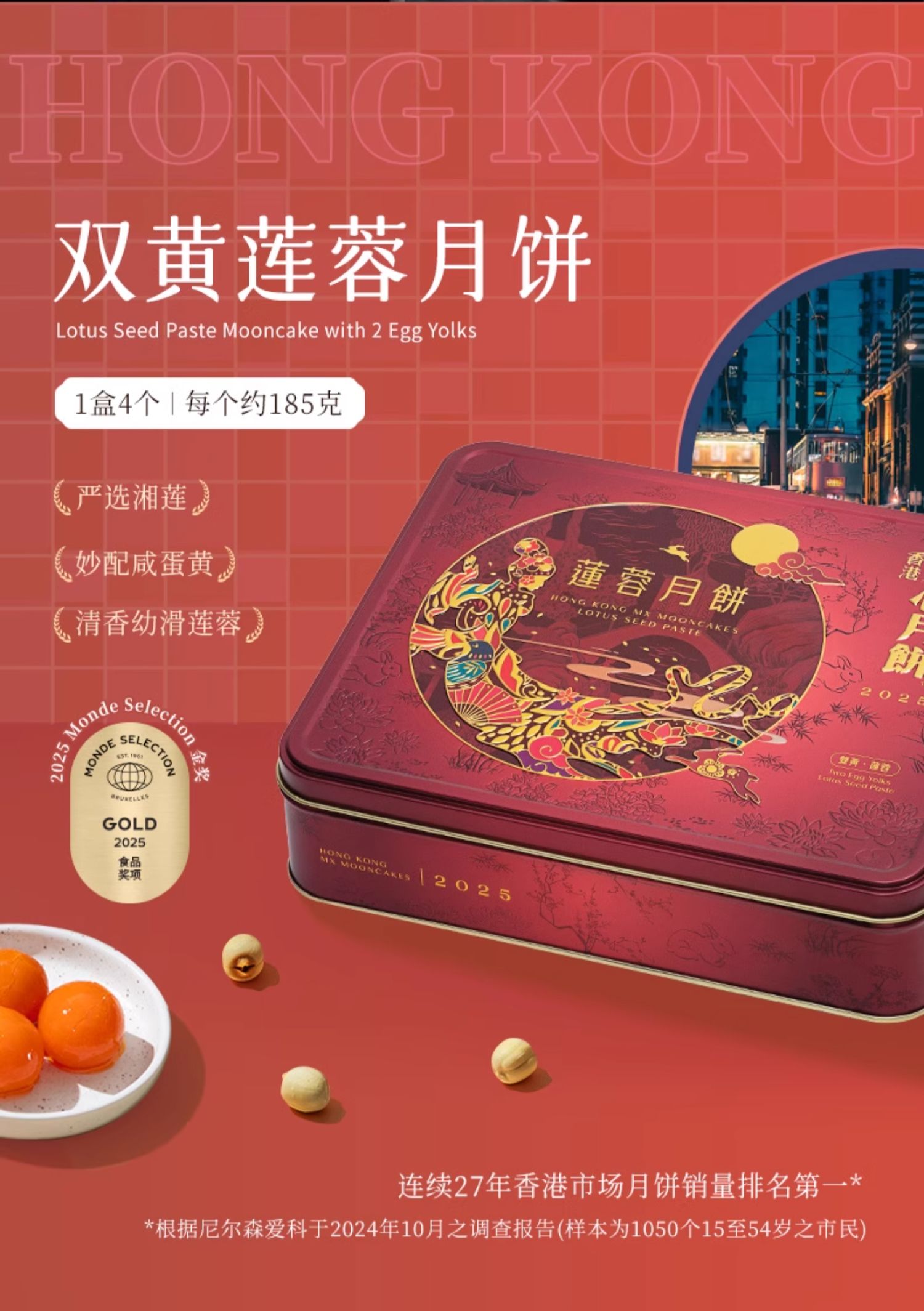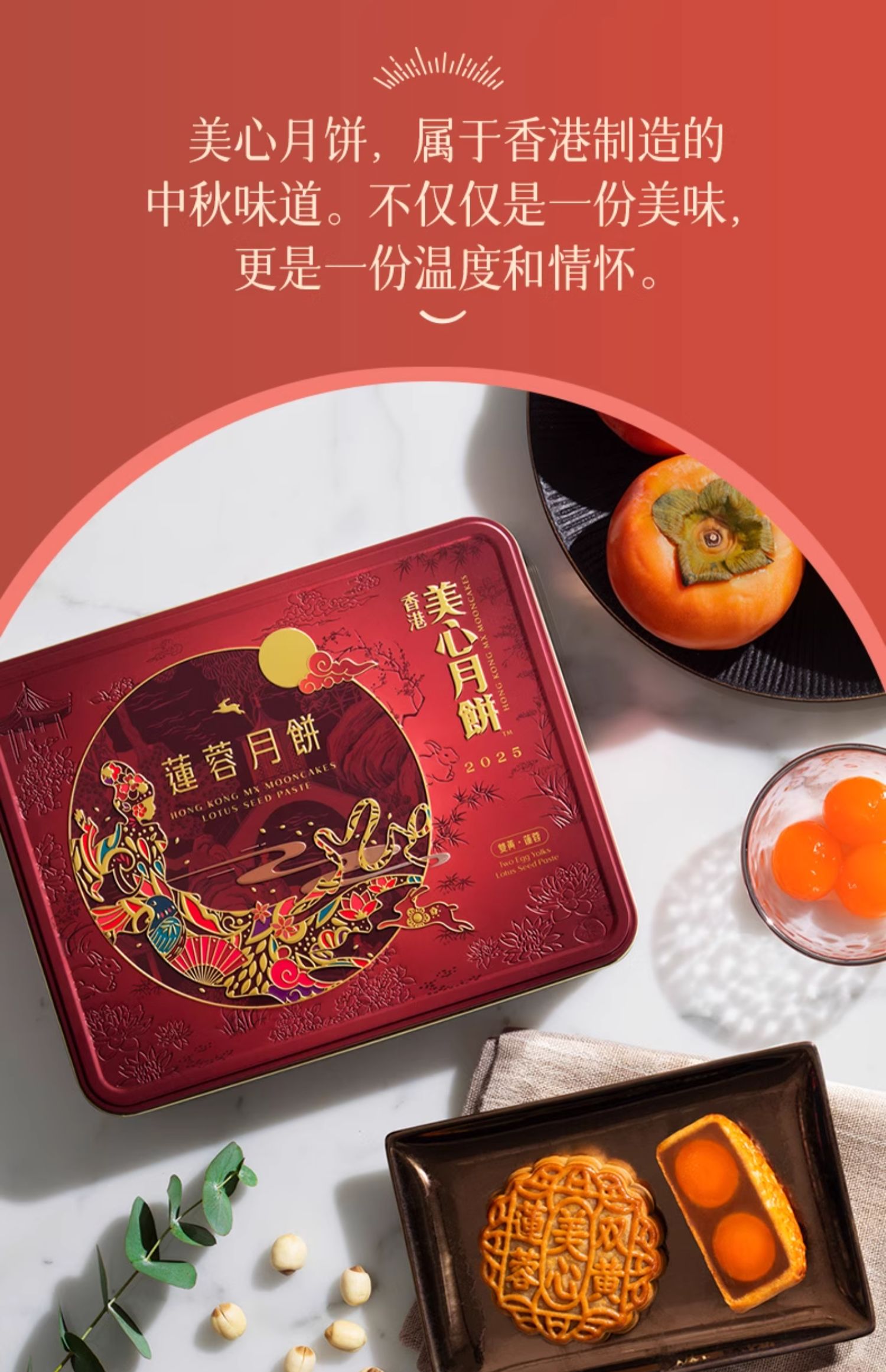【乐享中秋】香港美心双黄莲蓉月饼礼盒740g/070022 全新包装精选湘莲子莲蓉清香幼滑