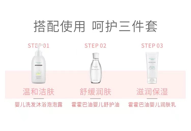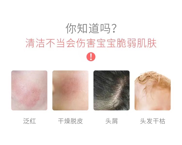 无泪配方,不含皂基,性质温和,易冲洗,适合婴幼儿幼嫩皮肤使用。