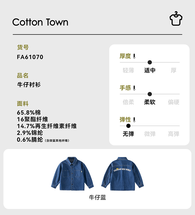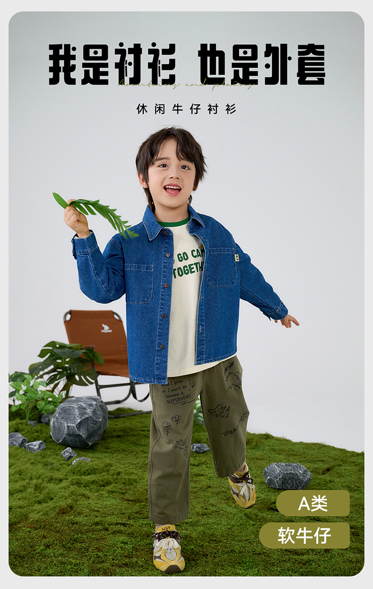 棉花堂童装牛仔衬衫童装印花外套-FA61070