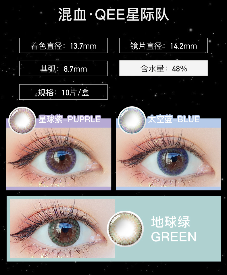 【日抛】Holy Nara星际队新款 直径14.2 含水48%(日抛10片/盒 不同度数请拍两盒)