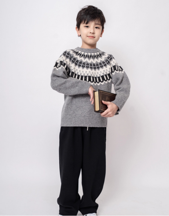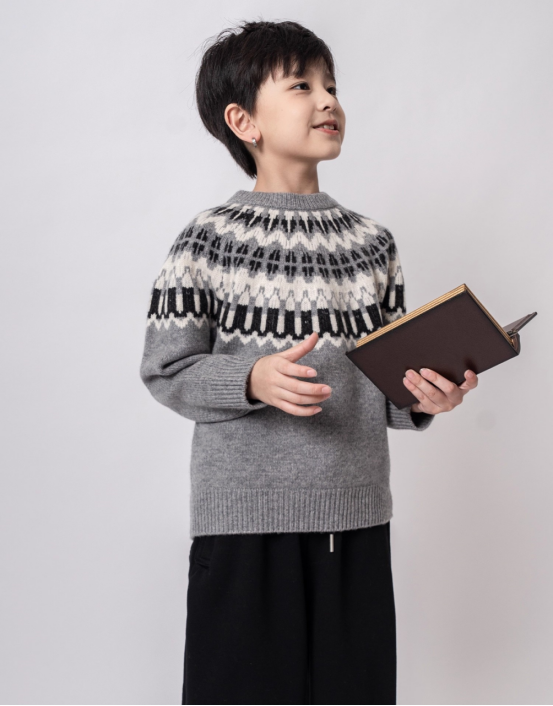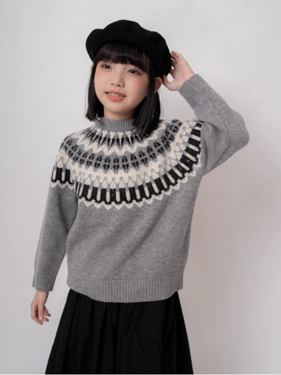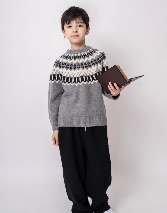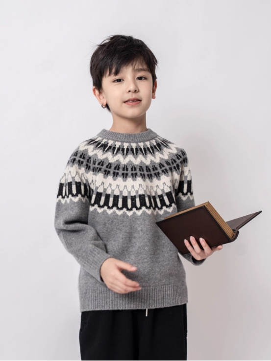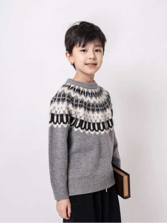 冷门显贵‼️费尔岛控必入!秋冬氛围感拉满🥳【吉米故事▪儿童灰色费尔岛针织毛衣】 ✔️ 小众不撞款||灰色费尔岛图案高级耐脏,内搭外穿都绝,从10℃穿到20℃的省钱神器