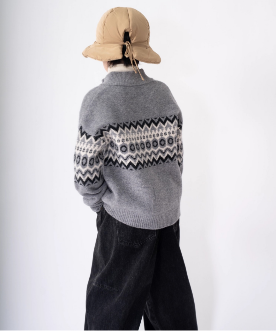 今日是复古风穿搭天花板 气质感满满的费尔岛毛衣和半高领开衫 点睛之笔的绝美复古风搭配 夸爆这绝美的费尔岛毛衣 细腻的几何纹、线条交织 搭配灰色和谐又有层次感 细腻千绒纱,提花密度把控得刚好 一点都不臃肿,反而添了几分冬日灵动感 哇,这件毛衣花纹也太特别了吧