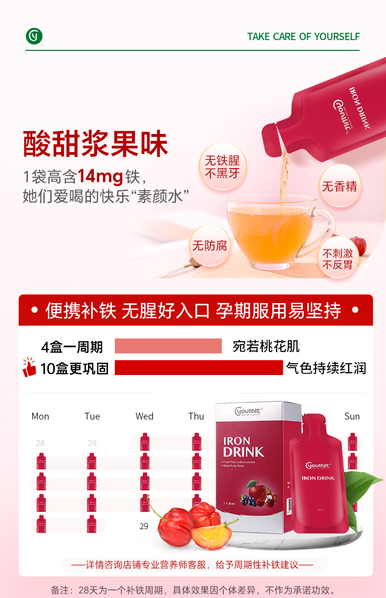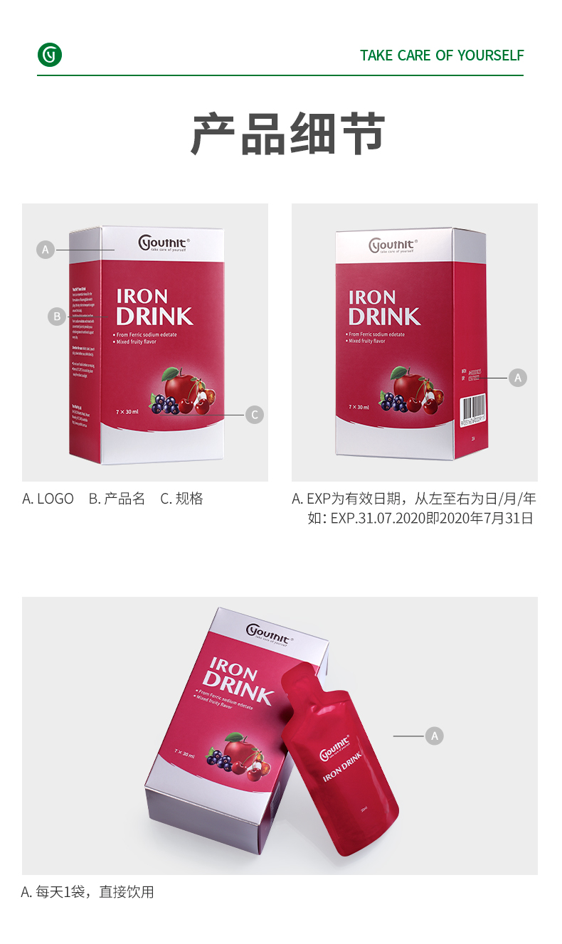 【铁饮元气包 (18岁+)优思益铁饮元素口服液体铁剂 补血养气色好喝无腥味