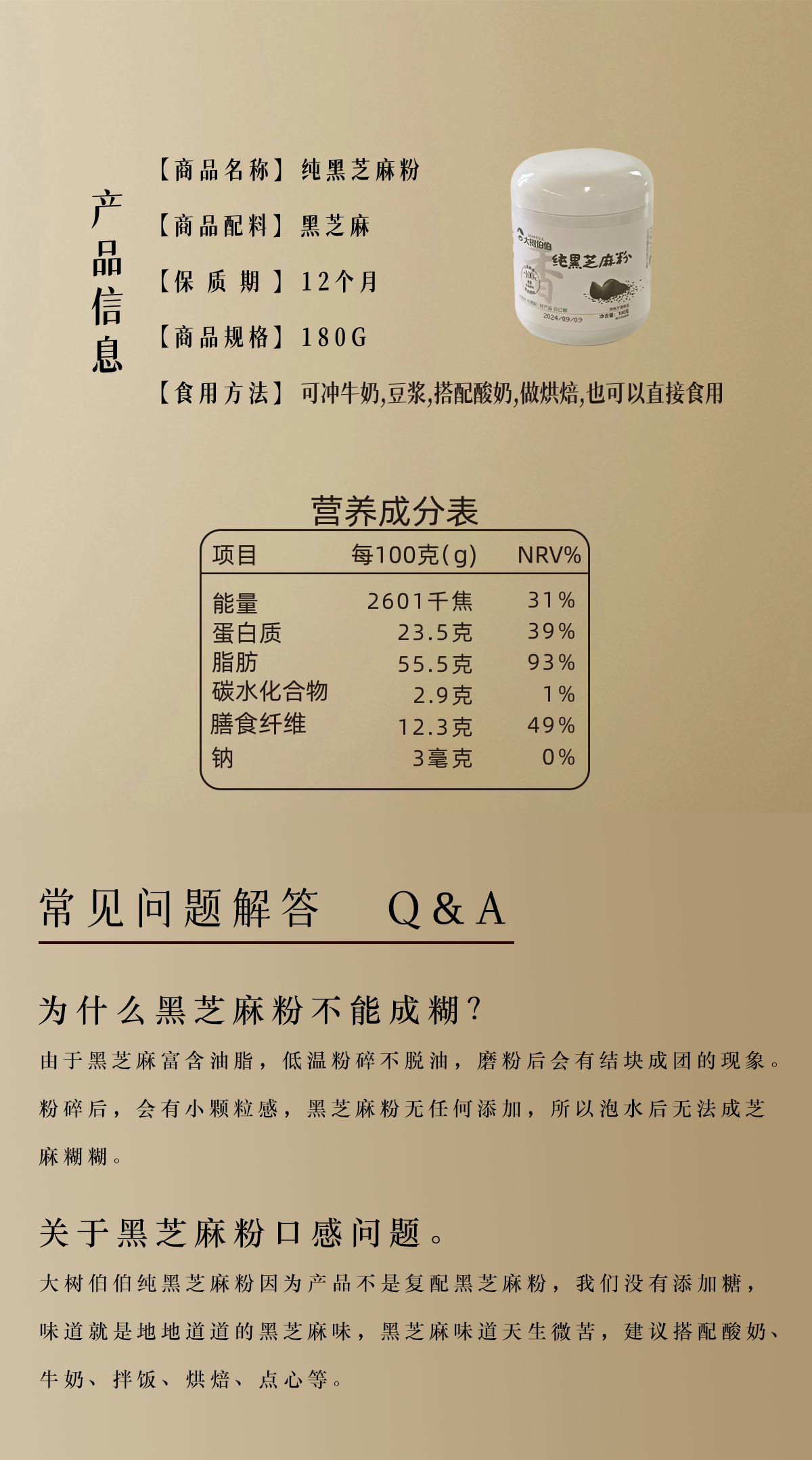 大树伯伯纯黑芝麻粉江西鄱阳黑芝麻专利粉碎营养罐装180克