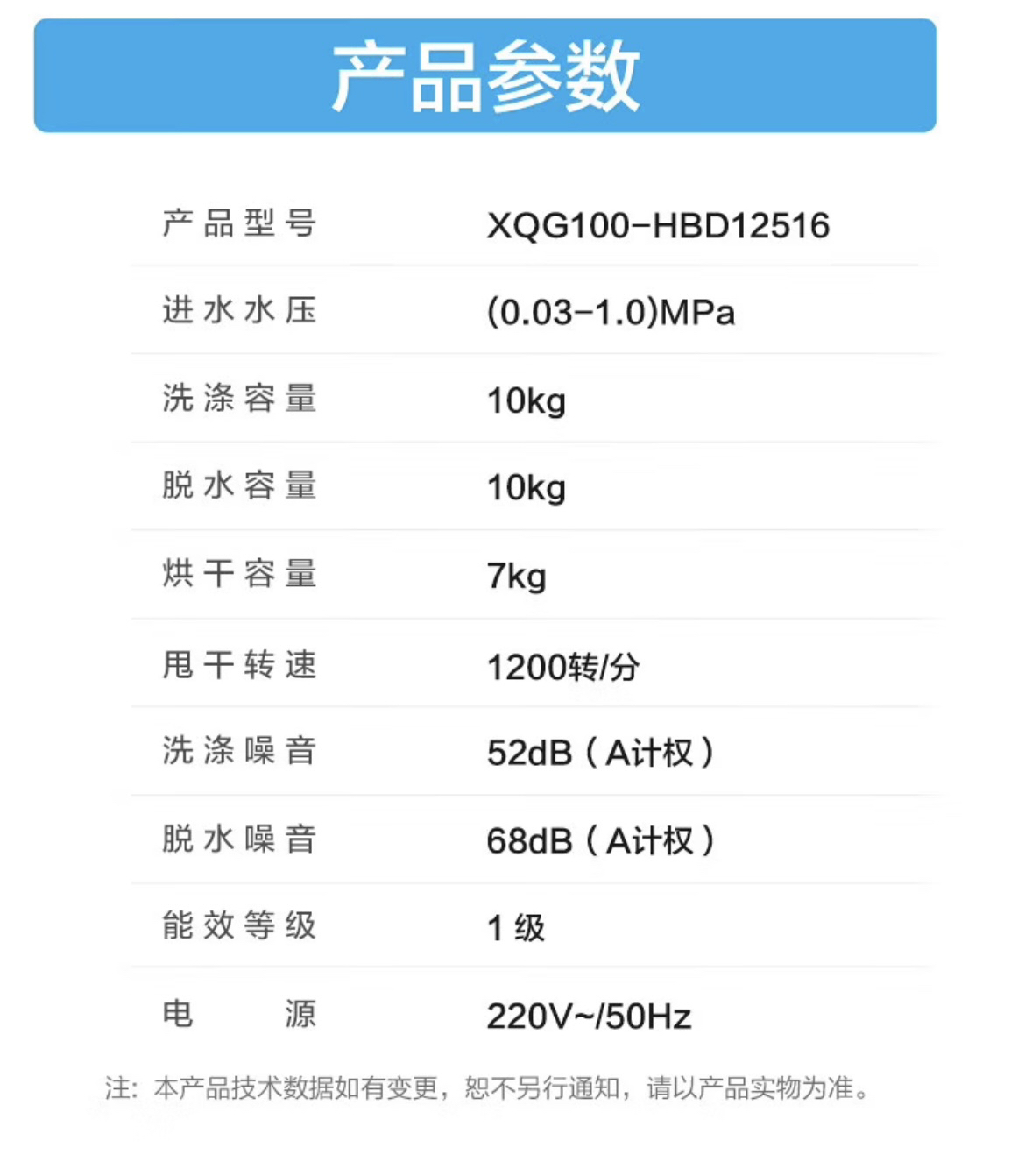 海尔(Haier)洗衣机 XQG100-HBD12516