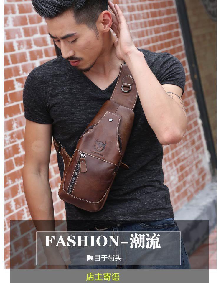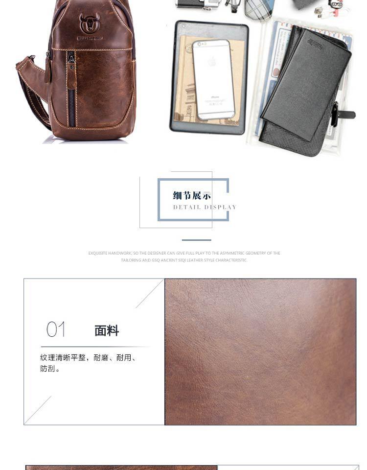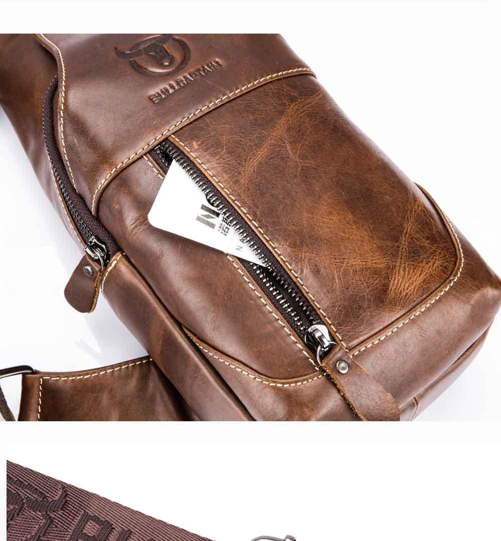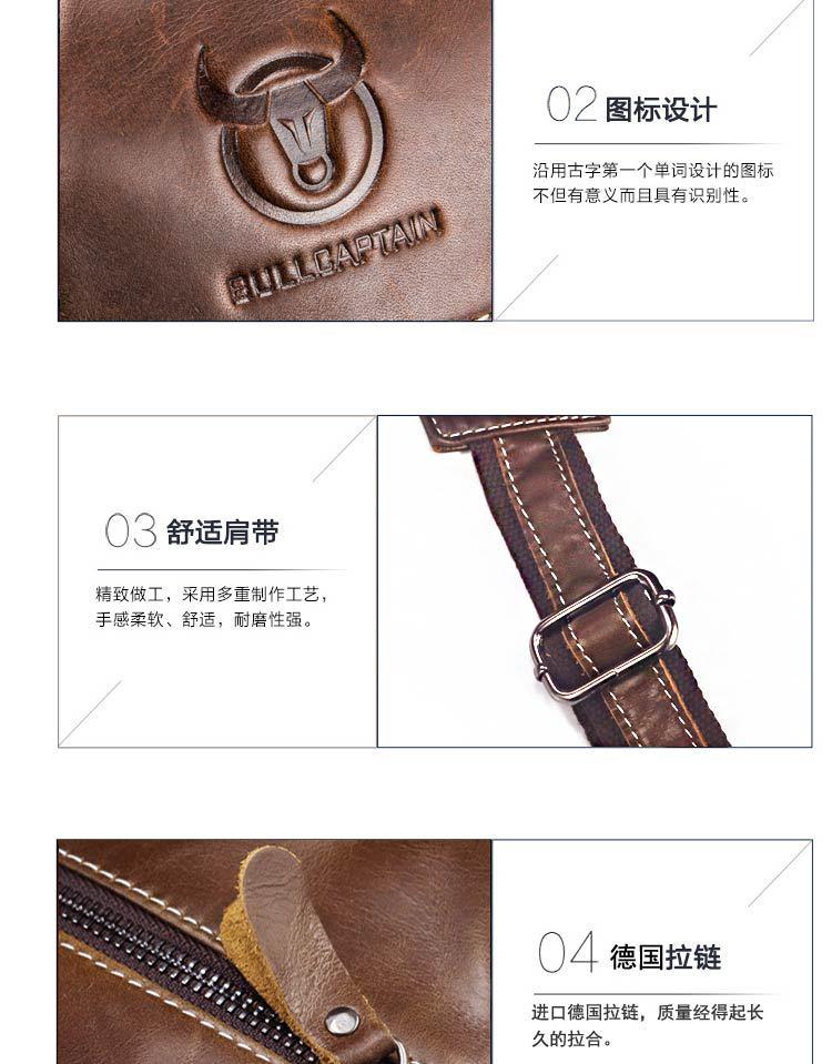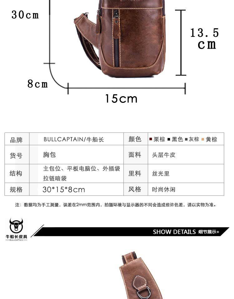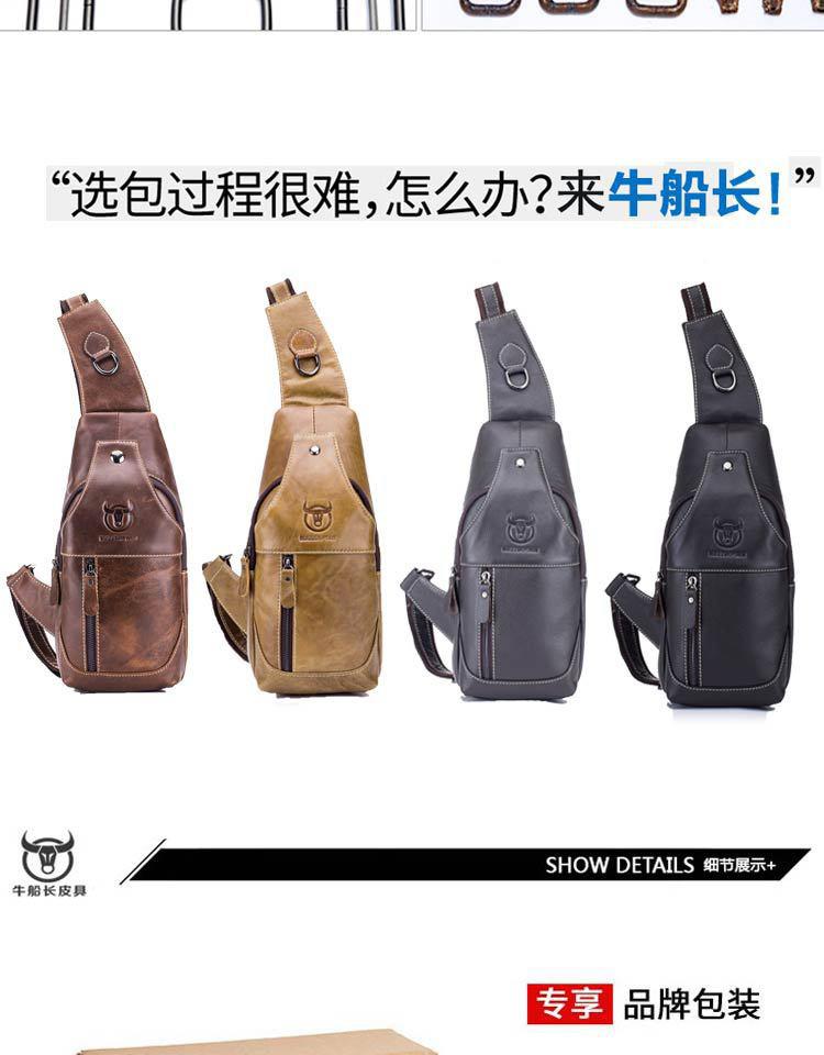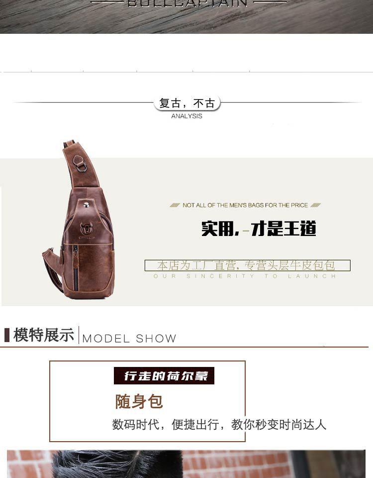 牛船长(BULLCAPTAIN复古男士真皮单肩斜挎胸包头层牛皮前挎包