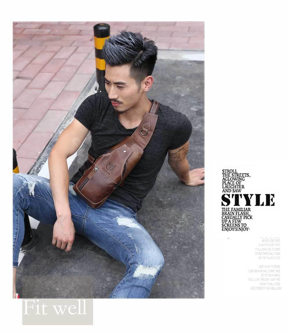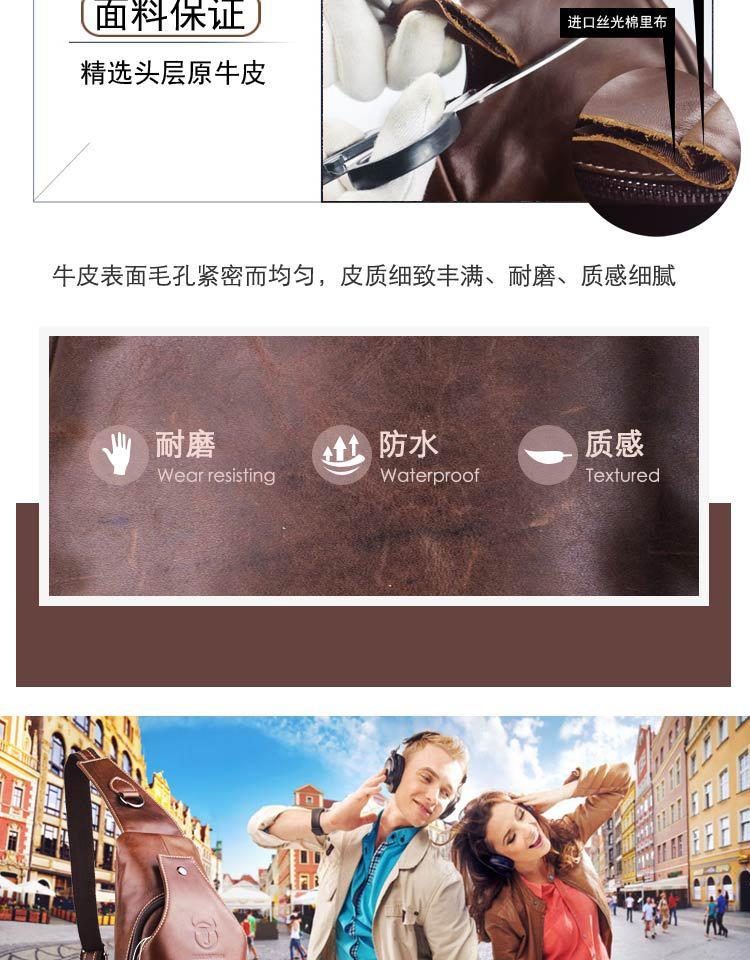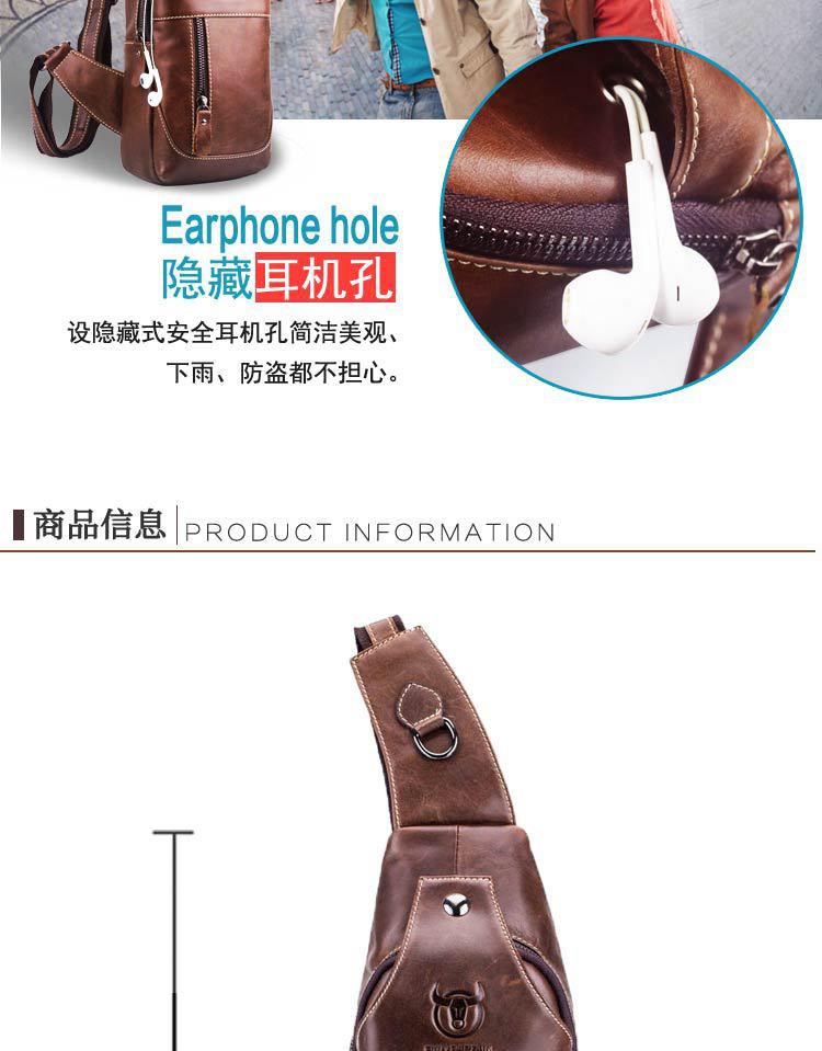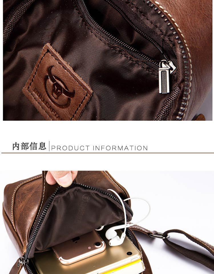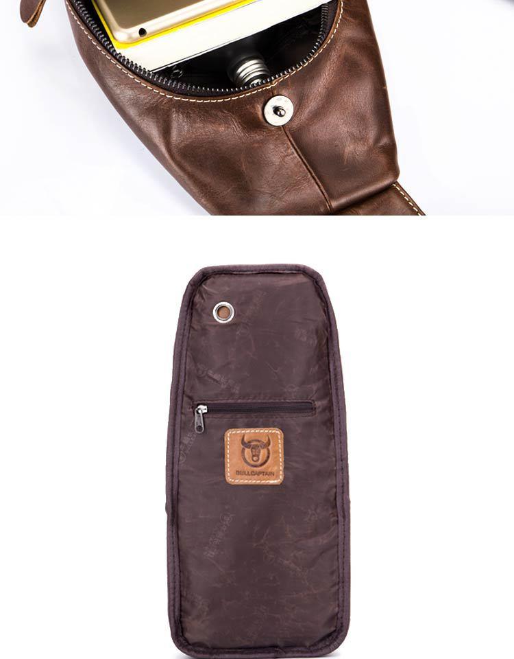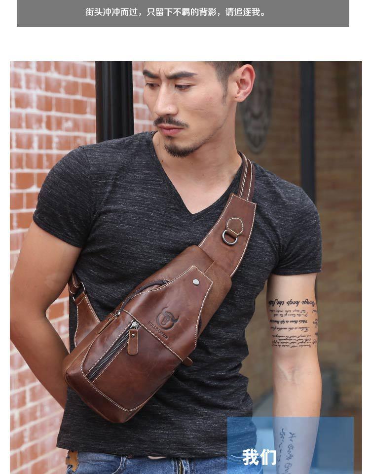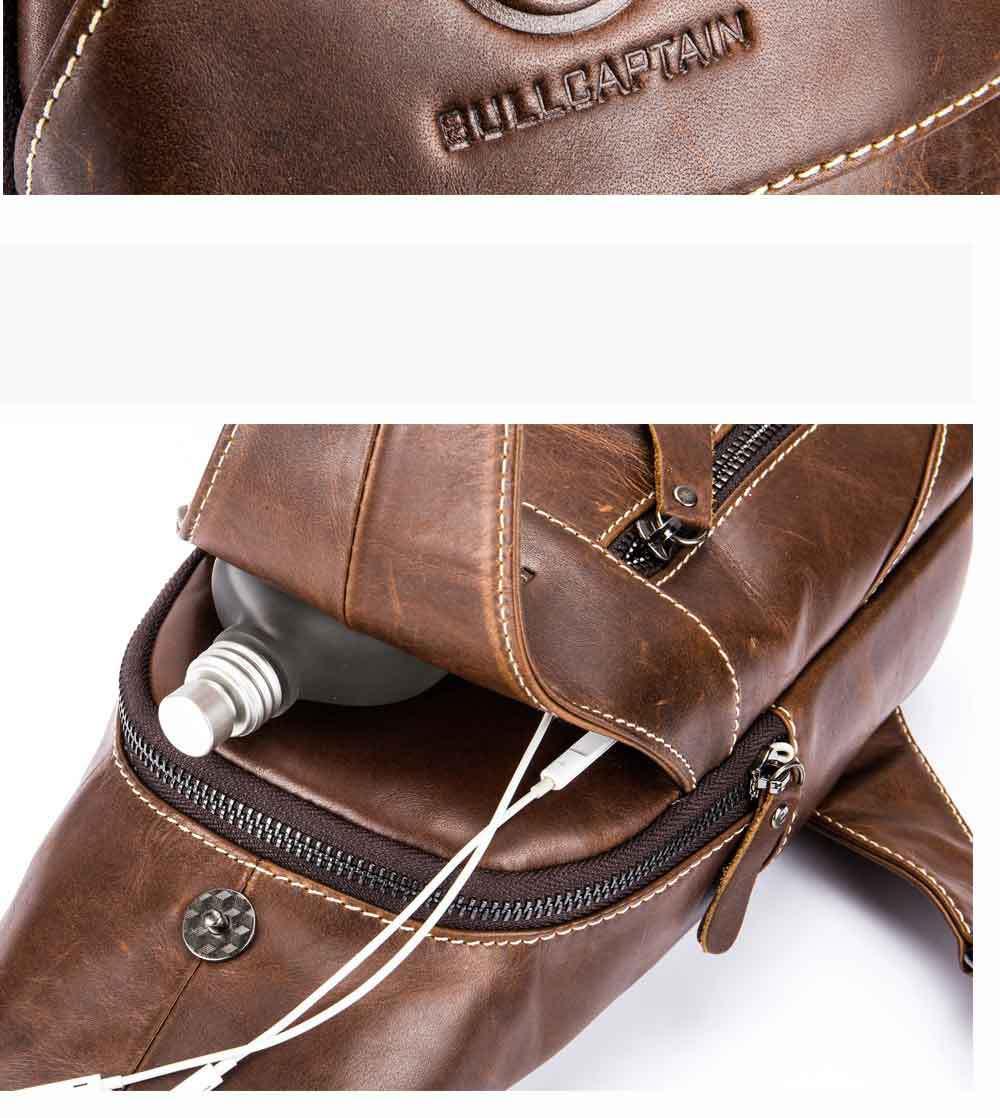 牛船长(BULLCAPTAIN复古男士真皮单肩斜挎胸包头层牛皮前挎包