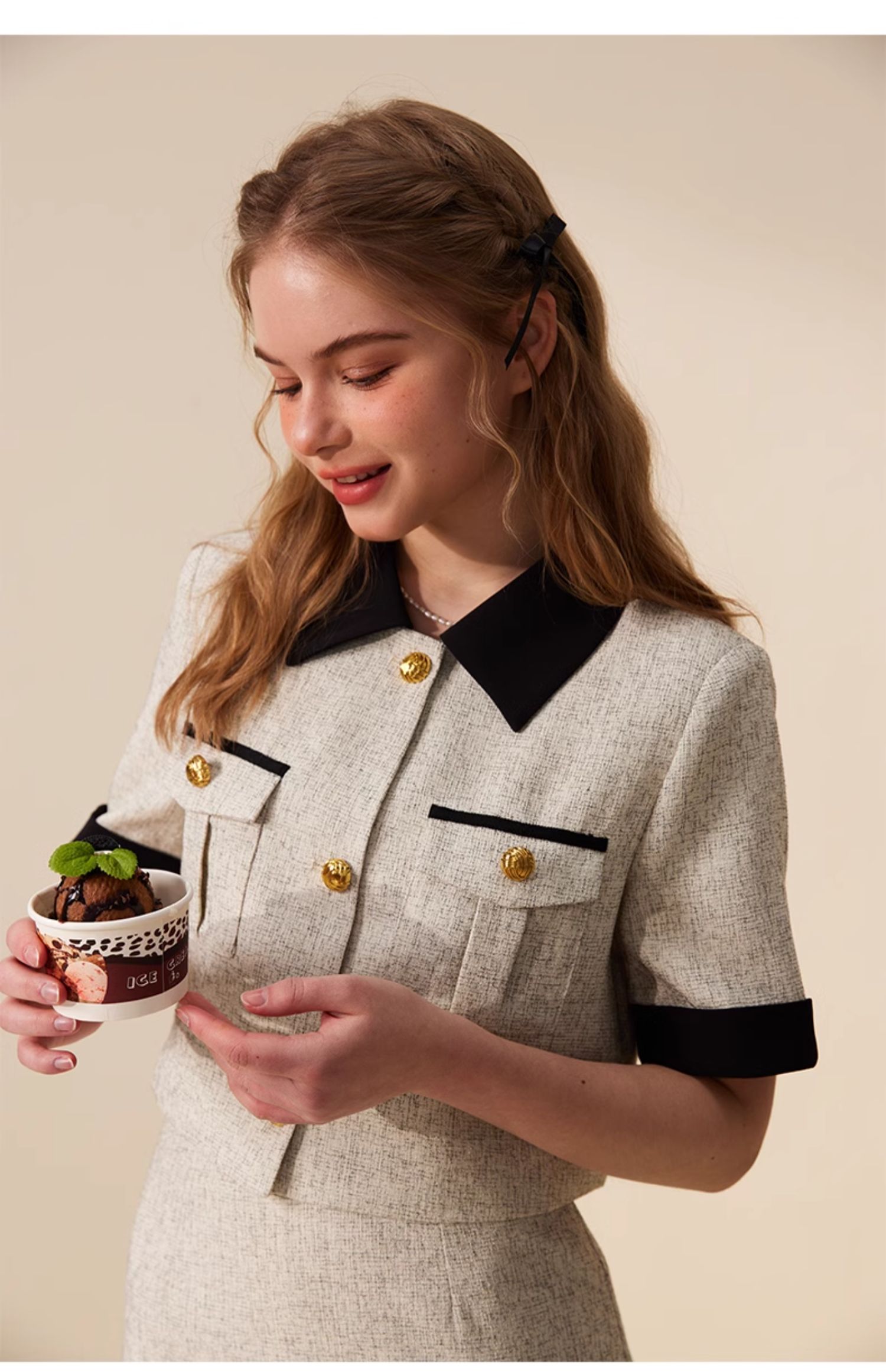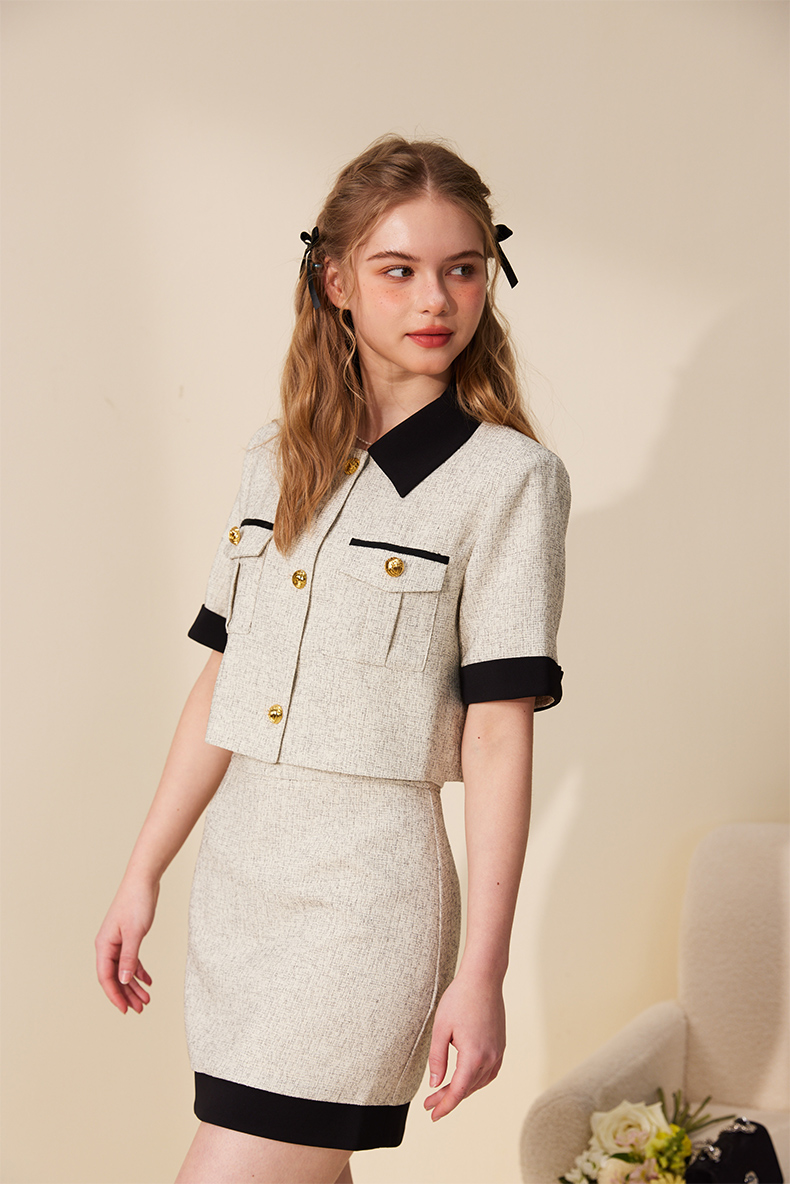 mc2黑色背心裙+粉色短外套女装2023秋季新款舒适两件套茶歇法式风
