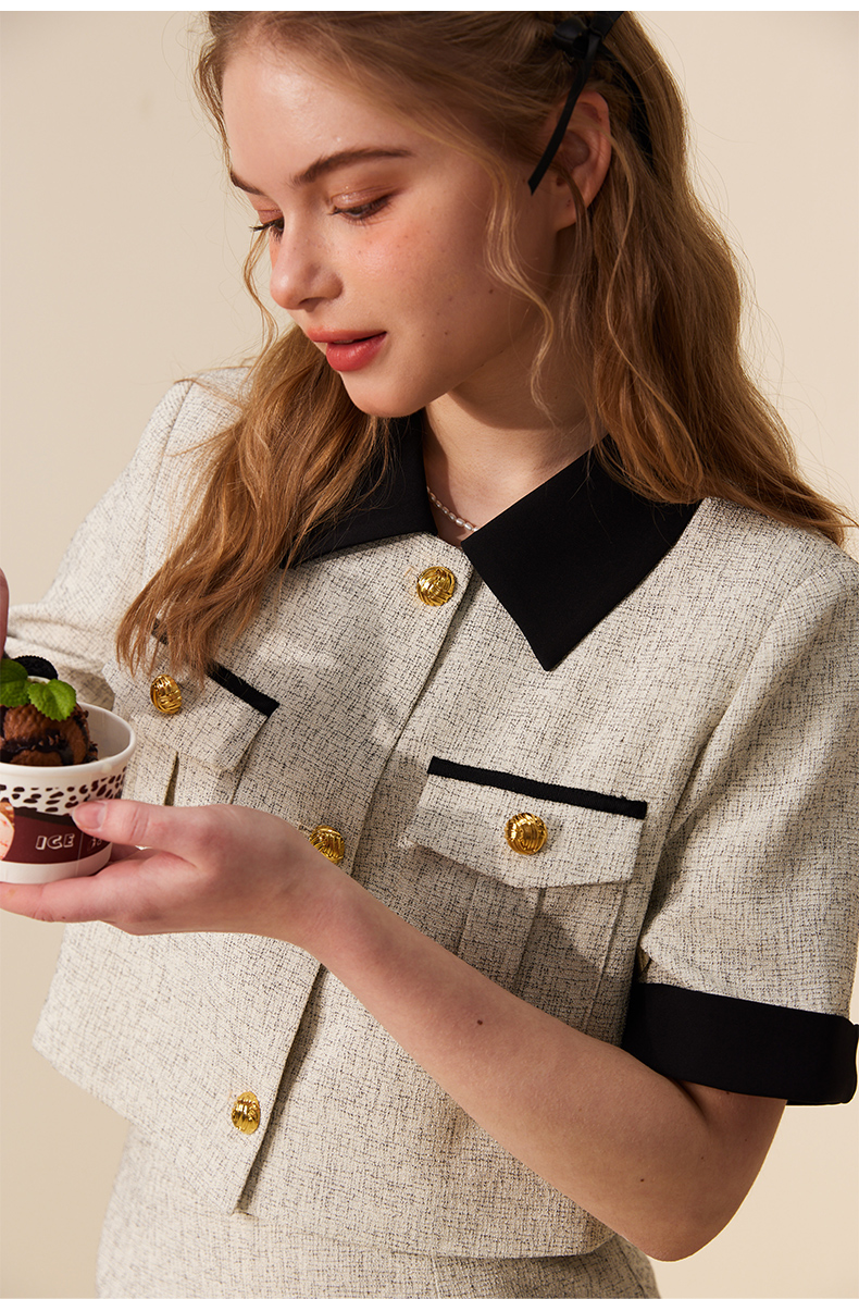 mc2小香风粉色格子外套女2023秋冬新款流水边时尚设计法式名媛风
