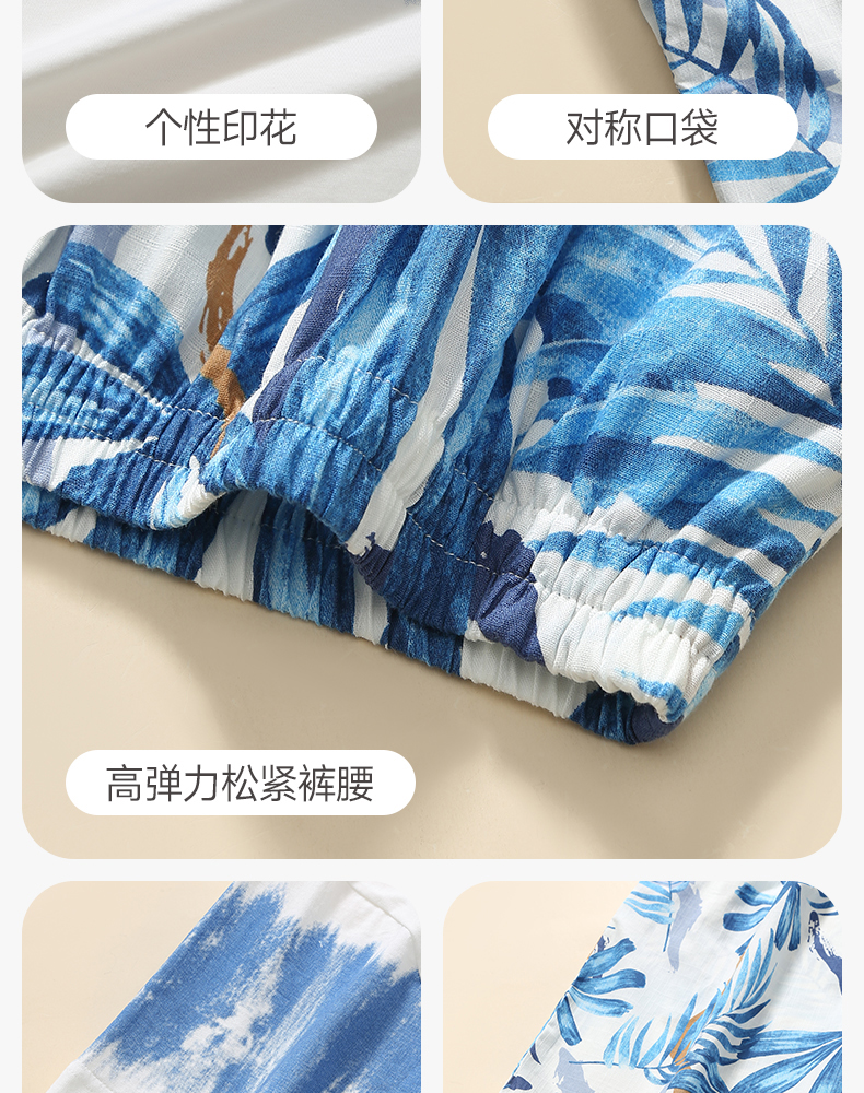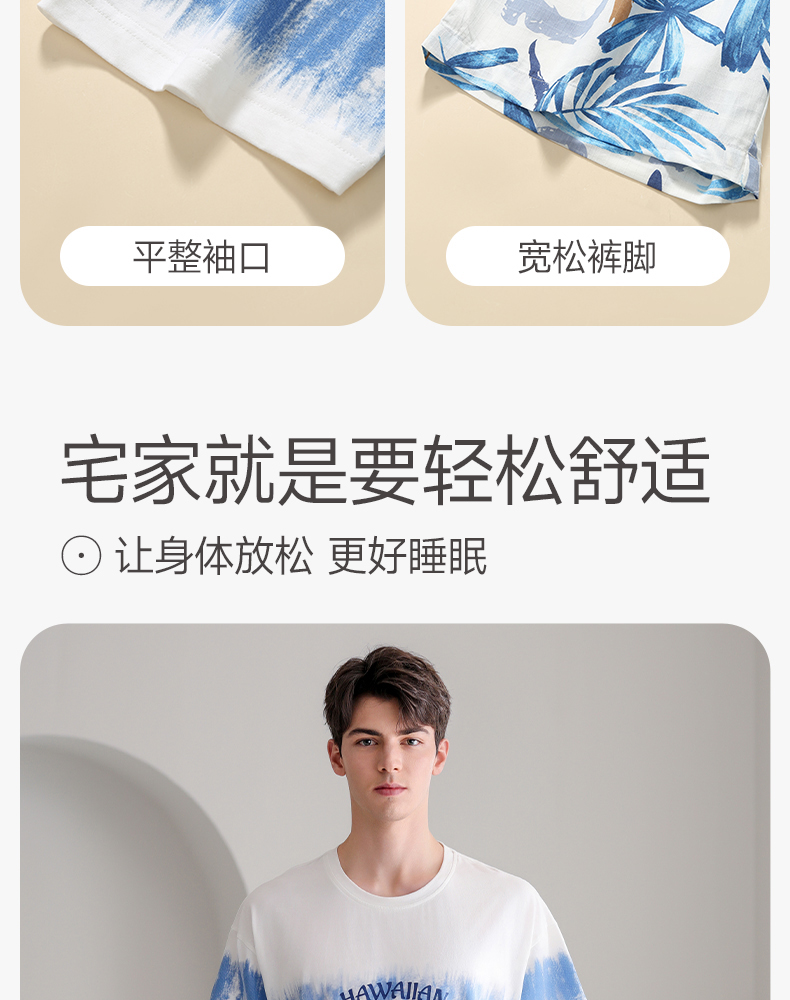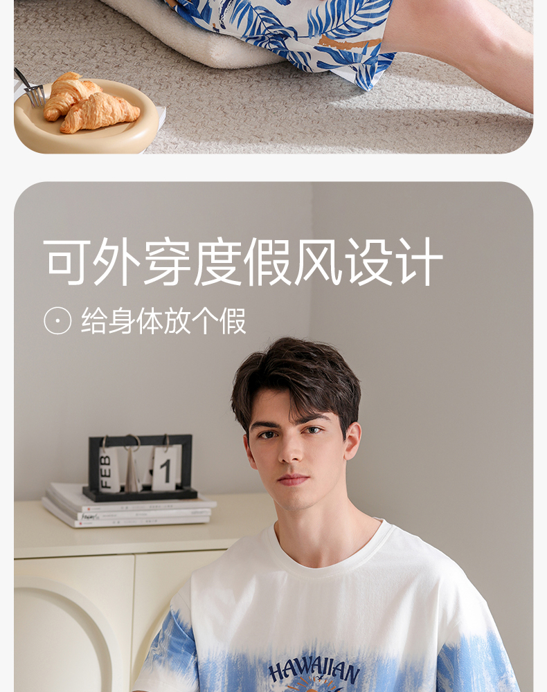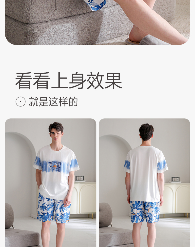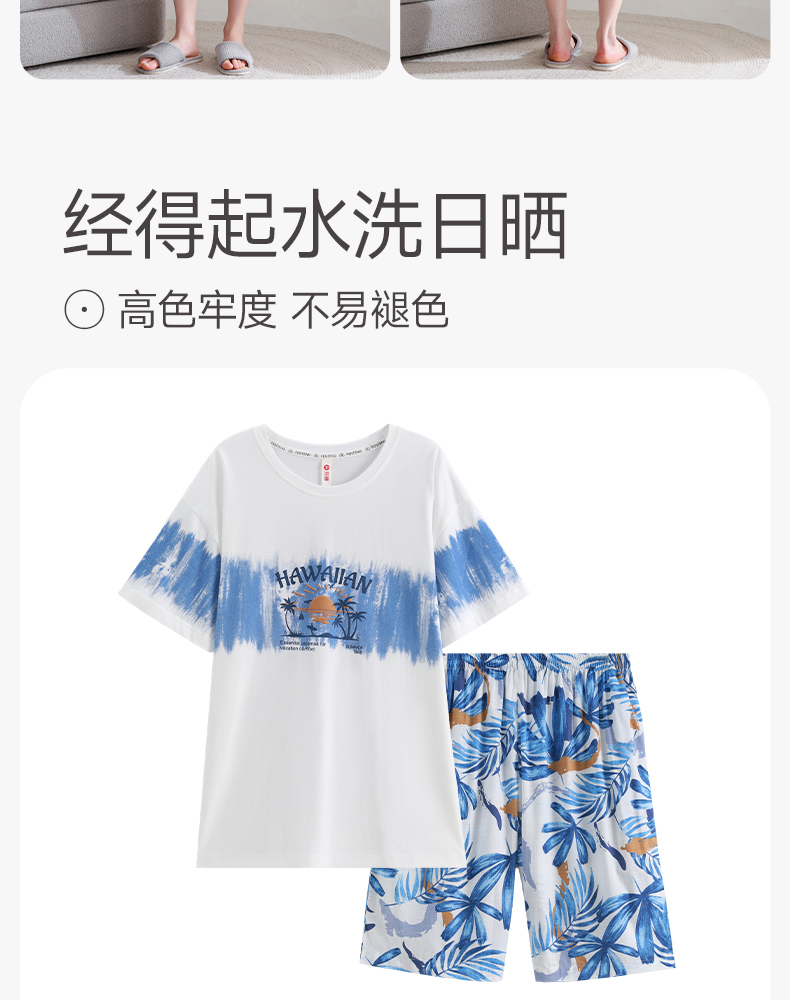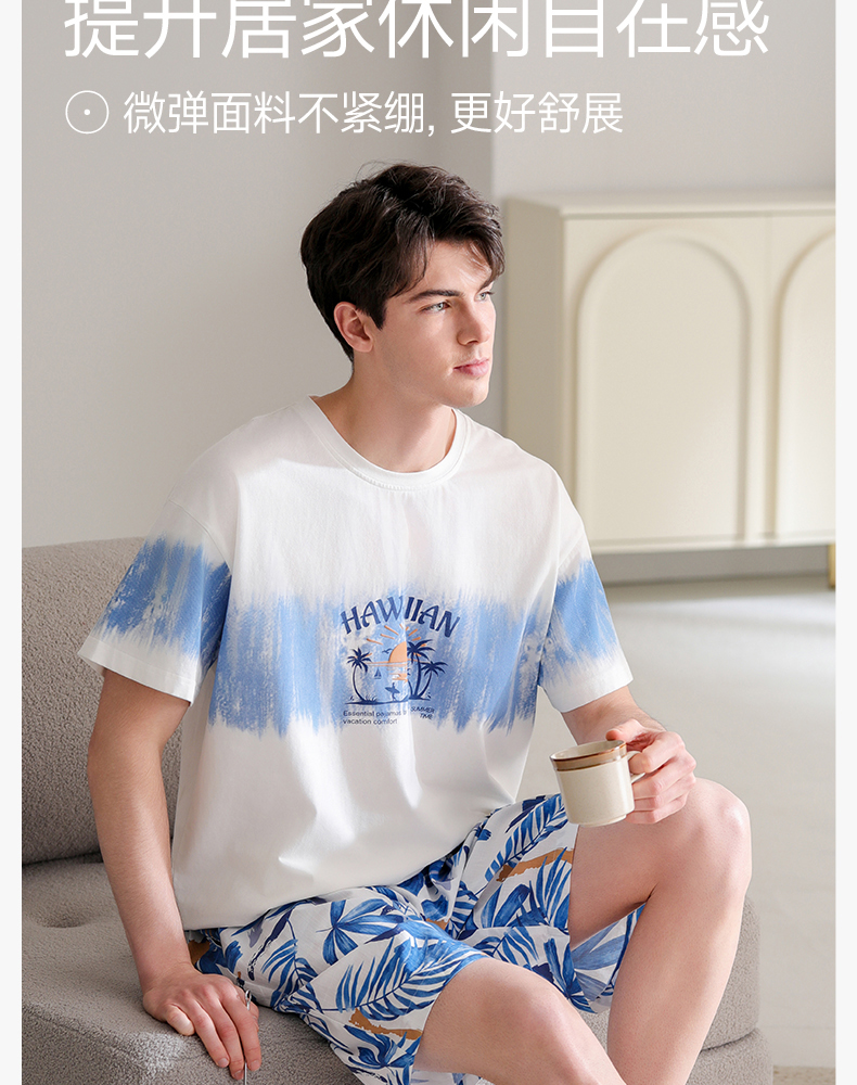芬腾男士睡衣夏季纯棉短袖圆领套装青年休闲加大码外穿全棉家居服