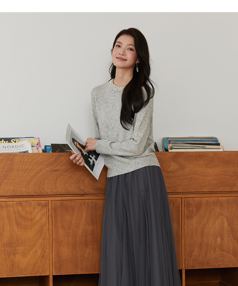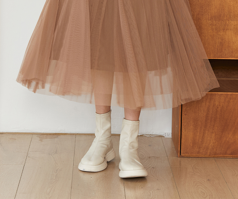 Famecoco半身裙松紧腰A字双层拼接长款摆裙通勤FAB6HA003