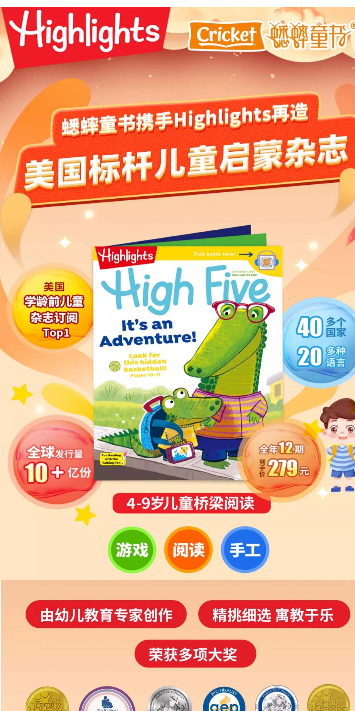 HighFive杂志 美国英文原版杂志【2026年1-12月滚动订阅】4-9岁学龄前儿童科学启蒙趣味游戏英语故事