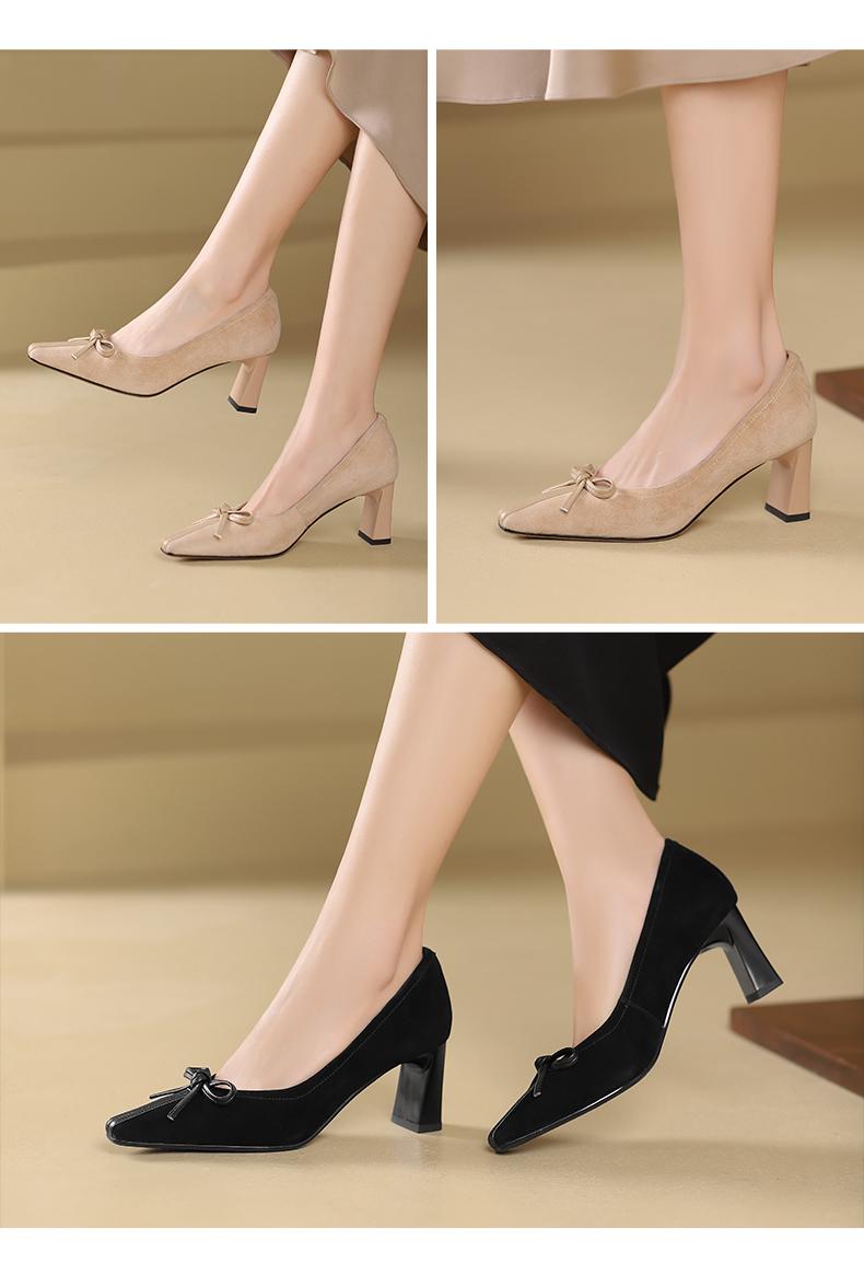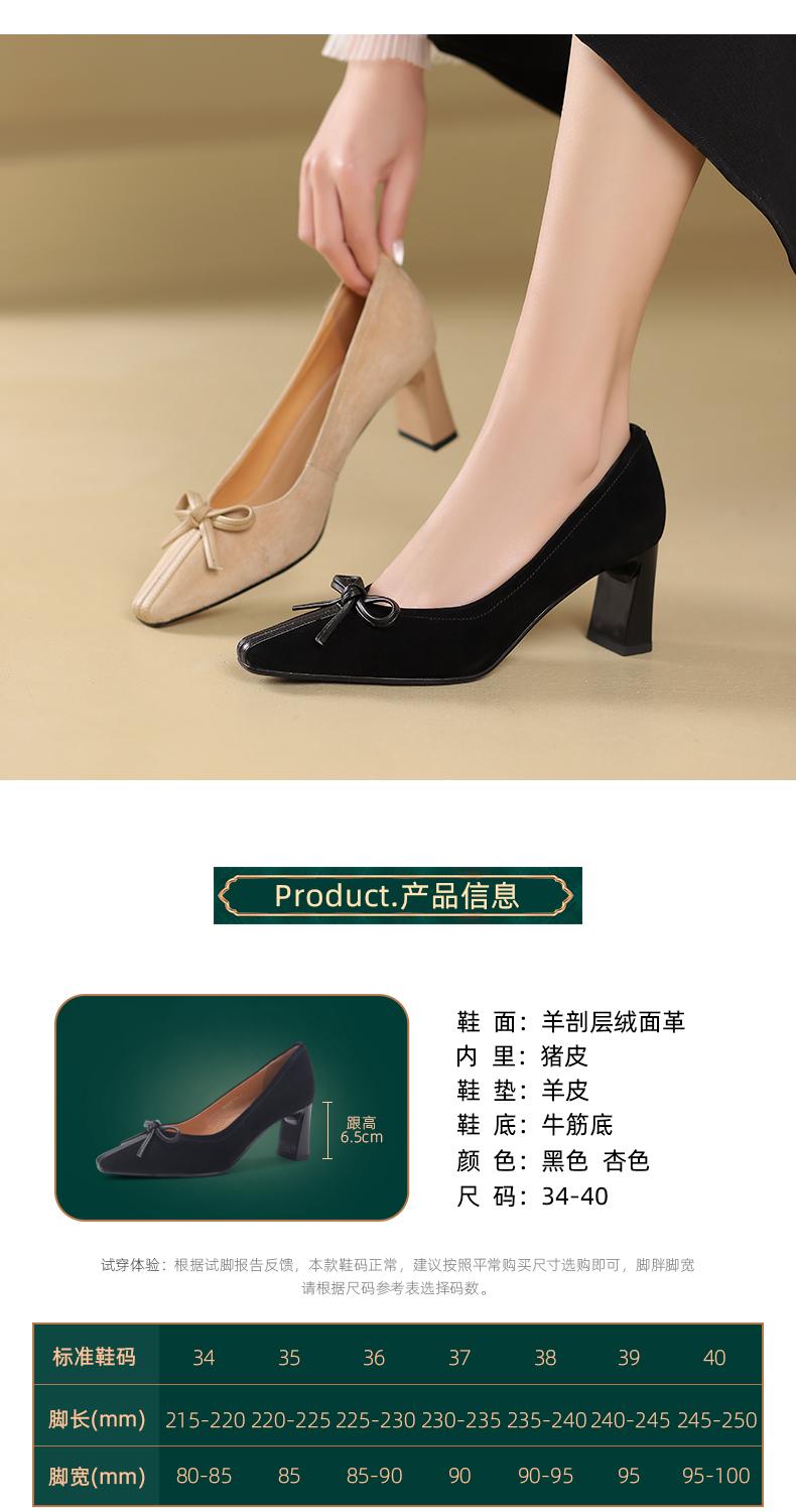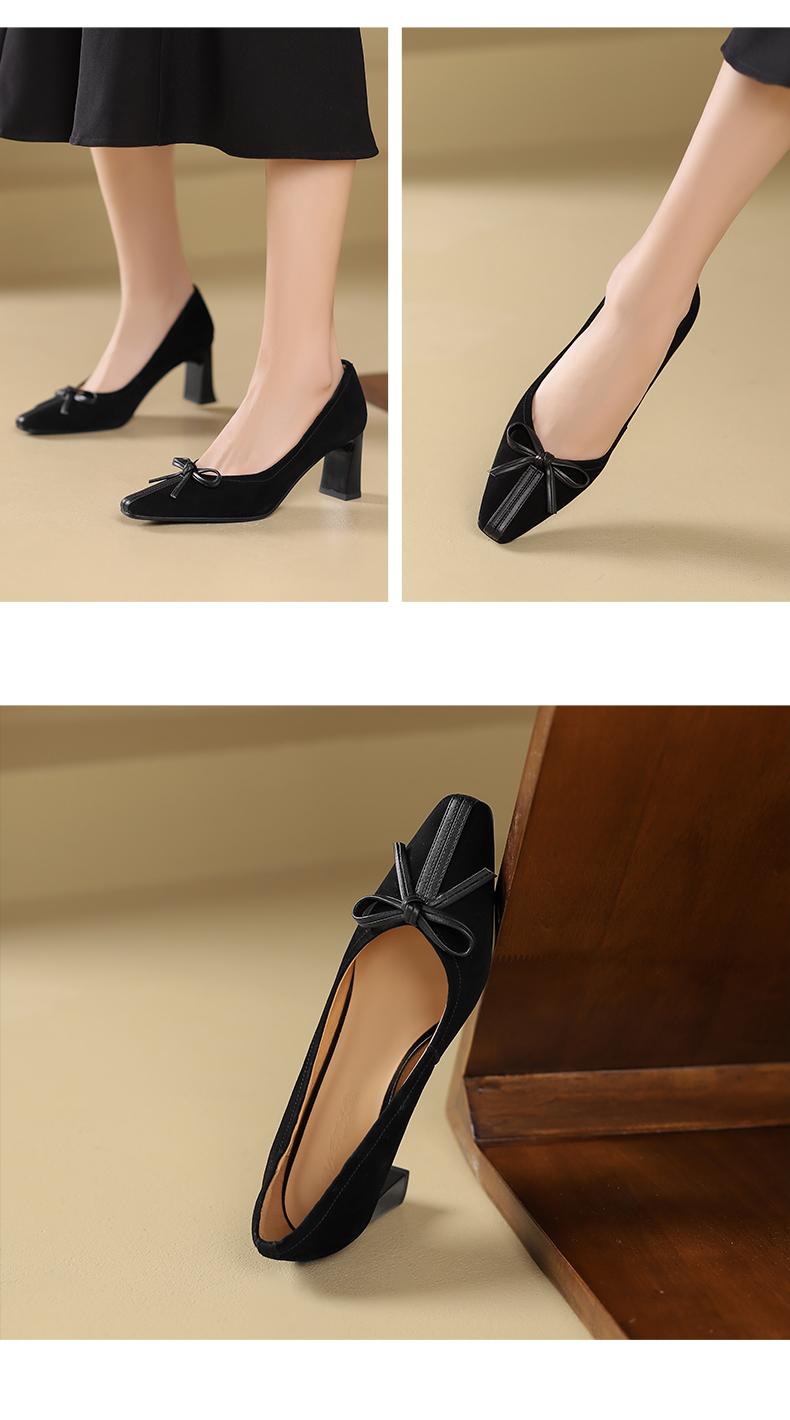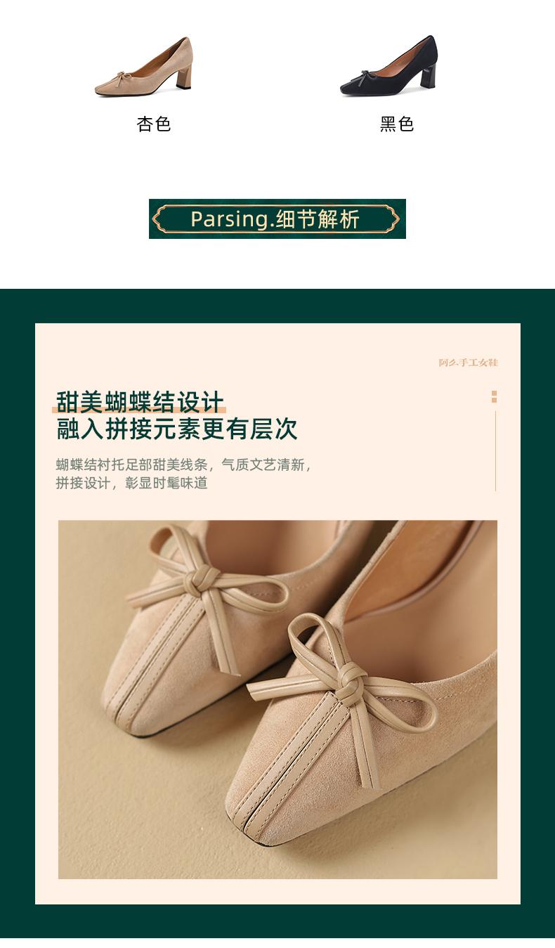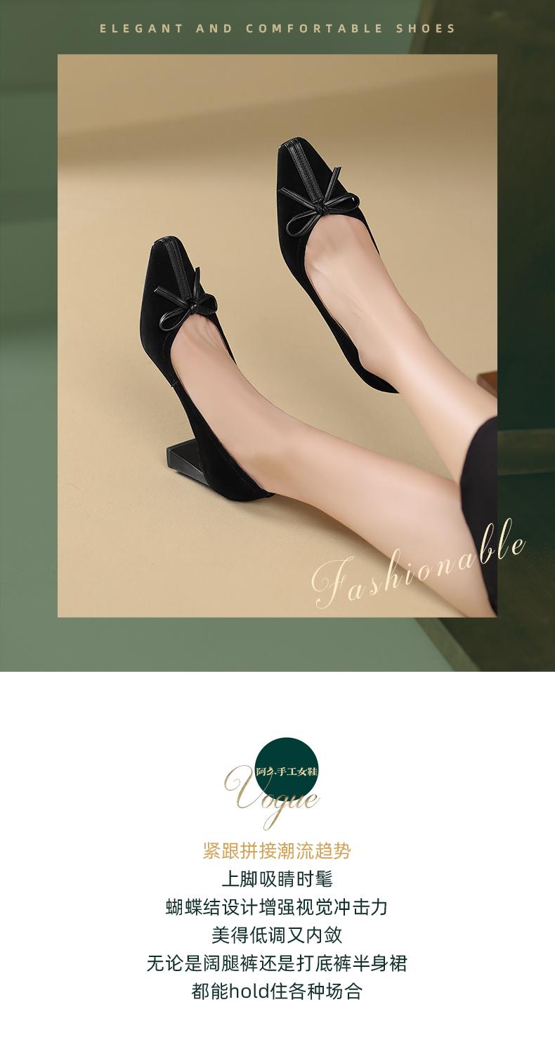 阿么手工女鞋小羊皮高跟鞋百搭蝴蝶结2025新款法式复古单鞋6.5CM