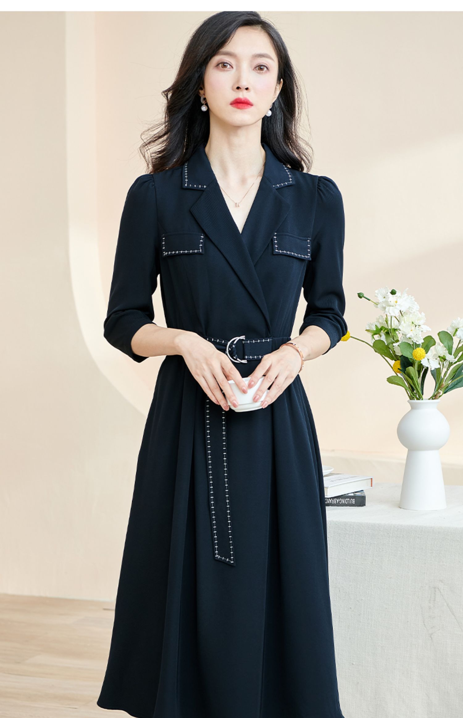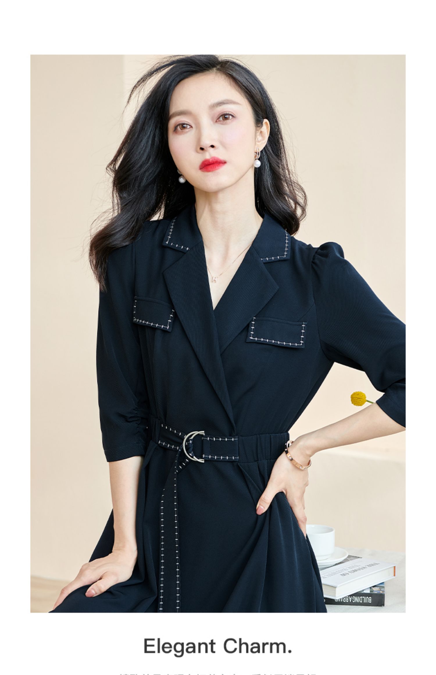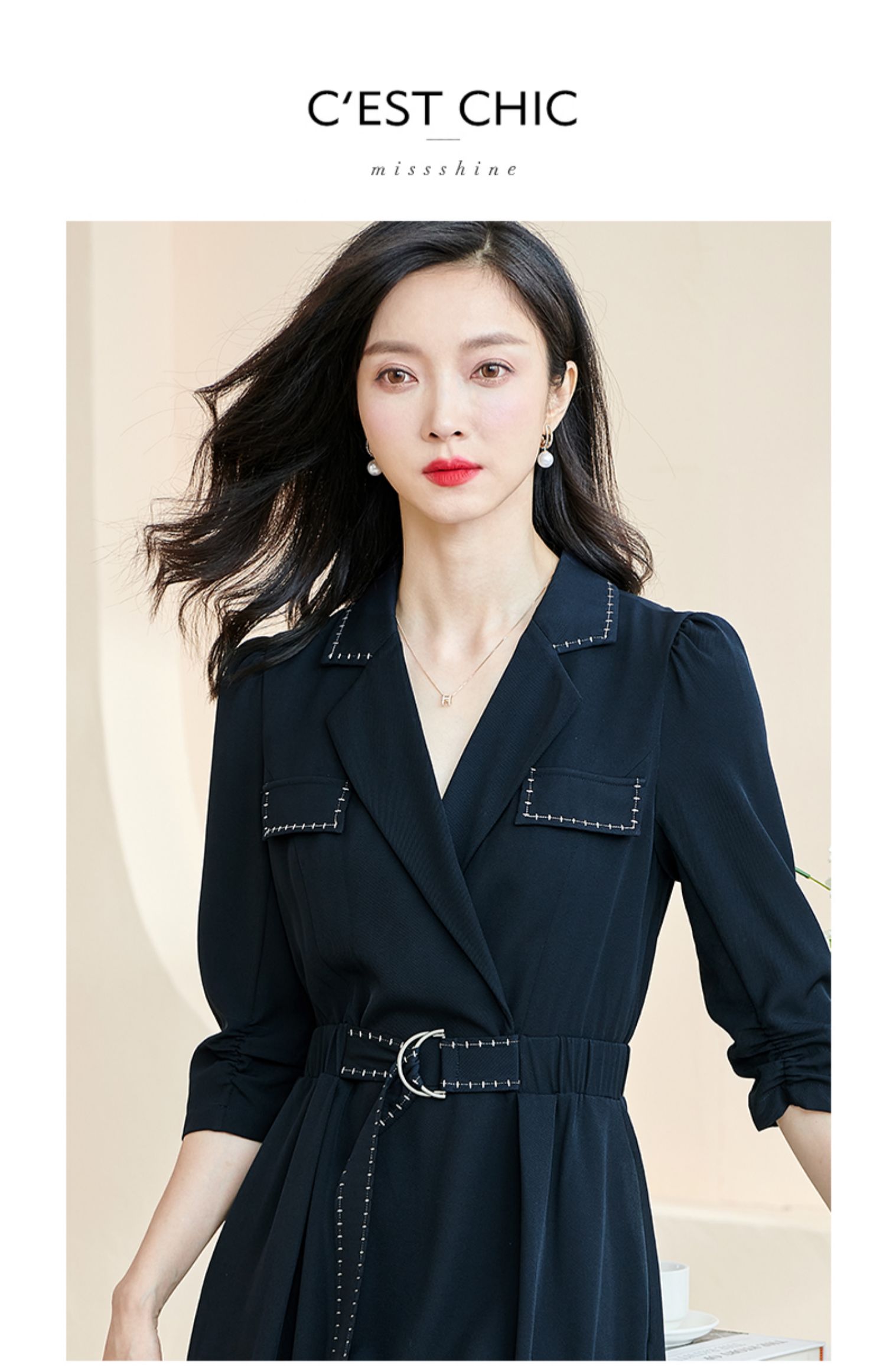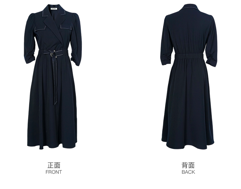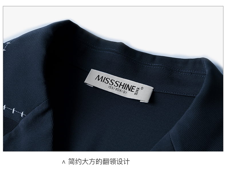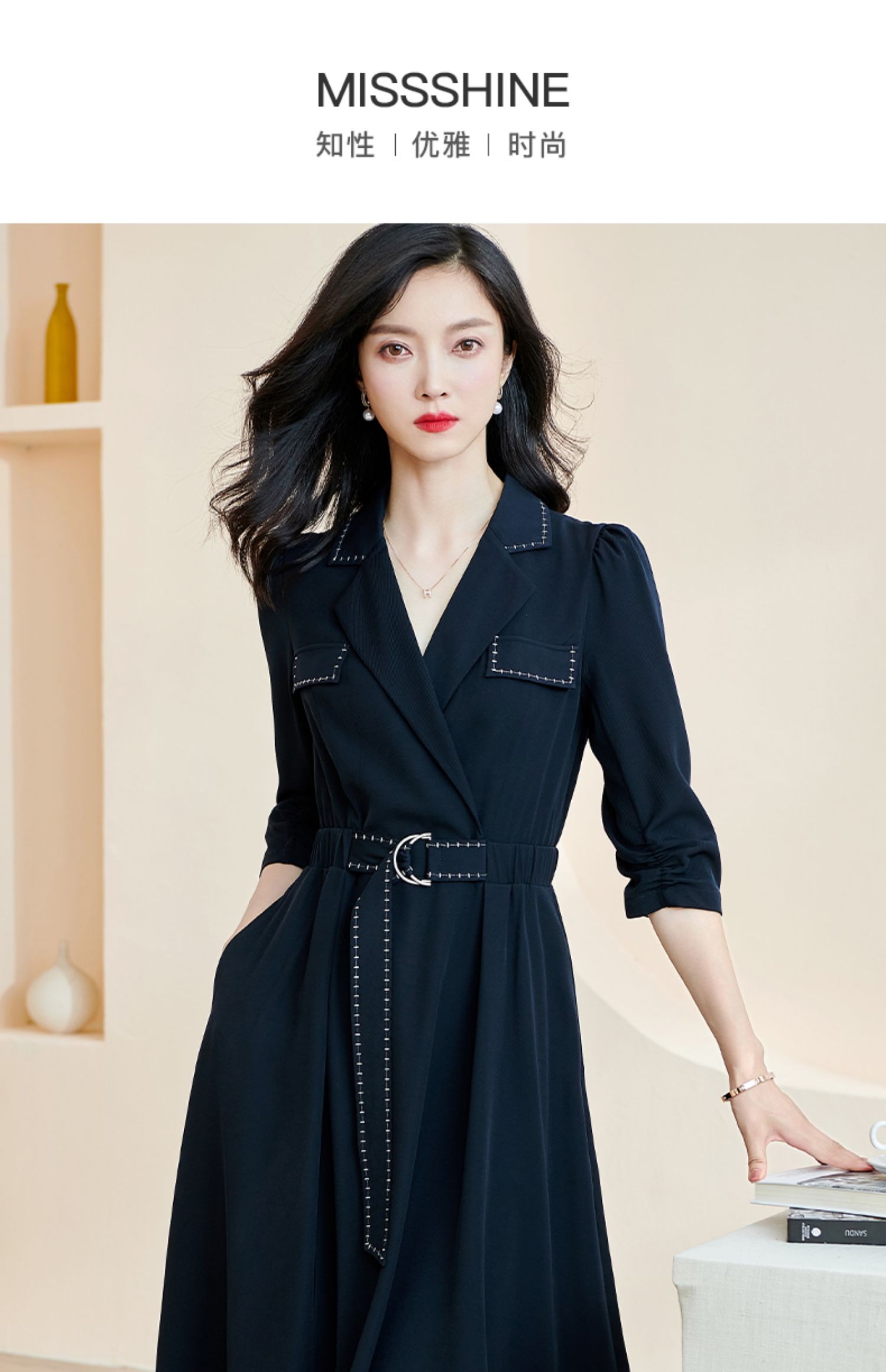 剩S/XL 米思阳2025春季新款时尚通勤西装领连衣裙明线斜纹a字大摆裙2133