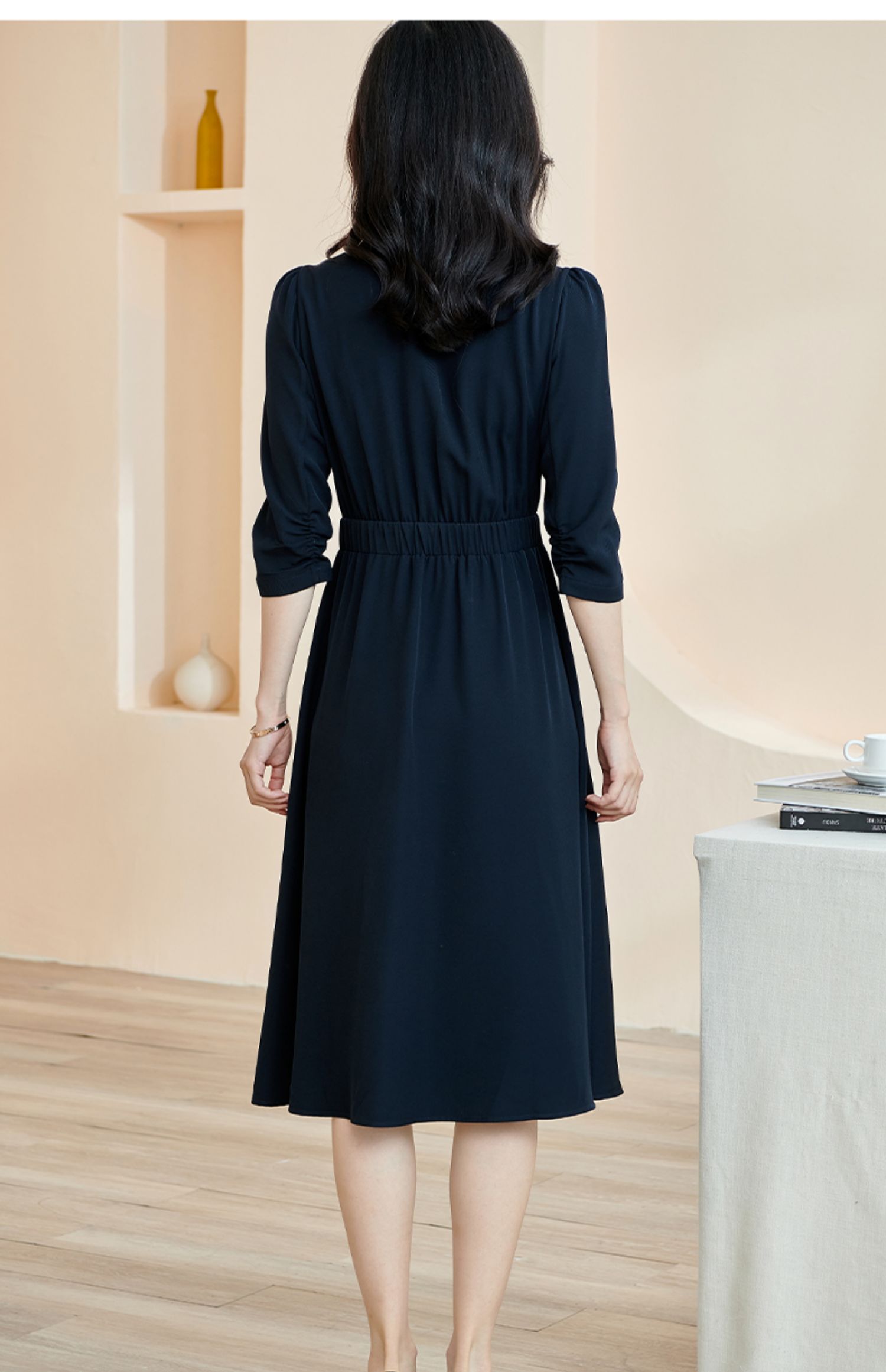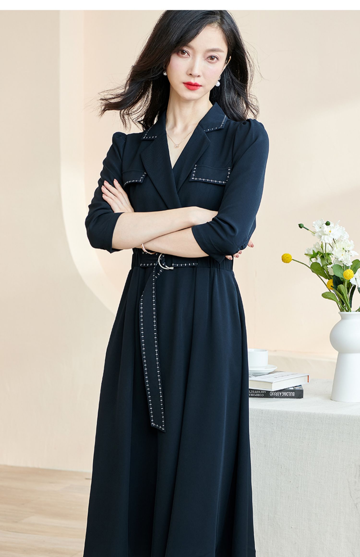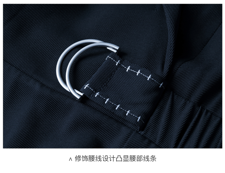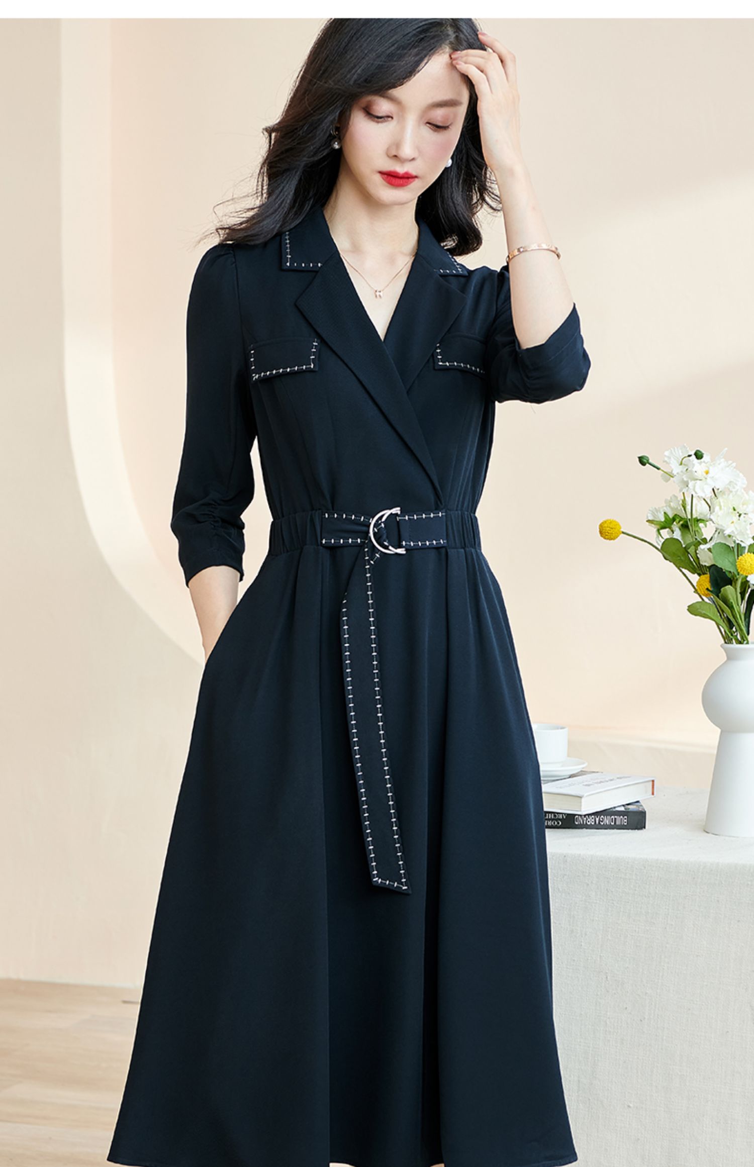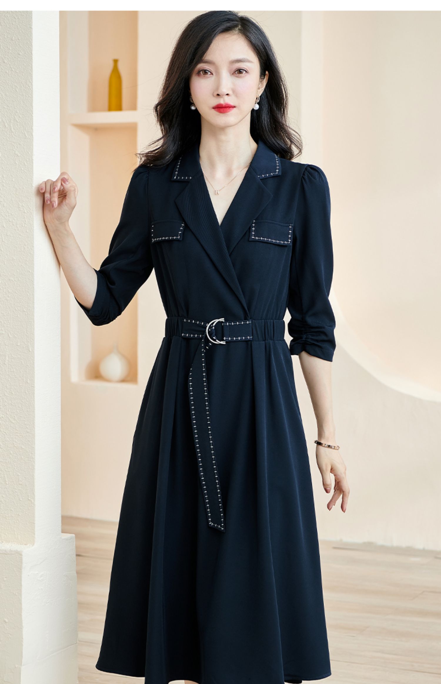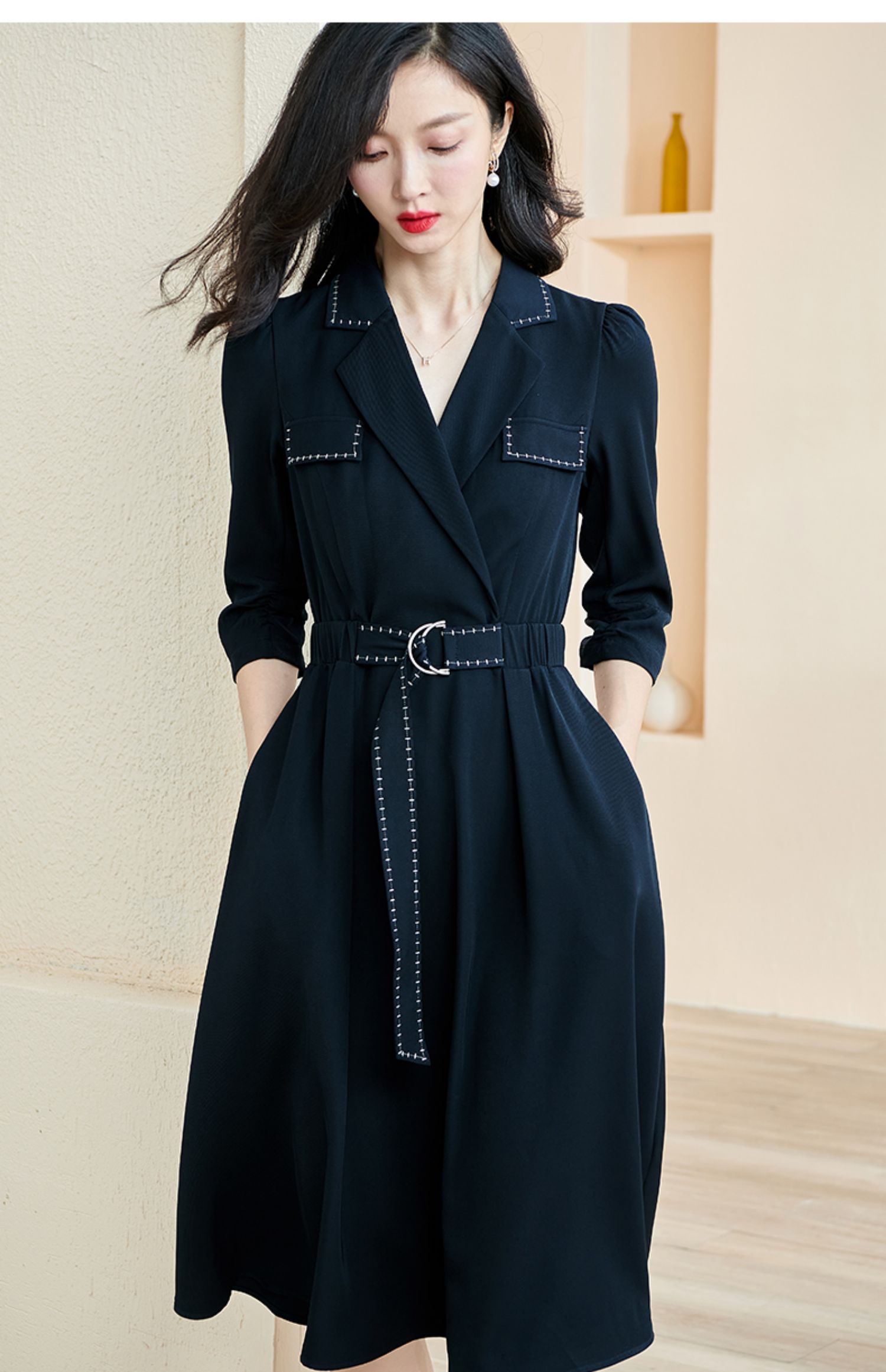 剩S/XL 米思阳2025春季新款时尚通勤西装领连衣裙明线斜纹a字大摆裙2133