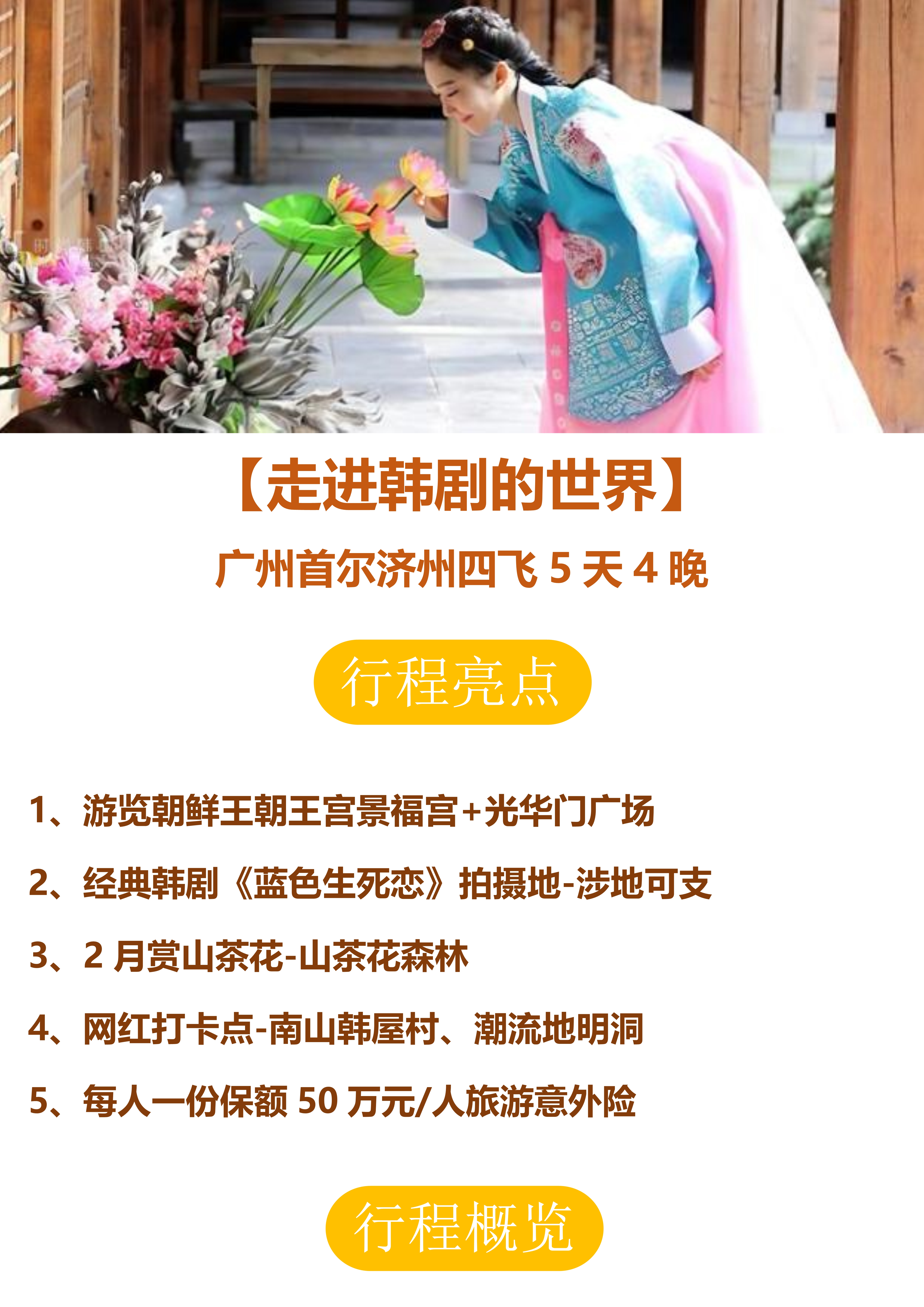 【走进韩剧的世界】 广州首尔济州四飞5天4晚
