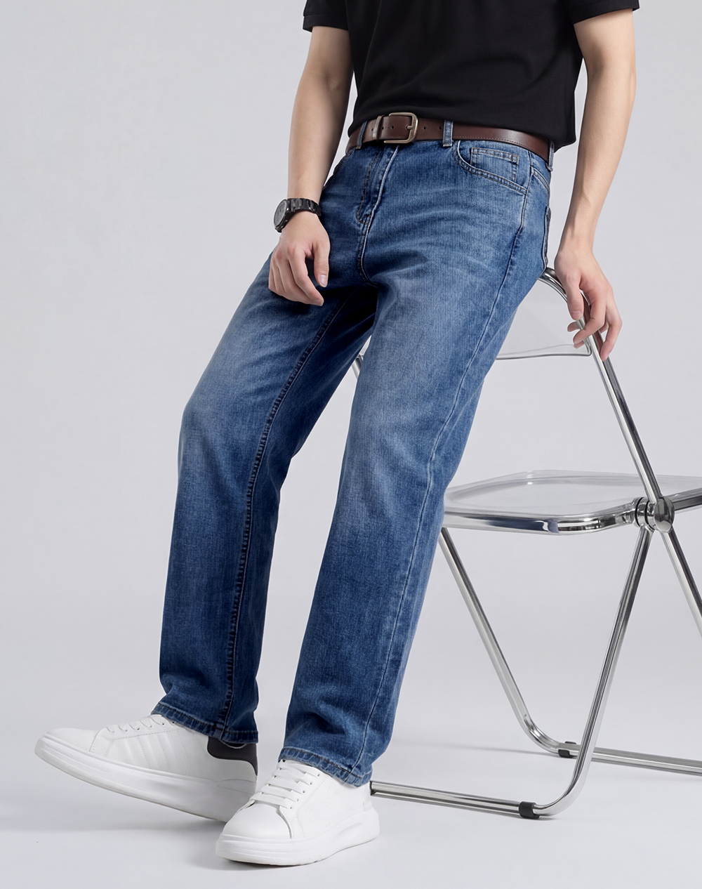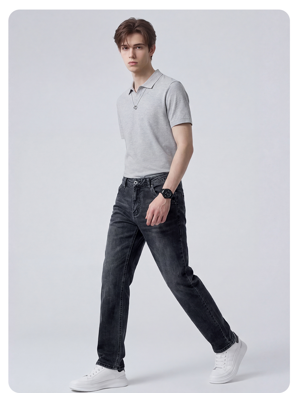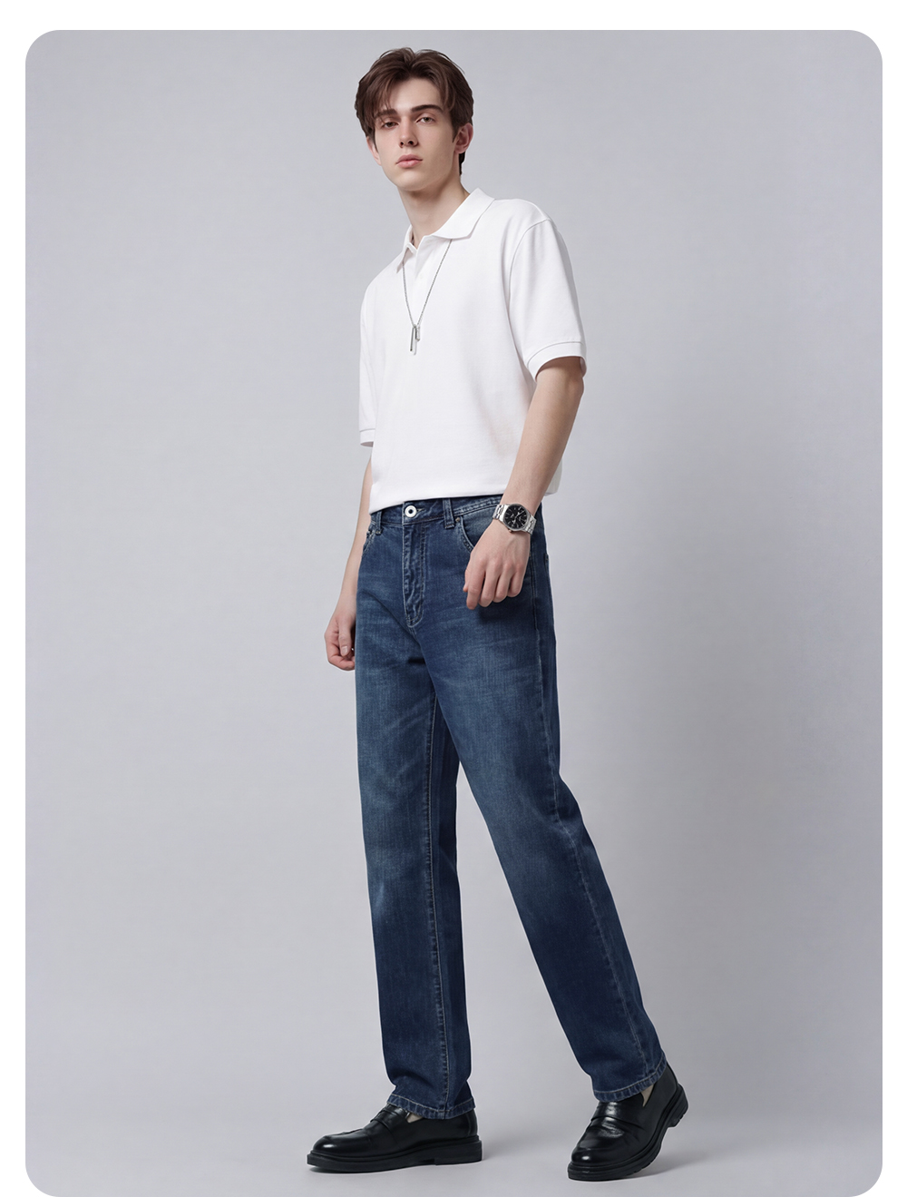 【含棉】圣得西男生牛仔裤2026新款春季显高显瘦修身休闲直筒长裤