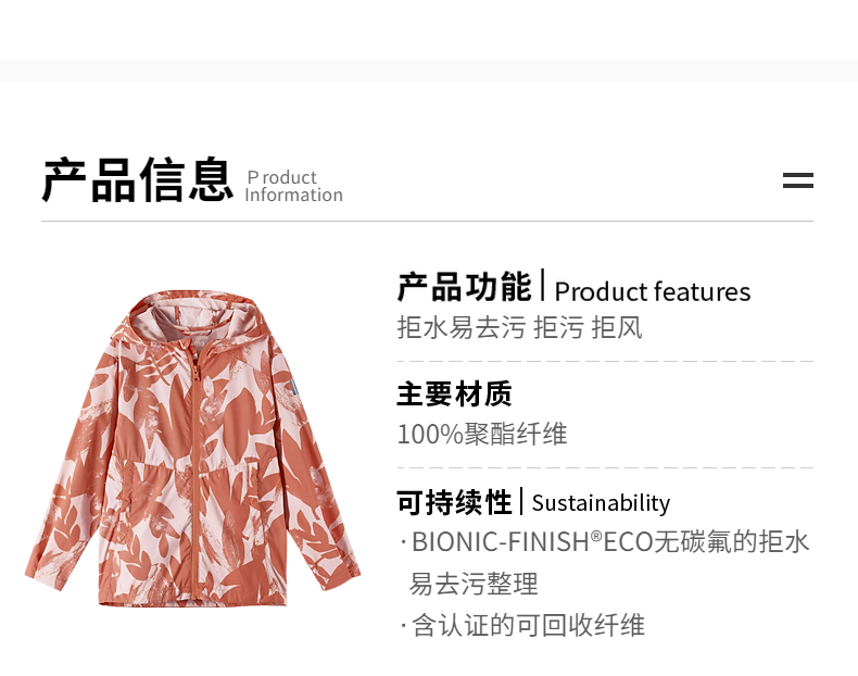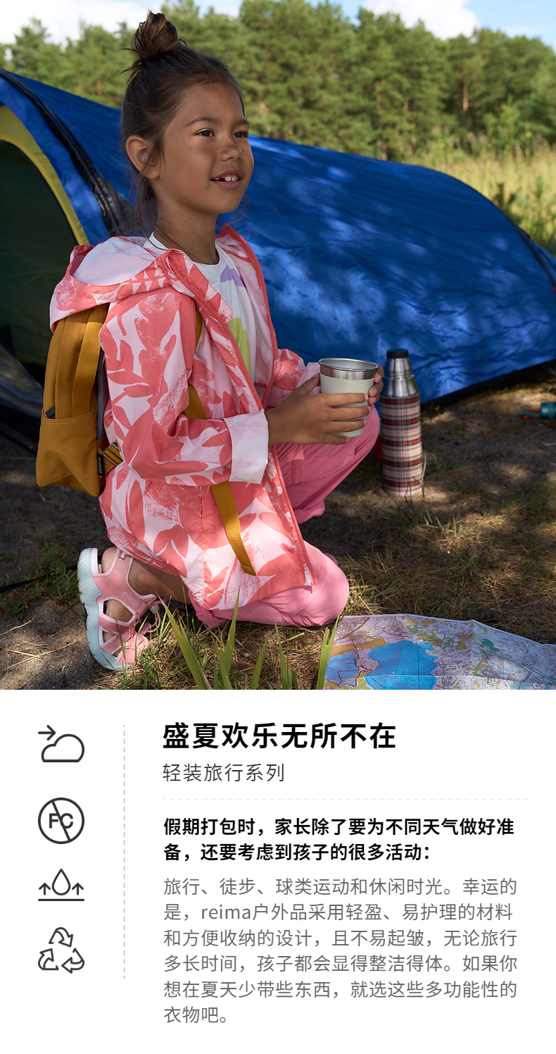 reima男女儿童大童夹克年春夏新款休闲拒水印花开衫连帽外套