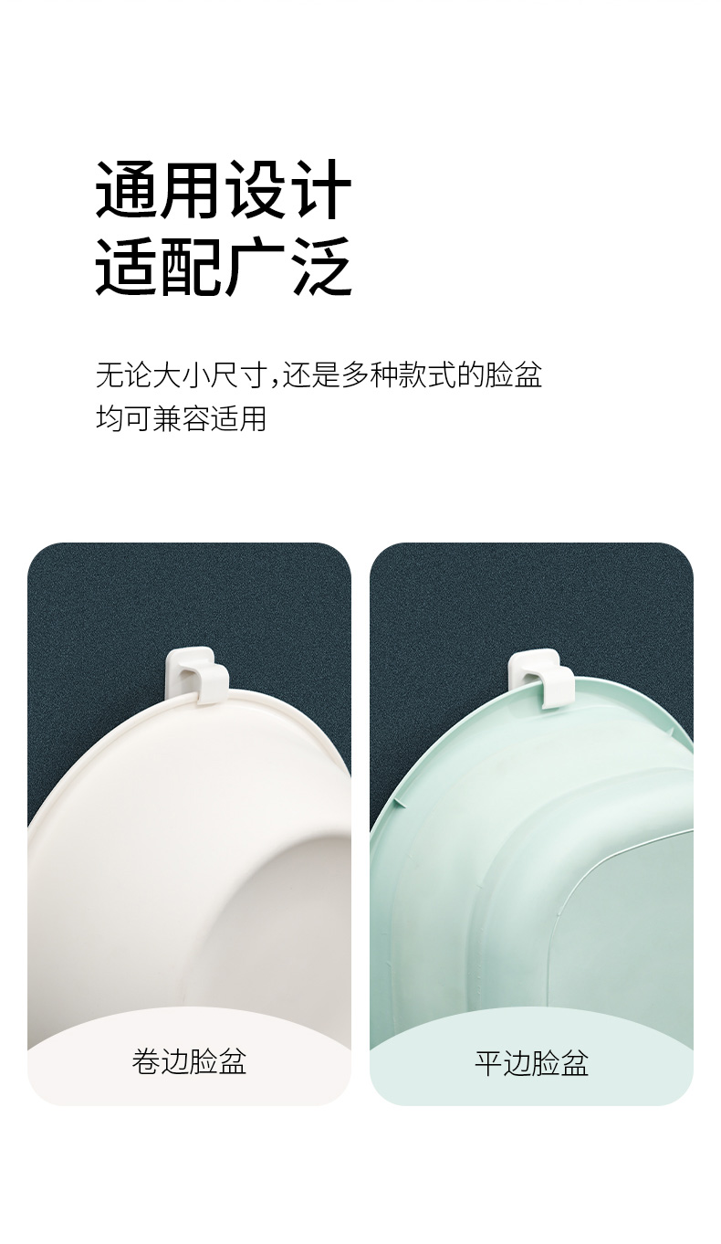 FaSoLa脸盆挂钩2枚免打孔卫生间收纳钩浴室洗澡浴盆墙上壁挂盆子神器