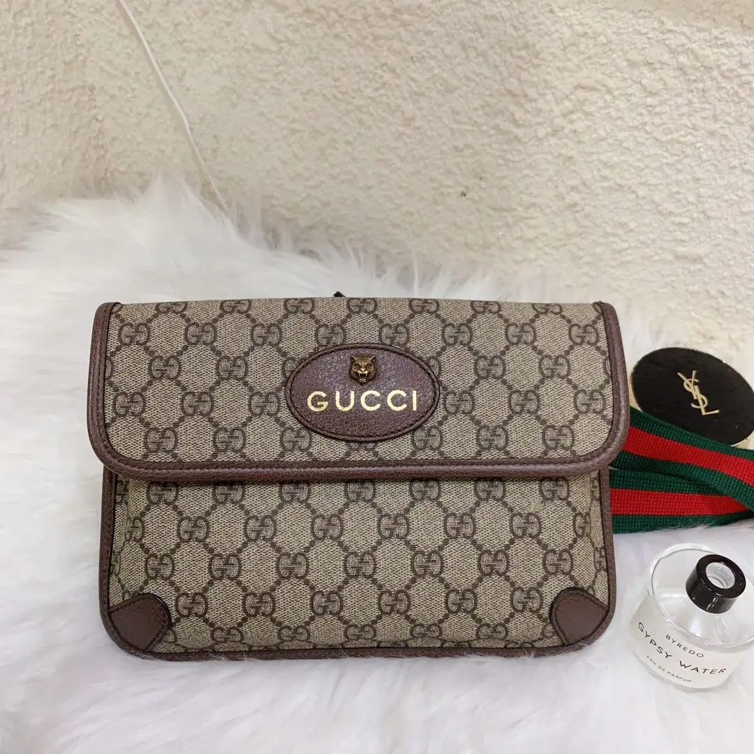 【商品详情】正品二手 Gucci 老花 虎头 斜挎胸包 🐯 93 新 25×17。包正面有一处使用瑕疵