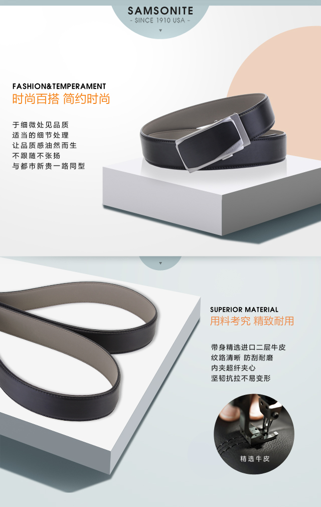 Samsonite/新秀丽男士皮带自动扣进口牛皮腰带商务休闲裤腰带TK2 黑色 120CM